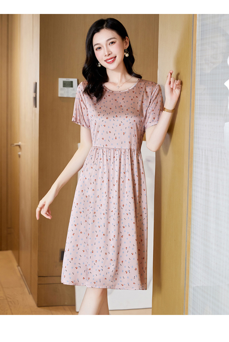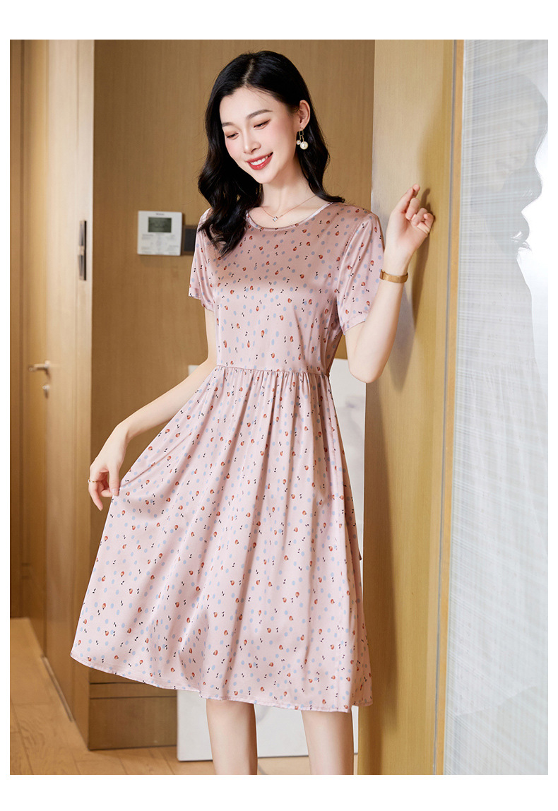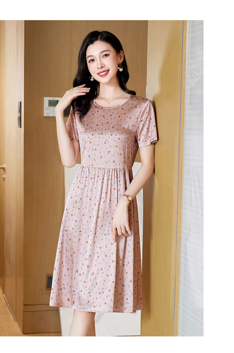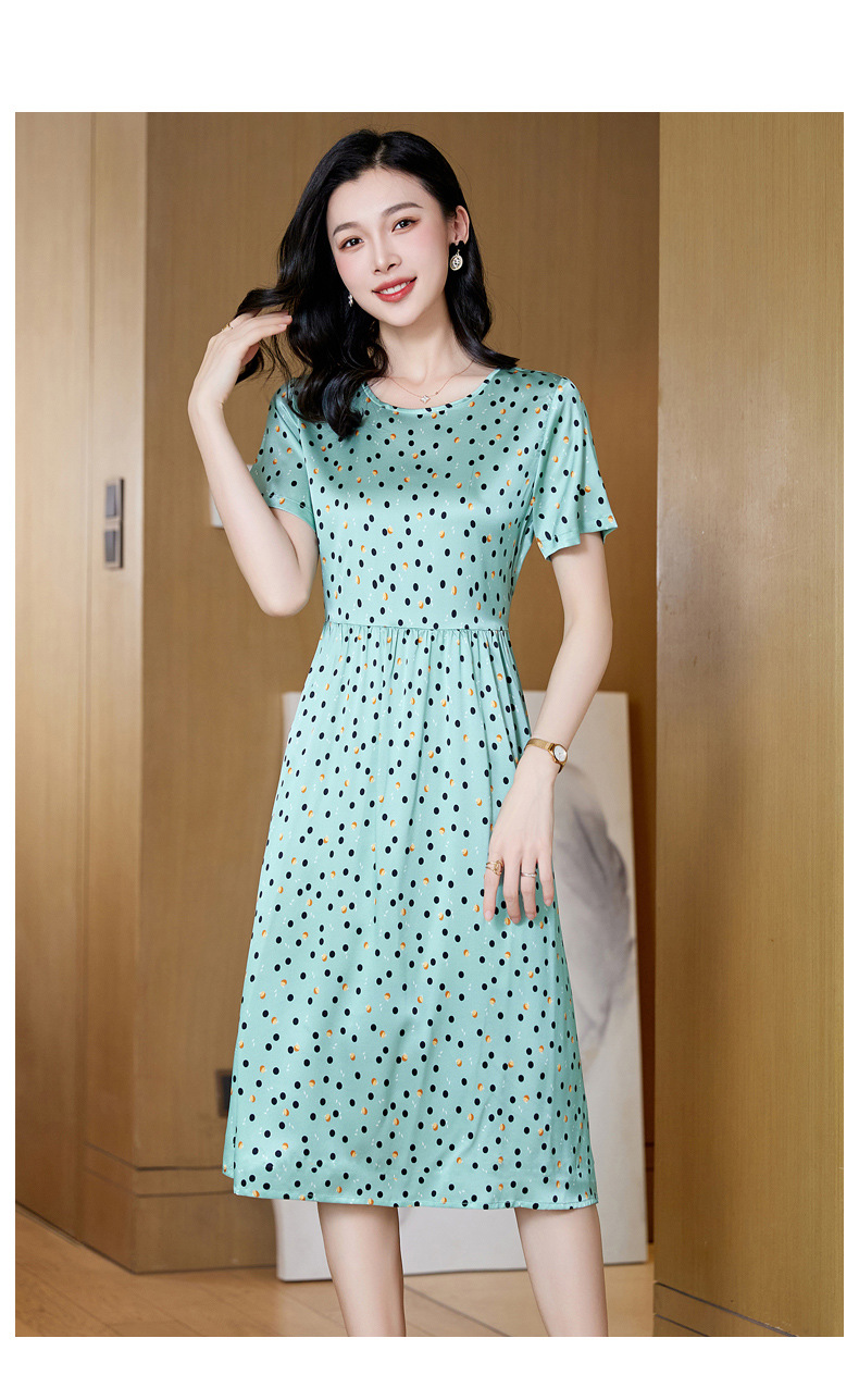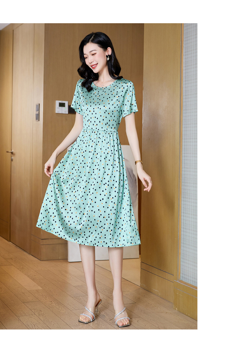 ASE-23058圆领气质时尚优雅知性真丝连衣裙