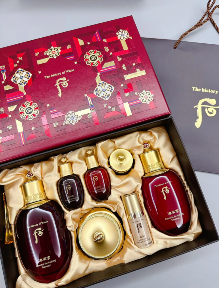 👑WHOO津率享三件套 👍抚平皱纹,恢复弹力 🔥津率享系列主打:抗老、去皱、淡斑,用完之后多人觉得皮肤变细腻、变紧致 💎系列套盒蕴含:人参根、当归、牡丹等植物提取成分 💯非常适合35岁以上左右,需要深度滋养的皮肤,对于肌肤有非常好的保养作用 🔅适合送妈妈、自用保养! 【套盒包括】:水150ml+乳110ml+面霜30ml+精华8ml+水乳各20ml+眼霜4ml