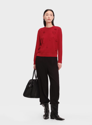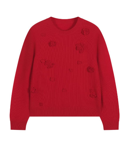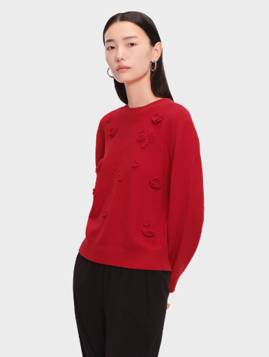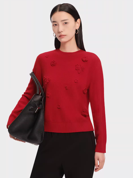 朗姿【金玉满棠】2026春季新款羊毛羊绒立体钩花针织衫 LCHADAKPR802R21