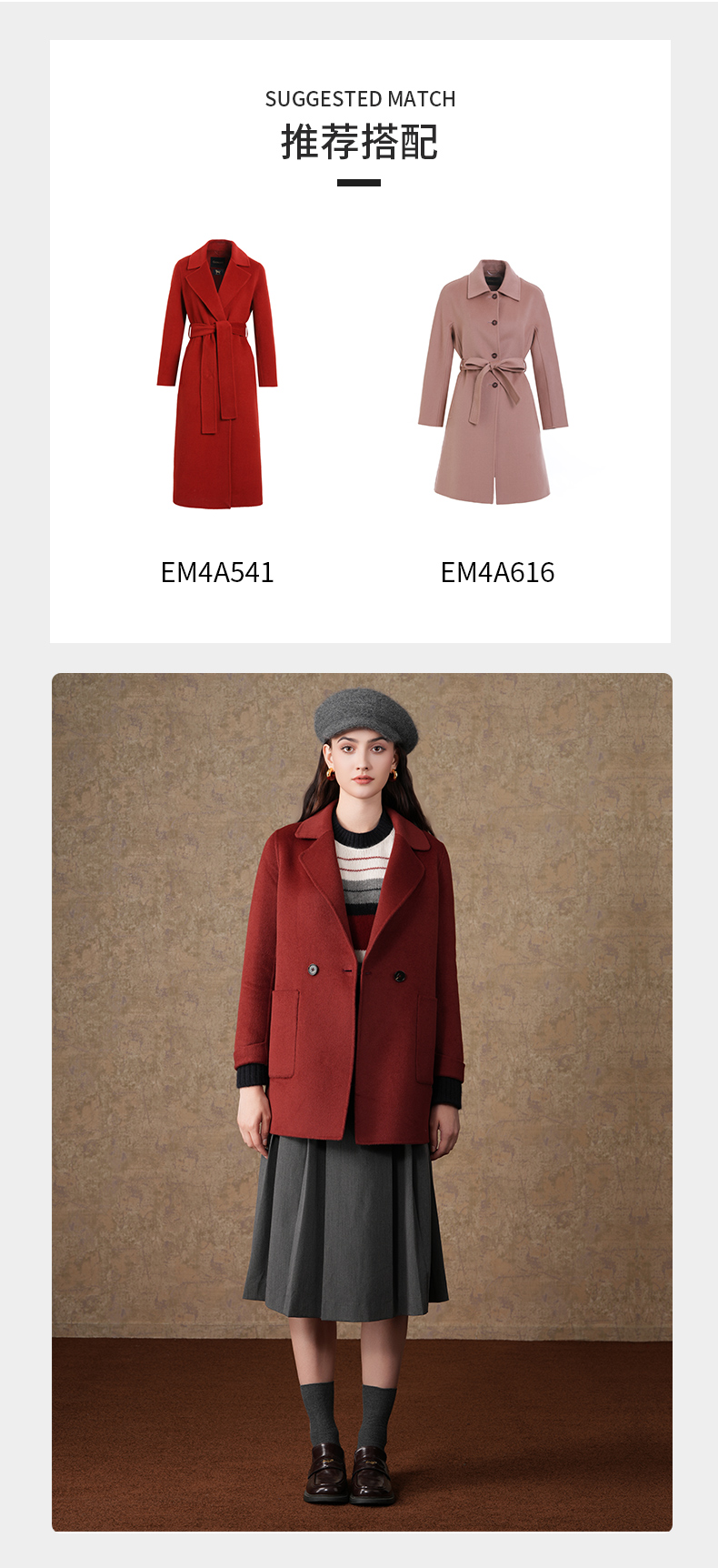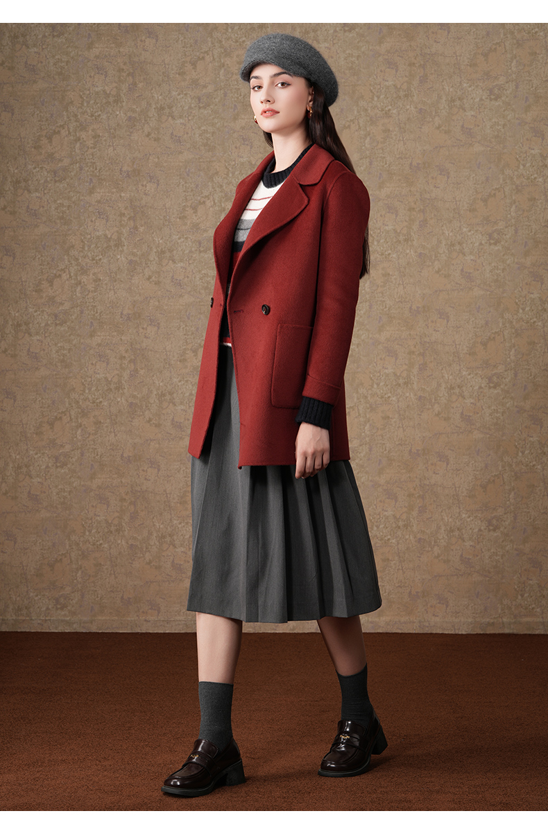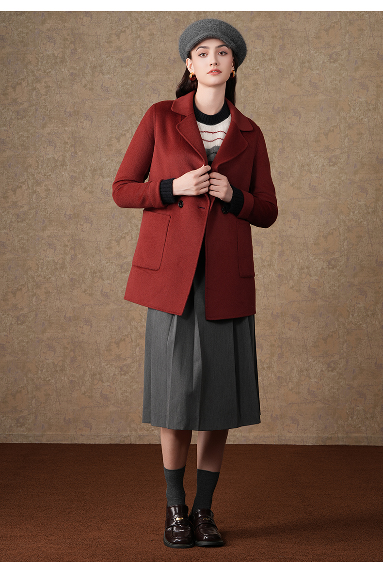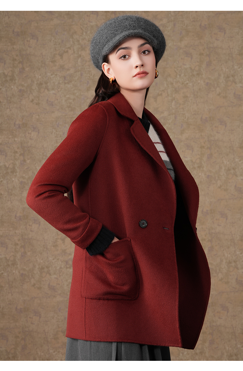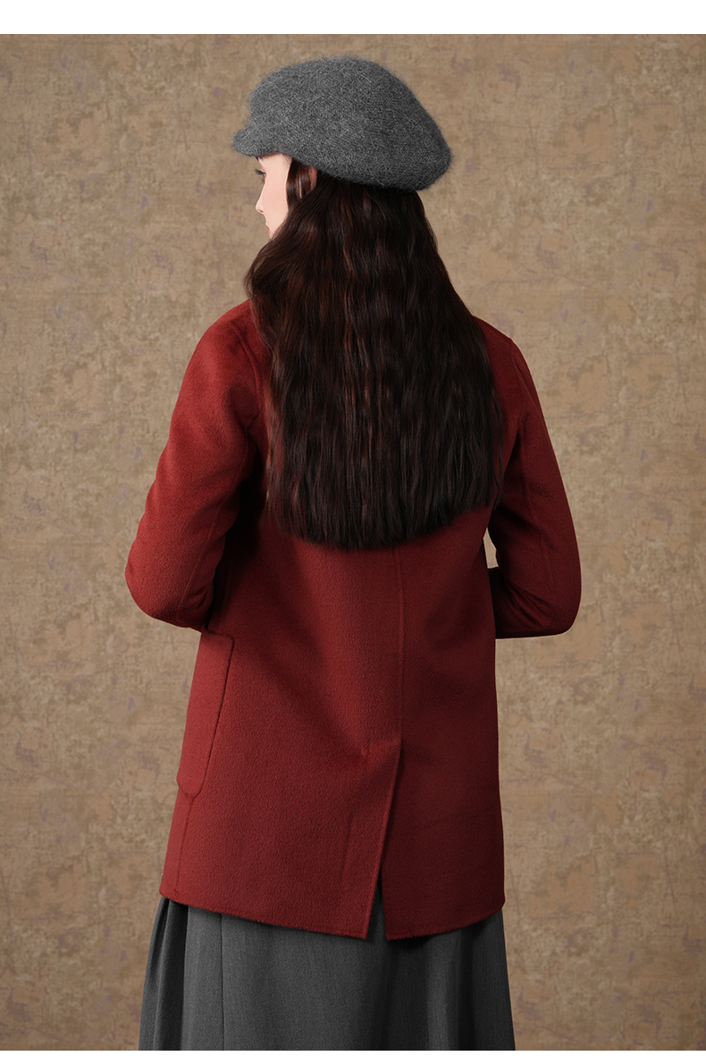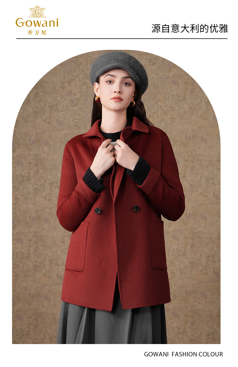 乔万尼绵羊毛大衣复古经典酒红色西装毛呢外套EF4B199