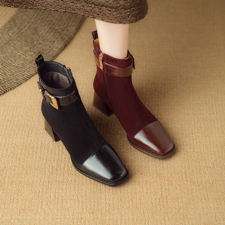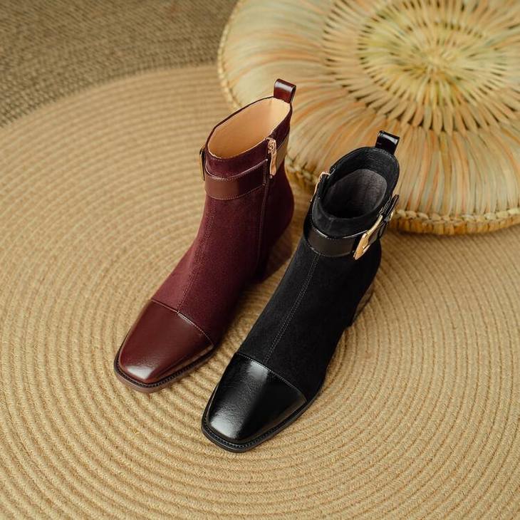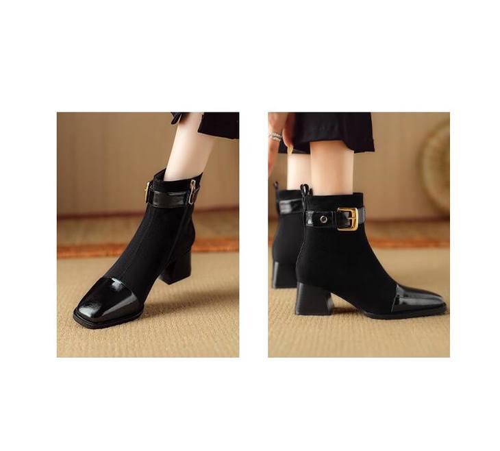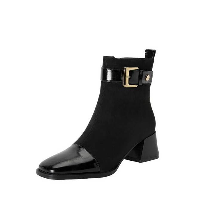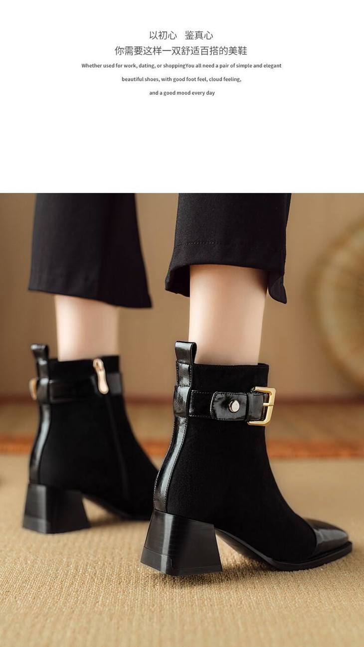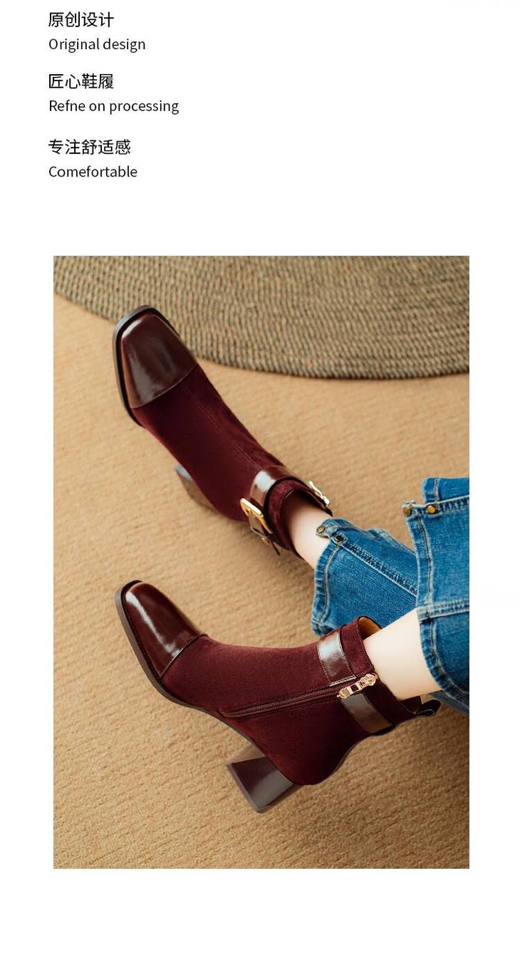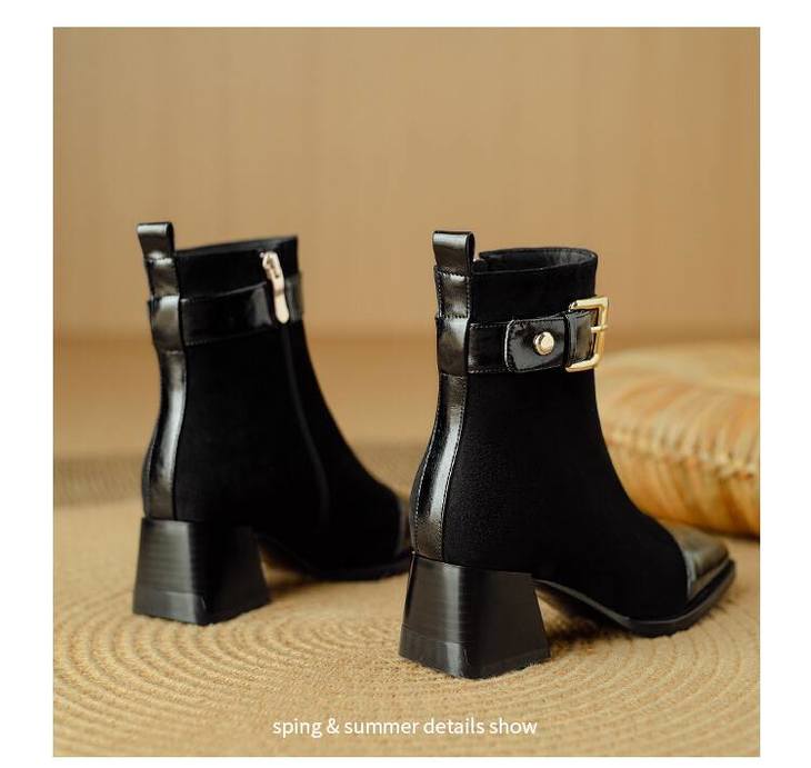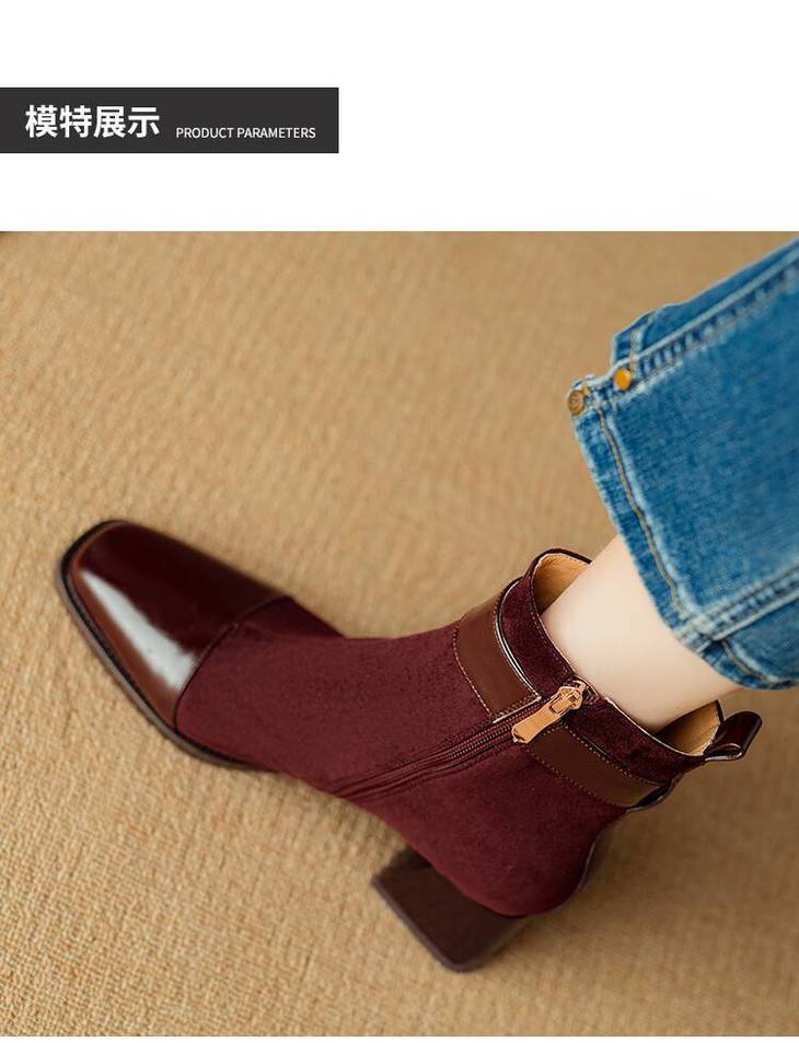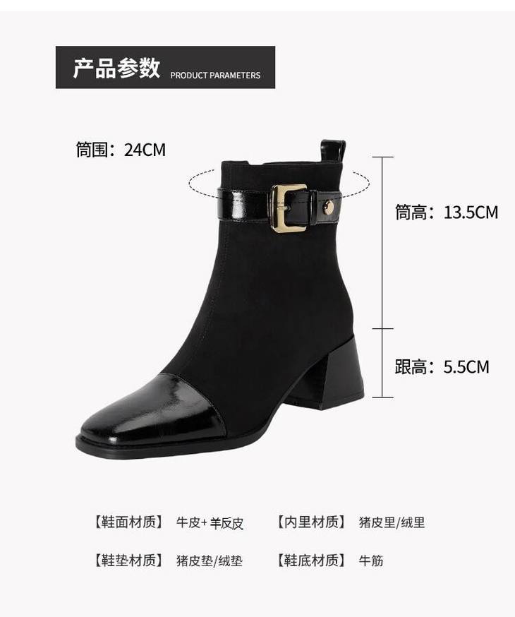 【预售5天】英伦风方头粗跟拼接马丁靴秋冬加绒保暖切尔西短靴瘦瘦靴NJMK&K1137