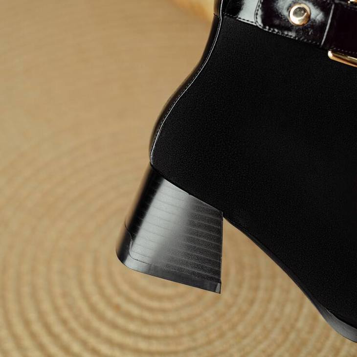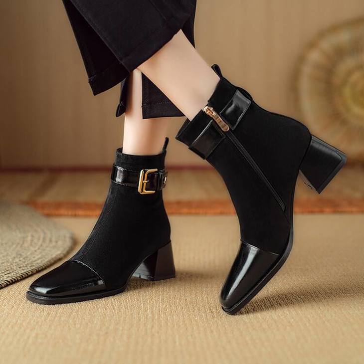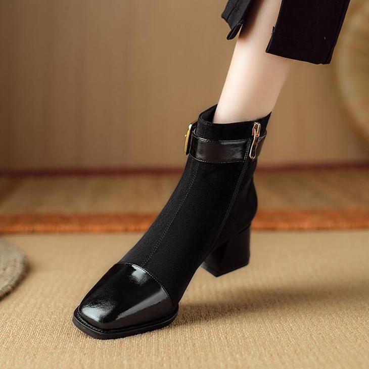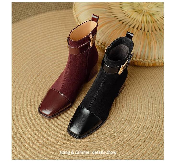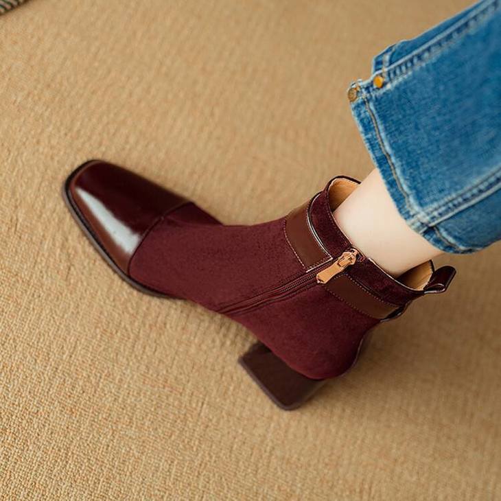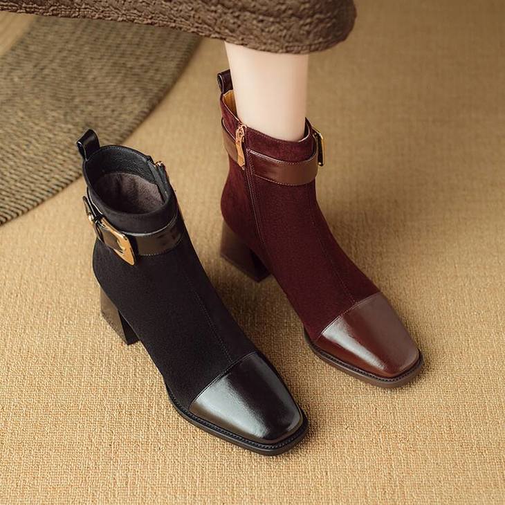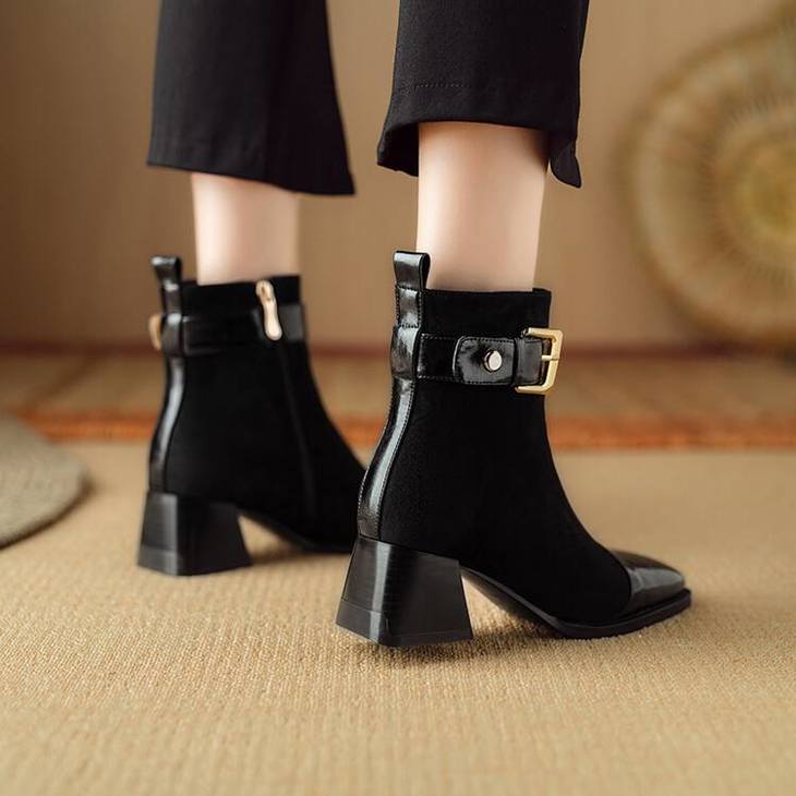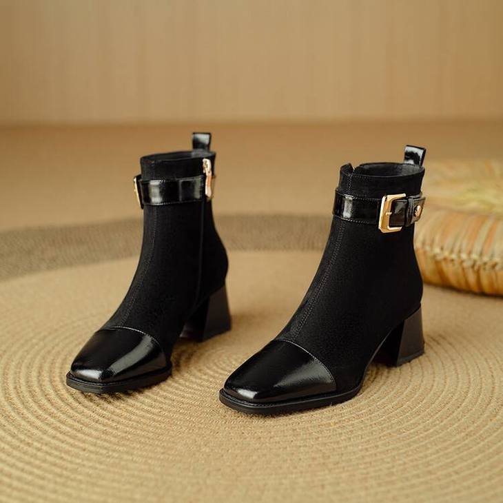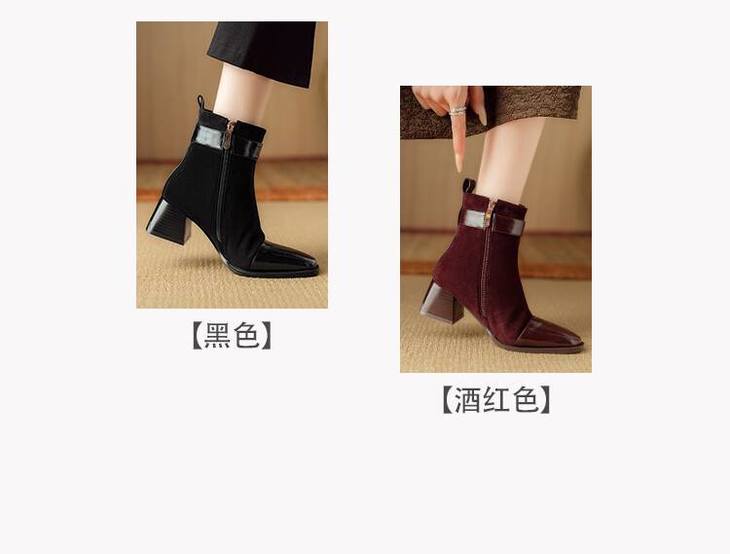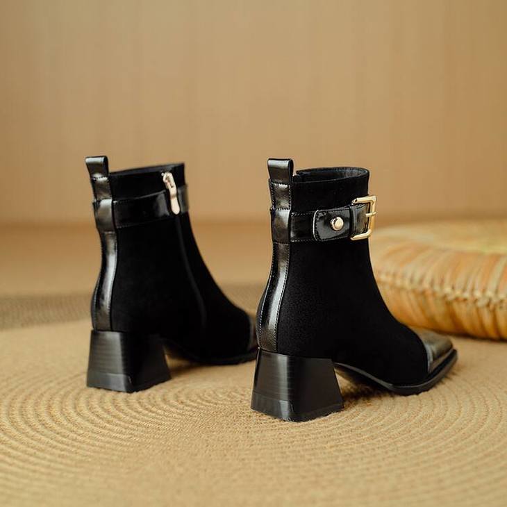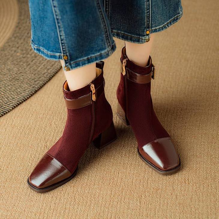 【预售5天】英伦风方头粗跟拼接马丁靴秋冬加绒保暖切尔西短靴瘦瘦靴NJMK&K1137