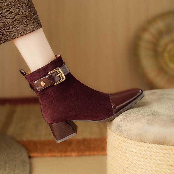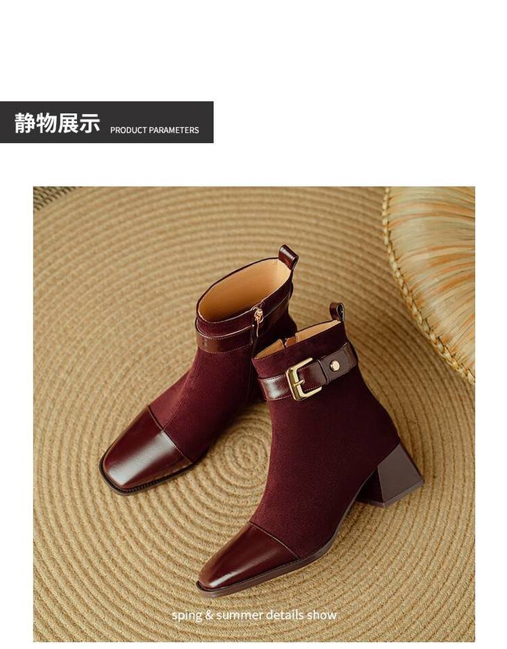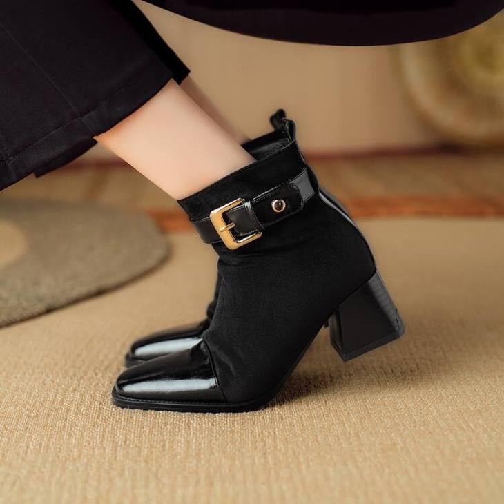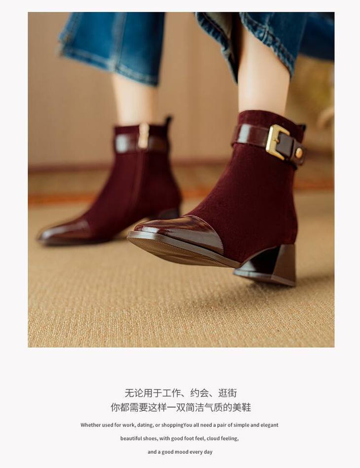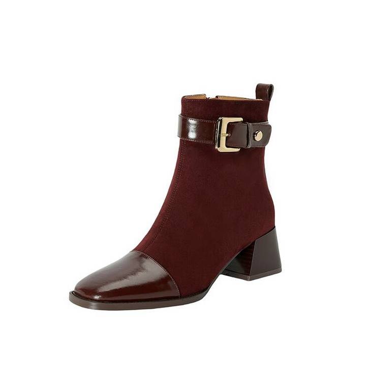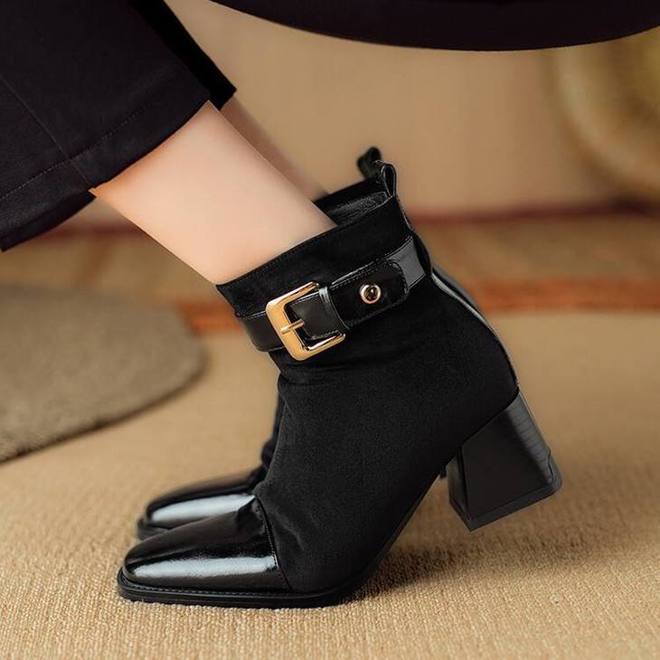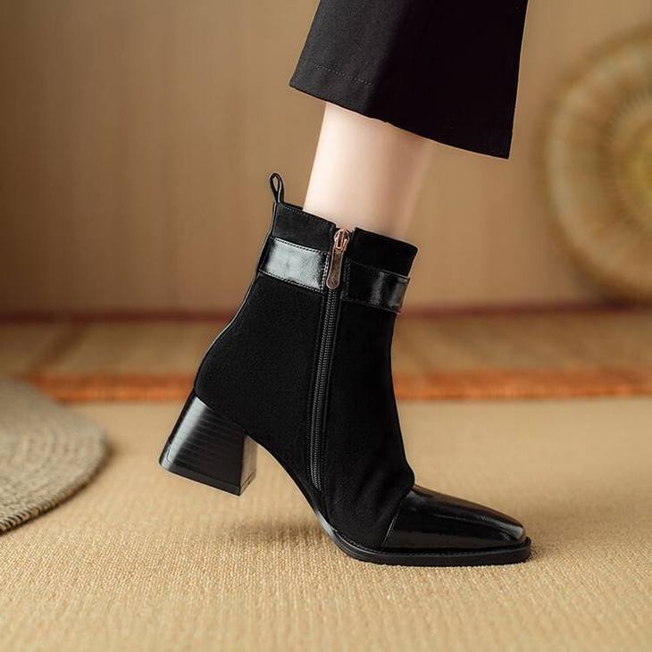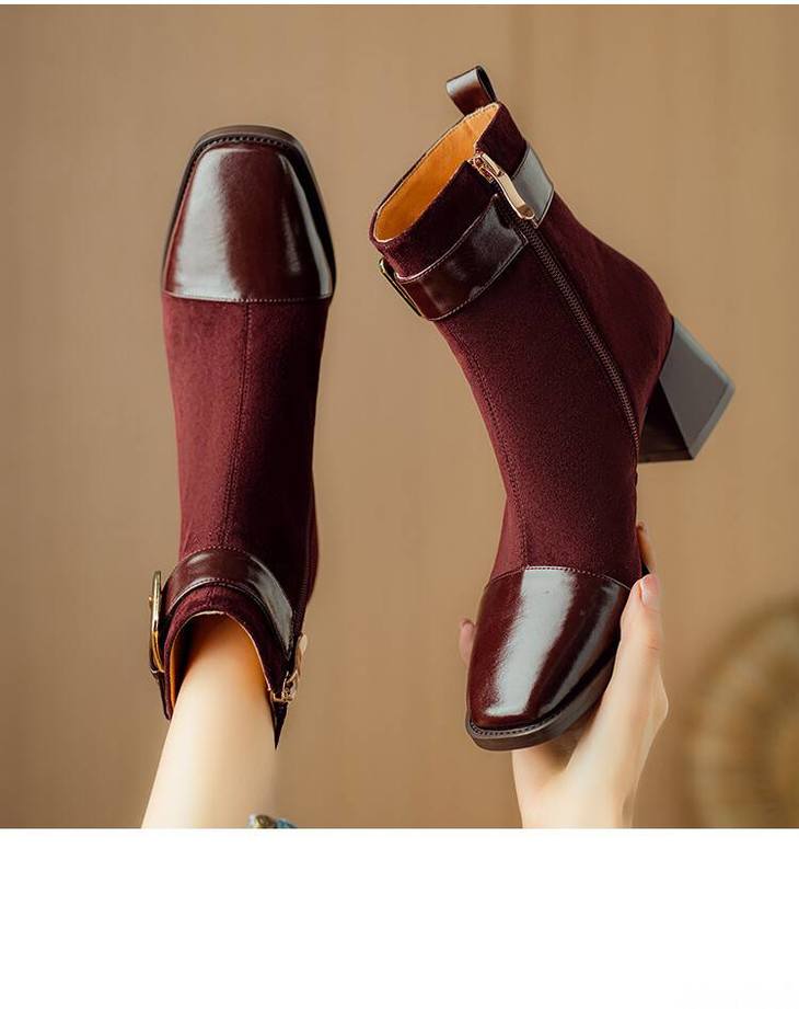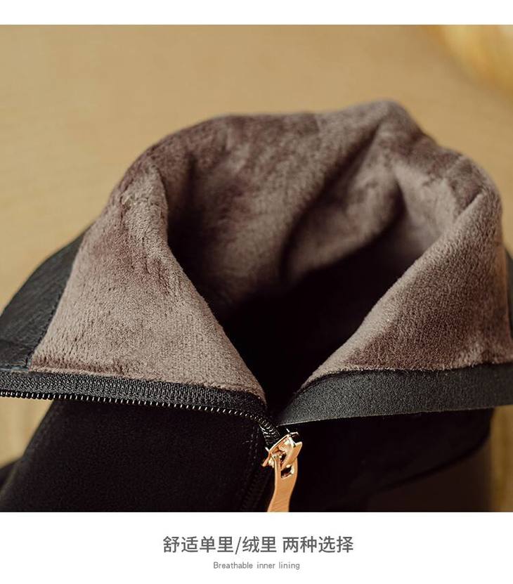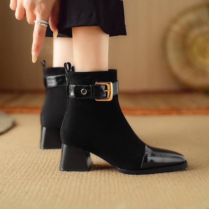 【预售5天】英伦风方头粗跟拼接马丁靴秋冬加绒保暖切尔西短靴瘦瘦靴NJMK&K1137