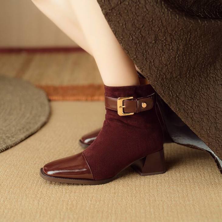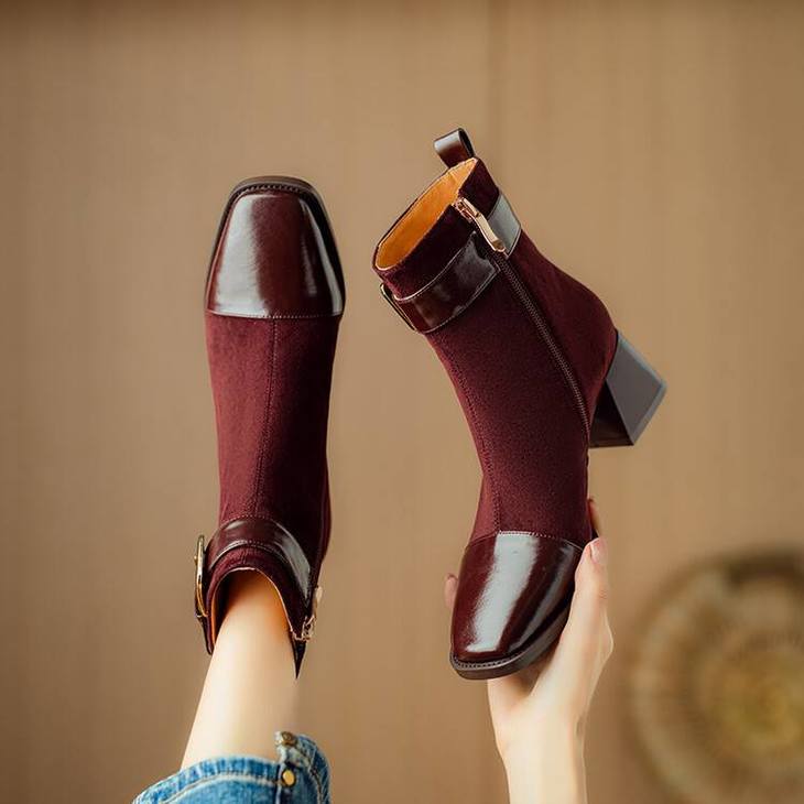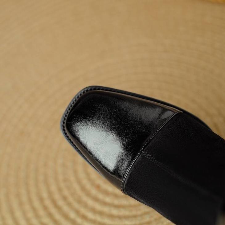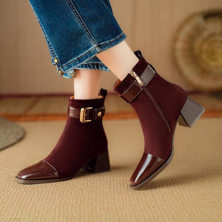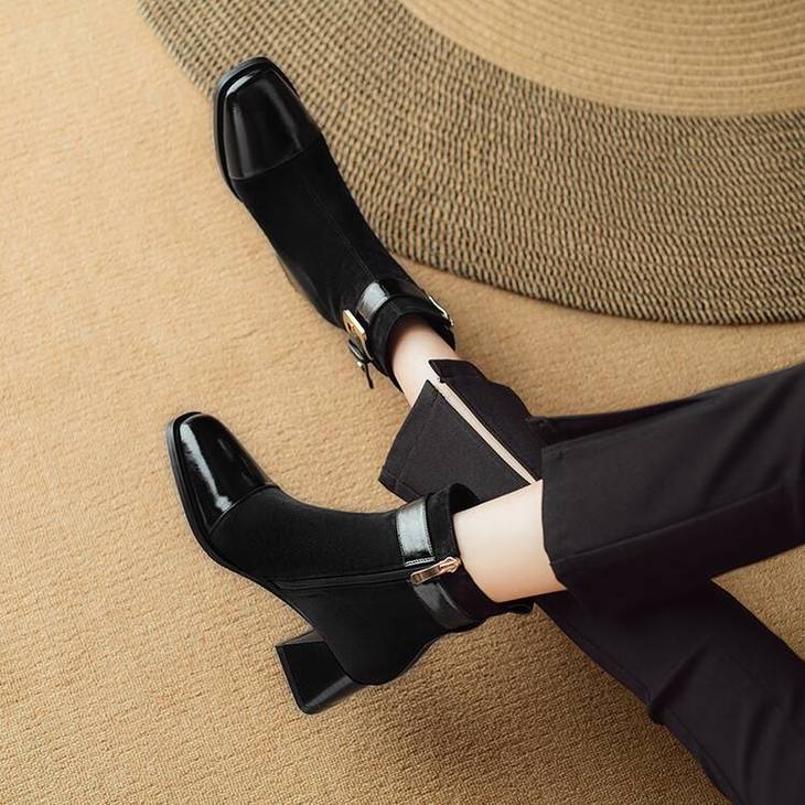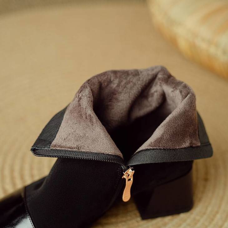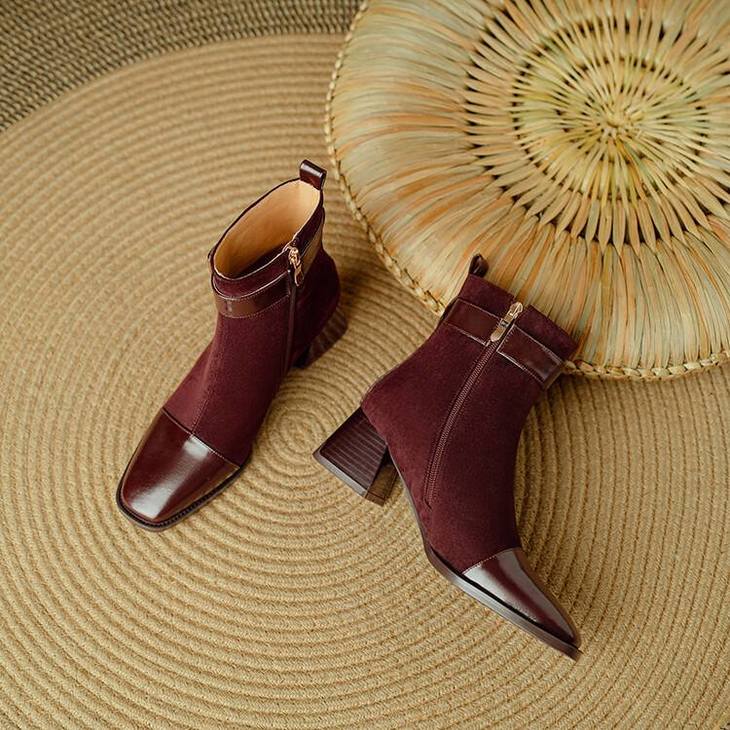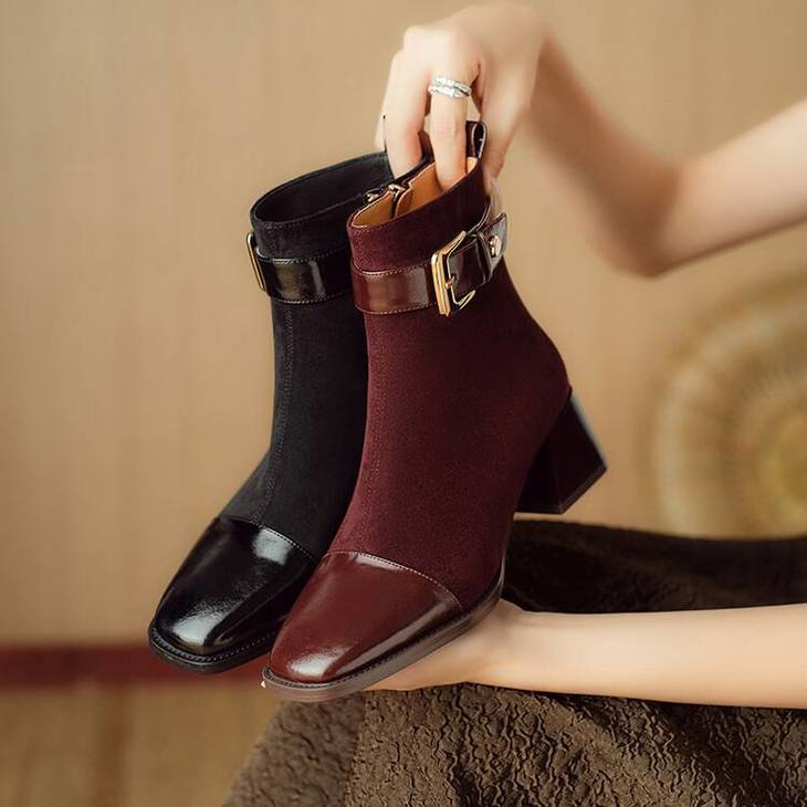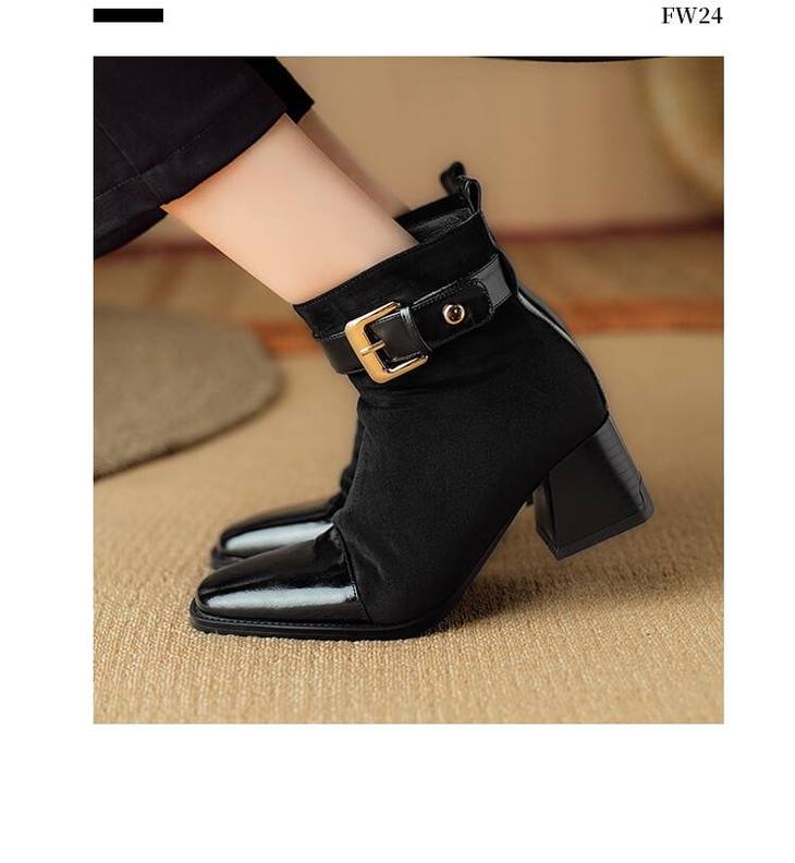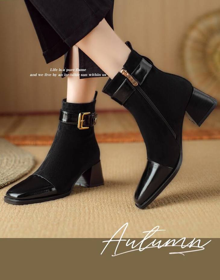 【预售5天】英伦风方头粗跟拼接马丁靴秋冬加绒保暖切尔西短靴瘦瘦靴NJMK&K1137