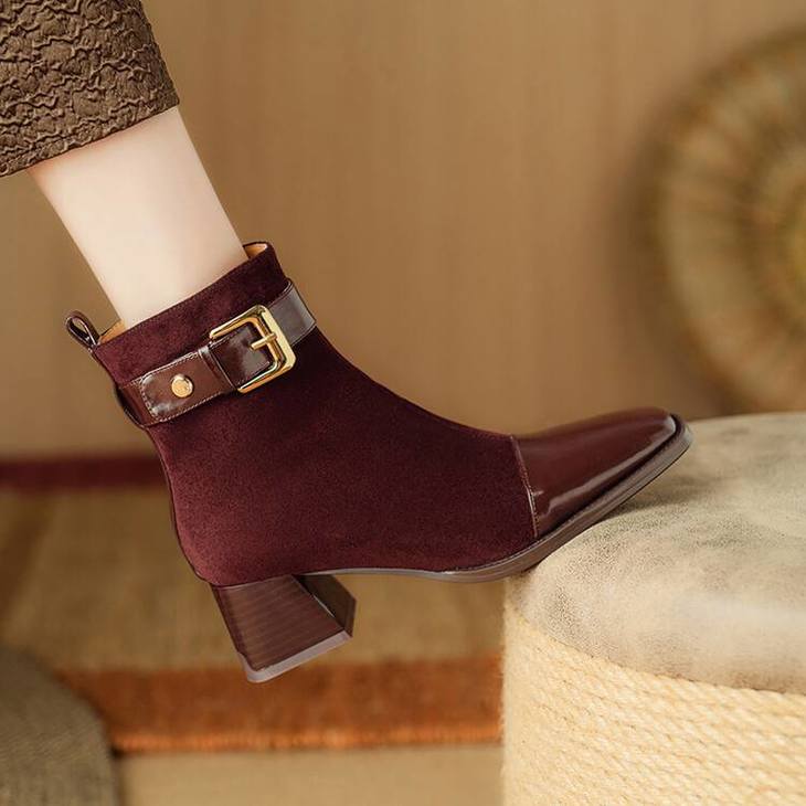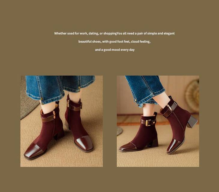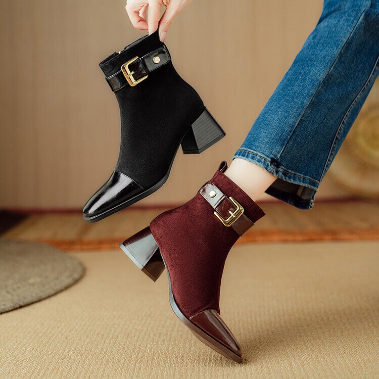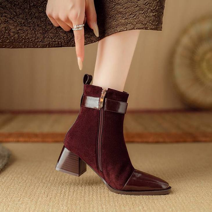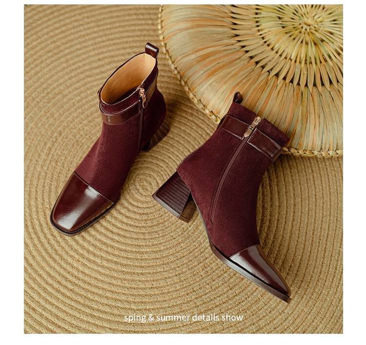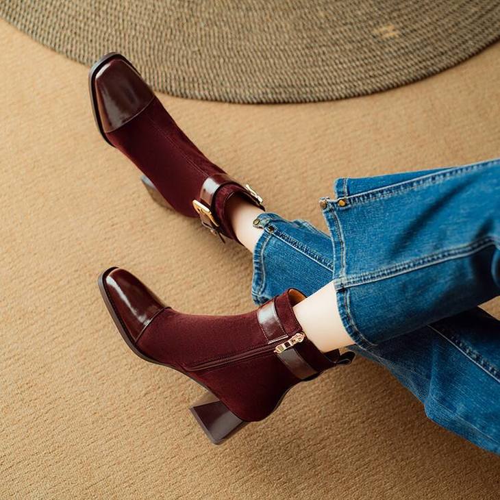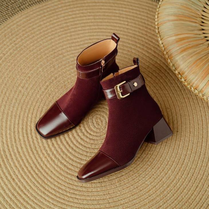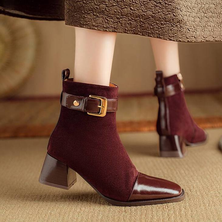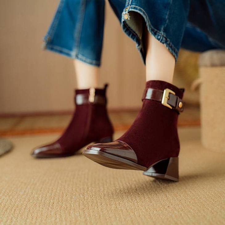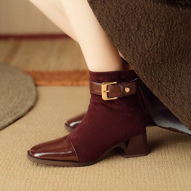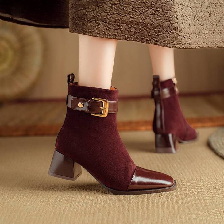 【预售5天】英伦风方头粗跟拼接马丁靴秋冬加绒保暖切尔西短靴瘦瘦靴NJMK&K1137