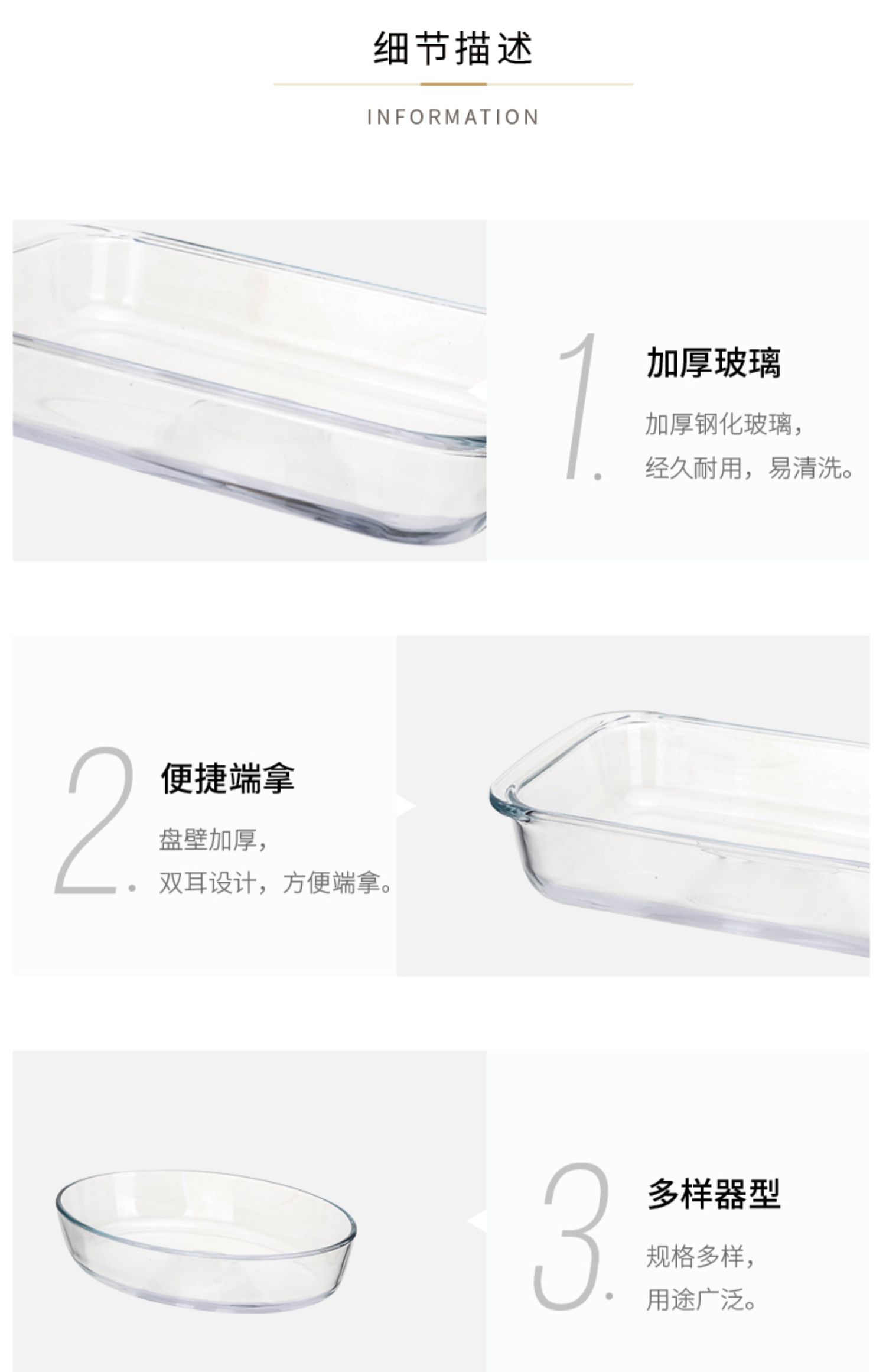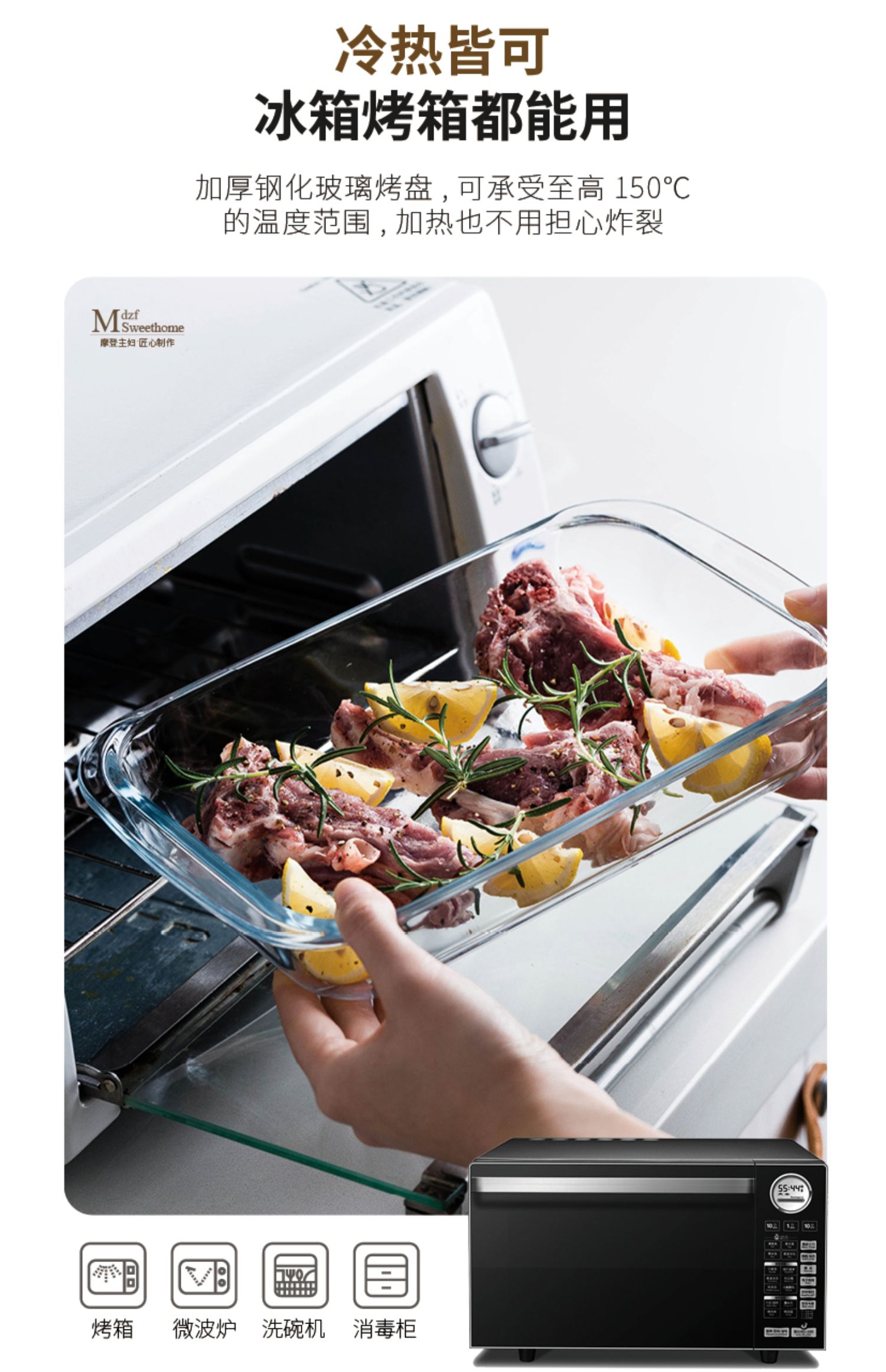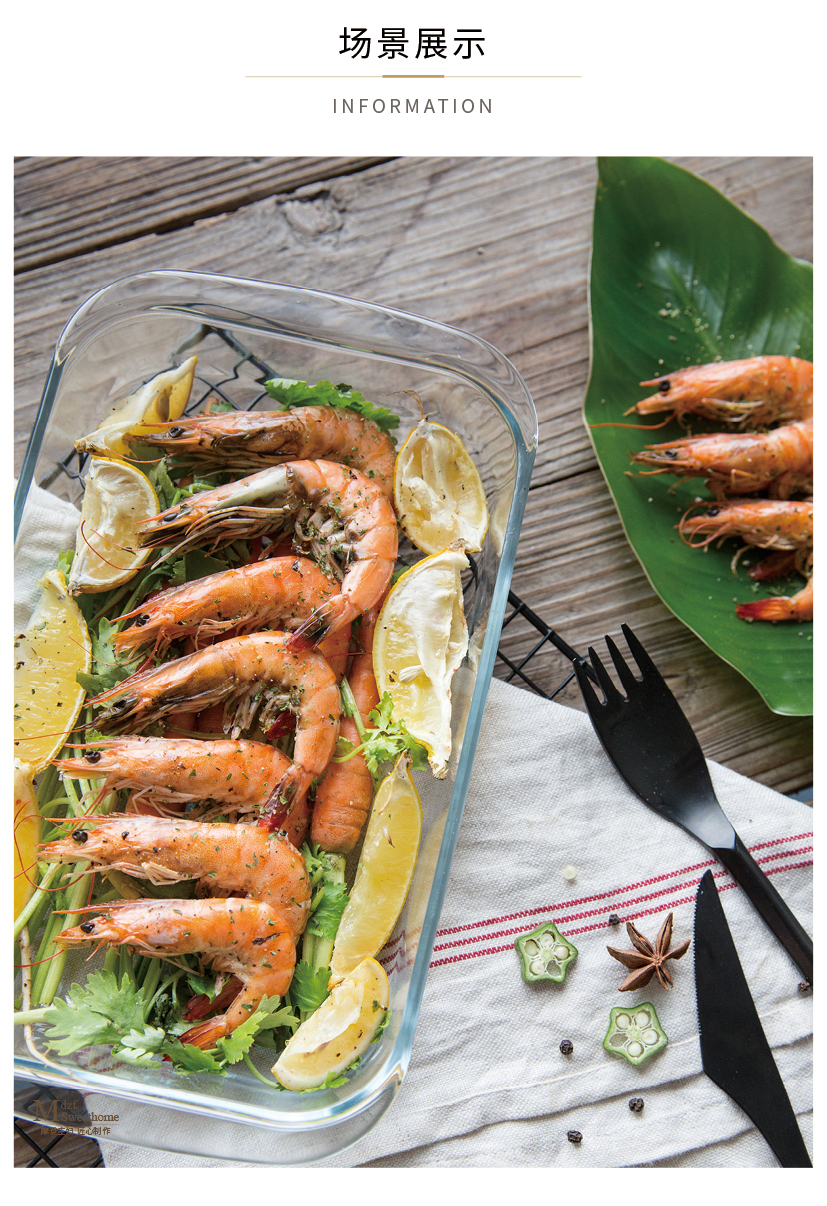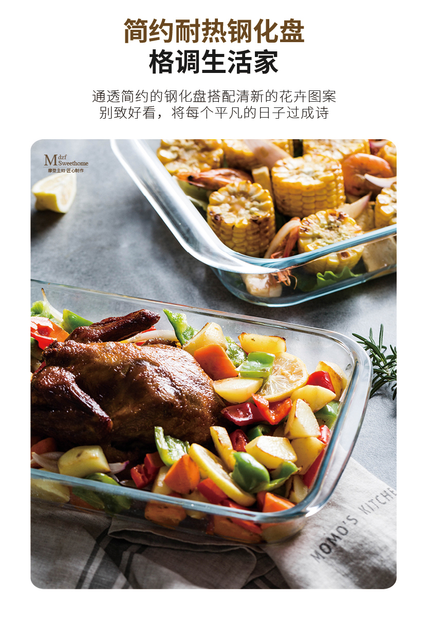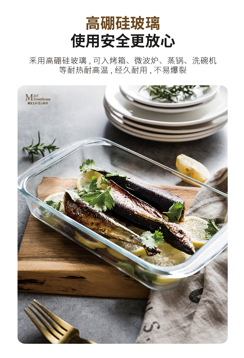 摩登主妇玻璃烤盘捞汁小海鲜盘微波炉专用长方形器皿家用蒸鱼盘子