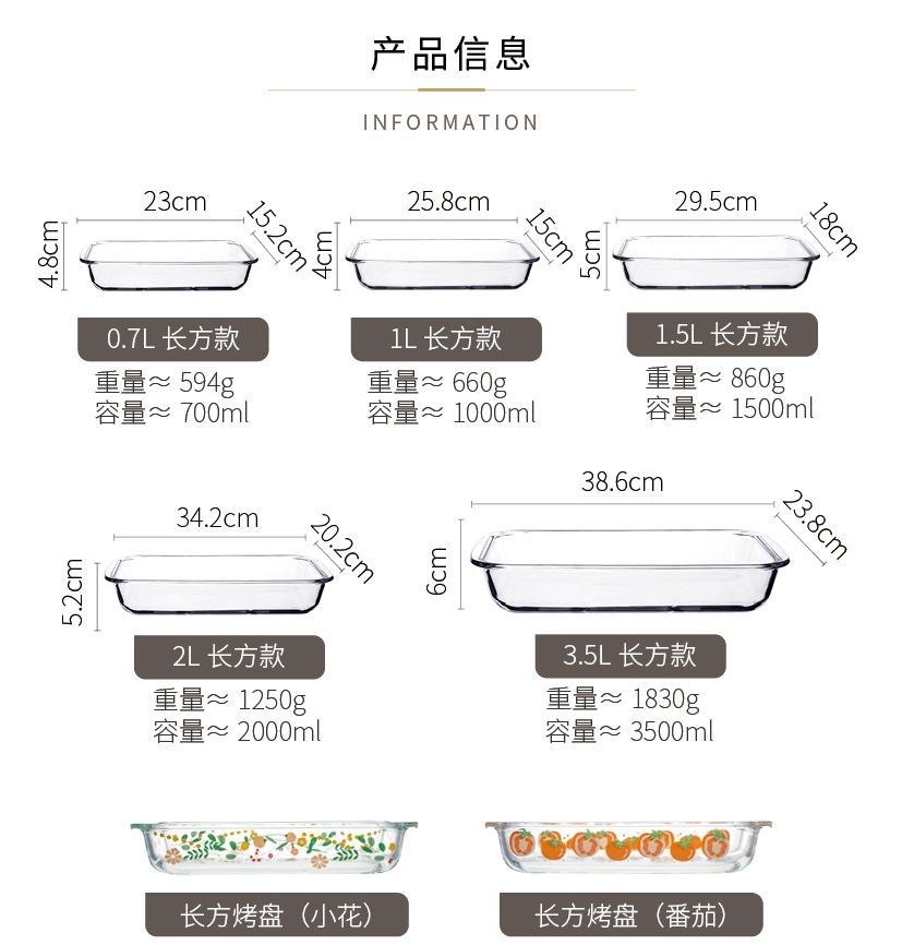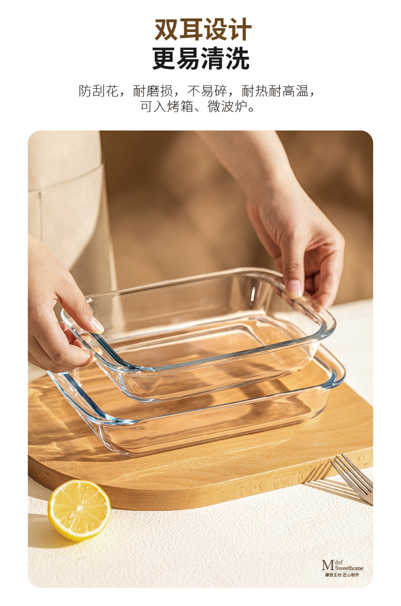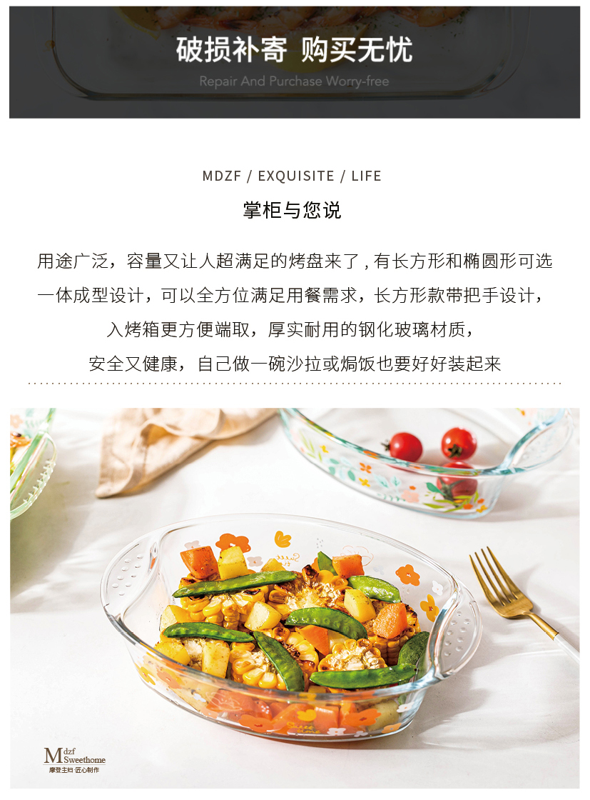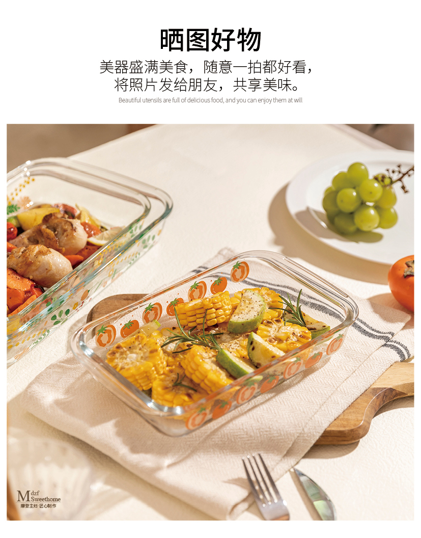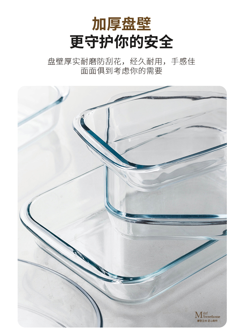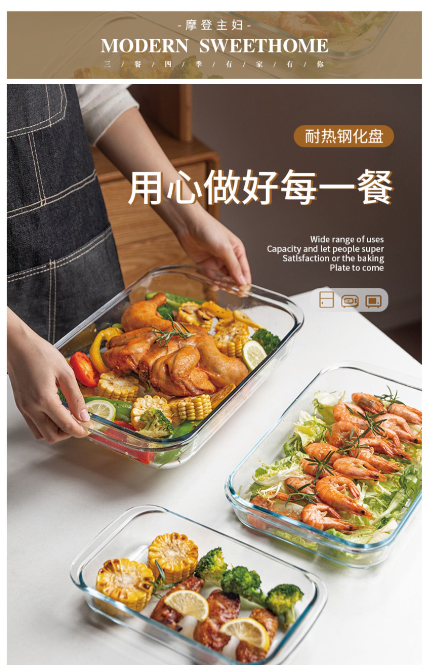 摩登主妇玻璃烤盘捞汁小海鲜盘微波炉专用长方形器皿家用蒸鱼盘子