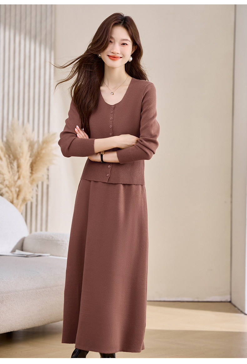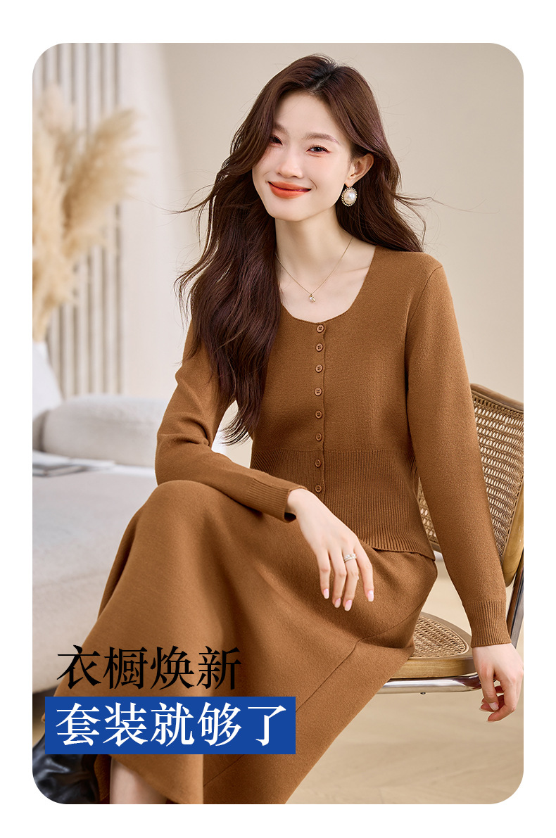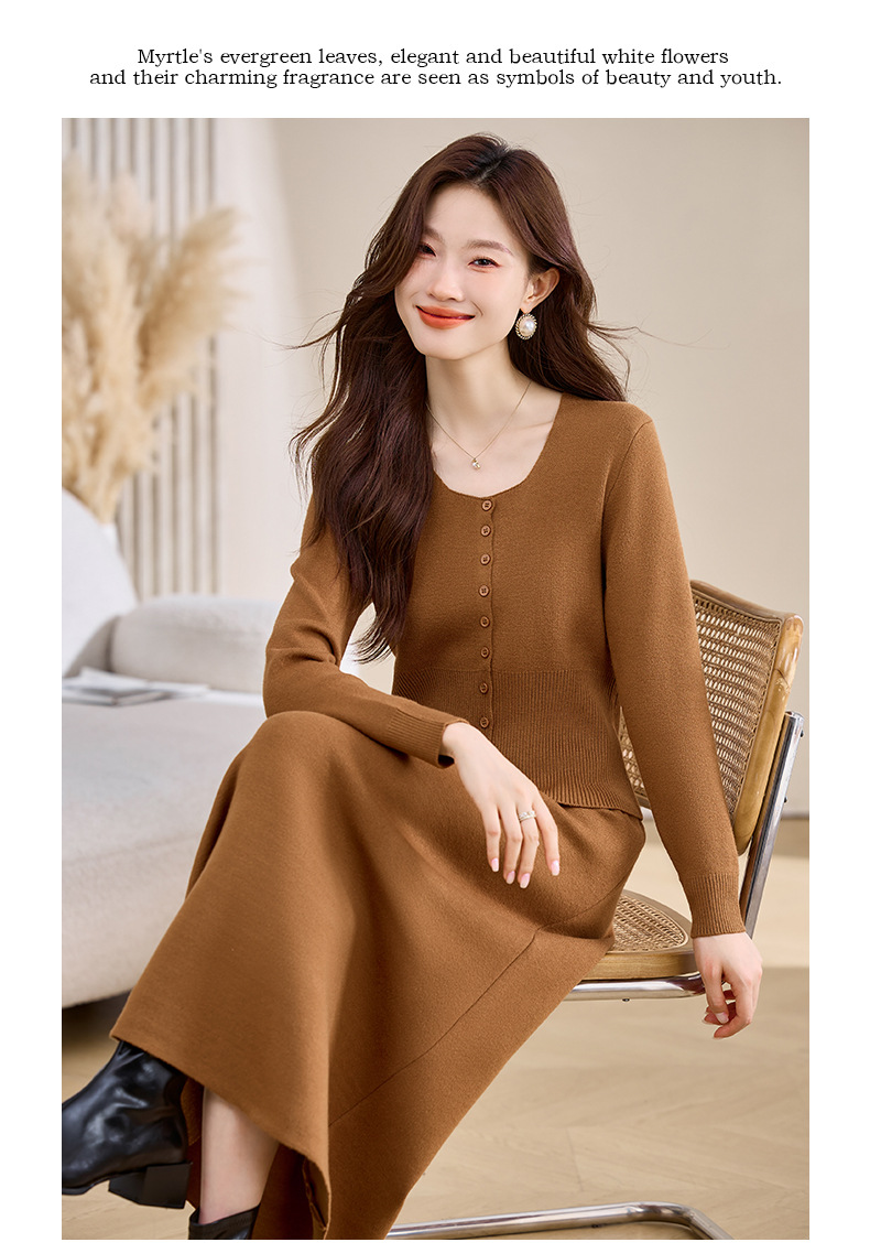 温柔气质韩版感,羊毛针织两件套套装裙AIMI1221