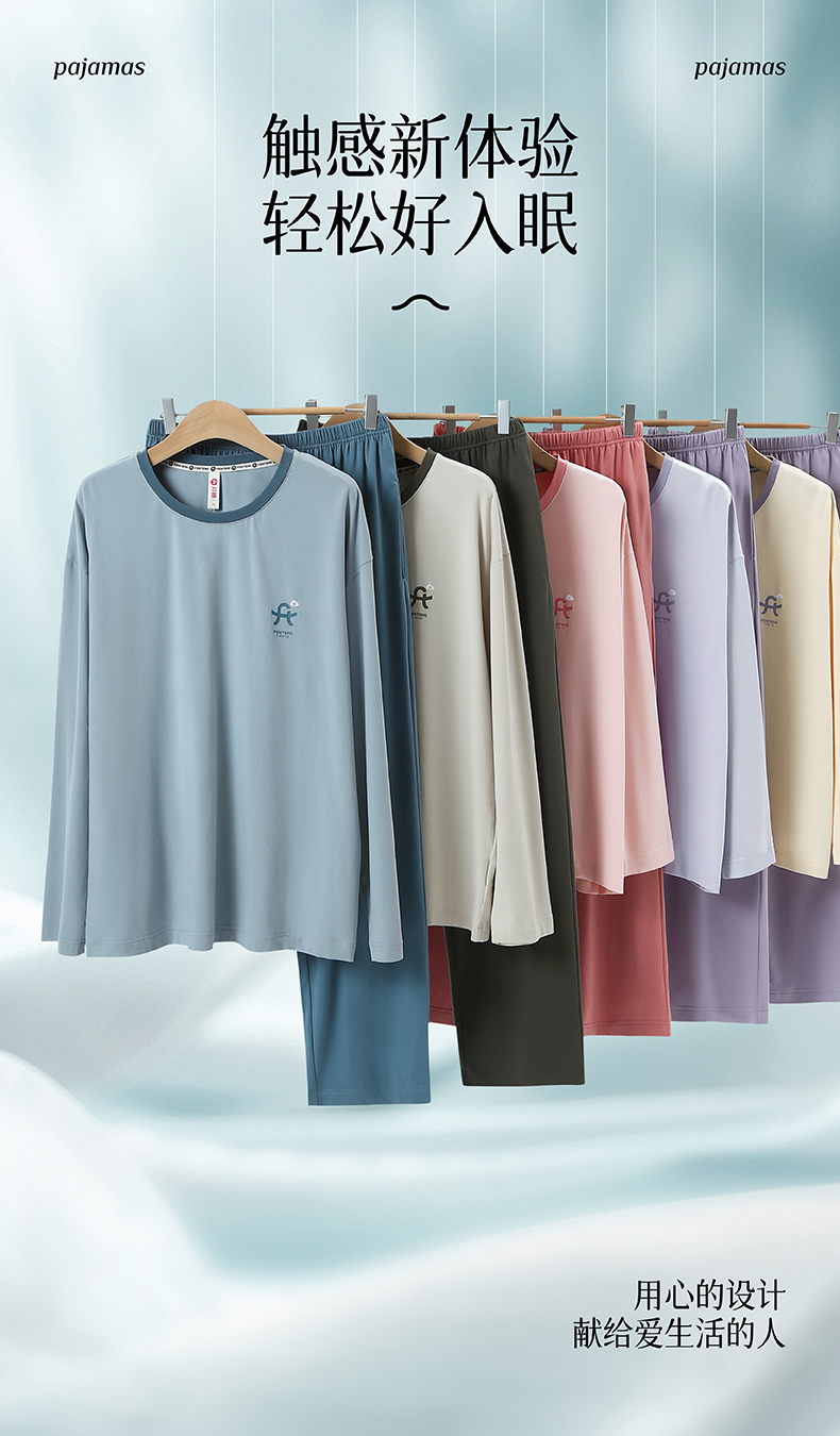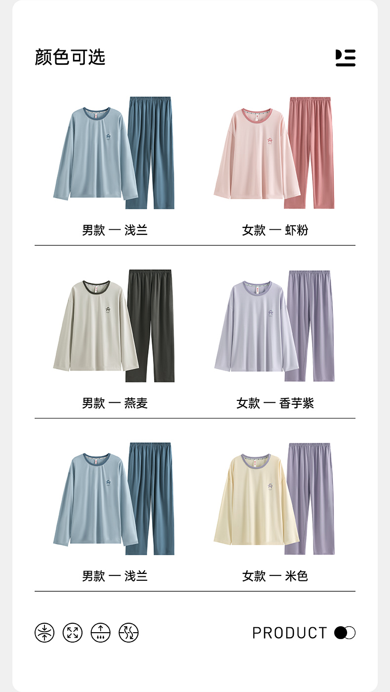 芬腾舒适春秋季纯棉情侣长袖长裤套装春季纯色全棉女款透气家居服