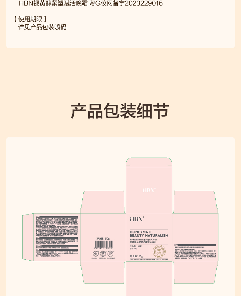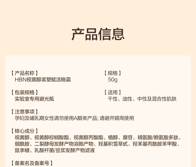【言安堂】HBN 双A醇晚霜2.0 新升级视黄醇面霜 50g 紧致抗皱