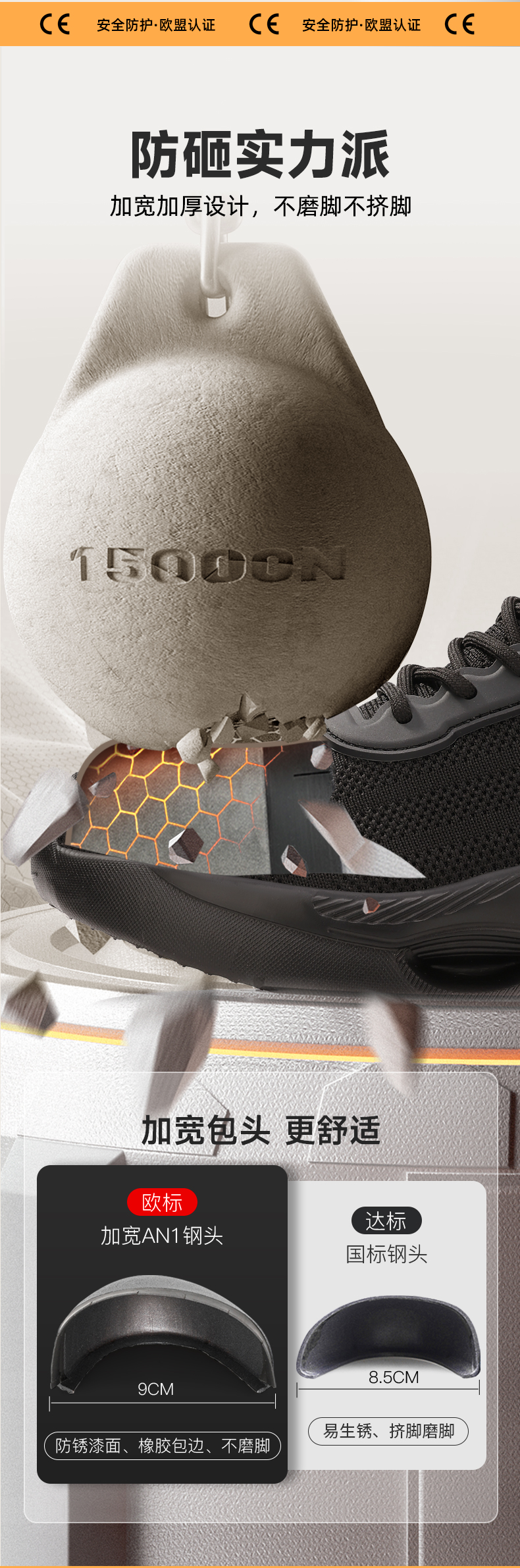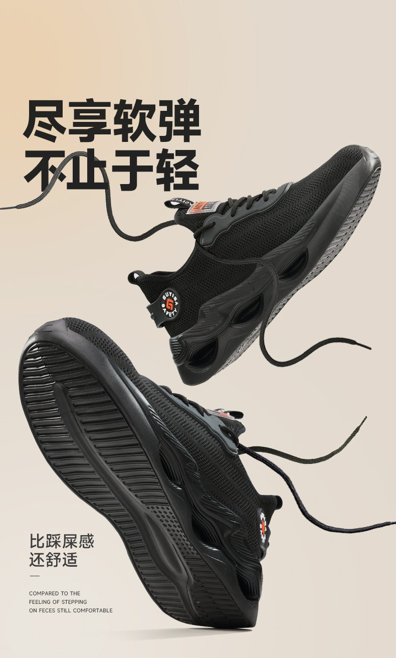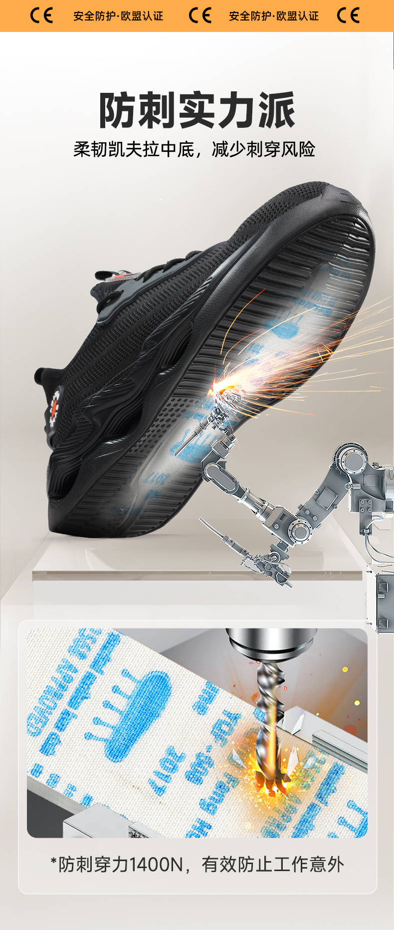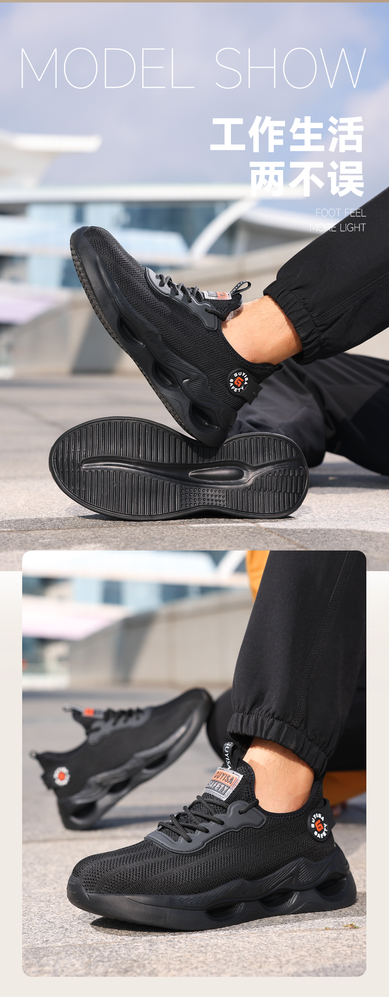 新品四季透气劳保鞋欧标钢头防砸防刺穿实心橡塑底舒适轻底