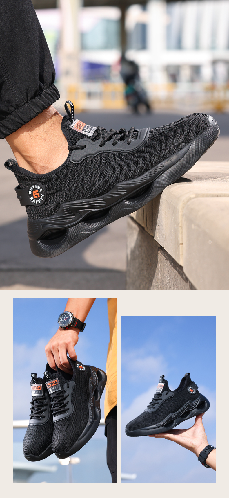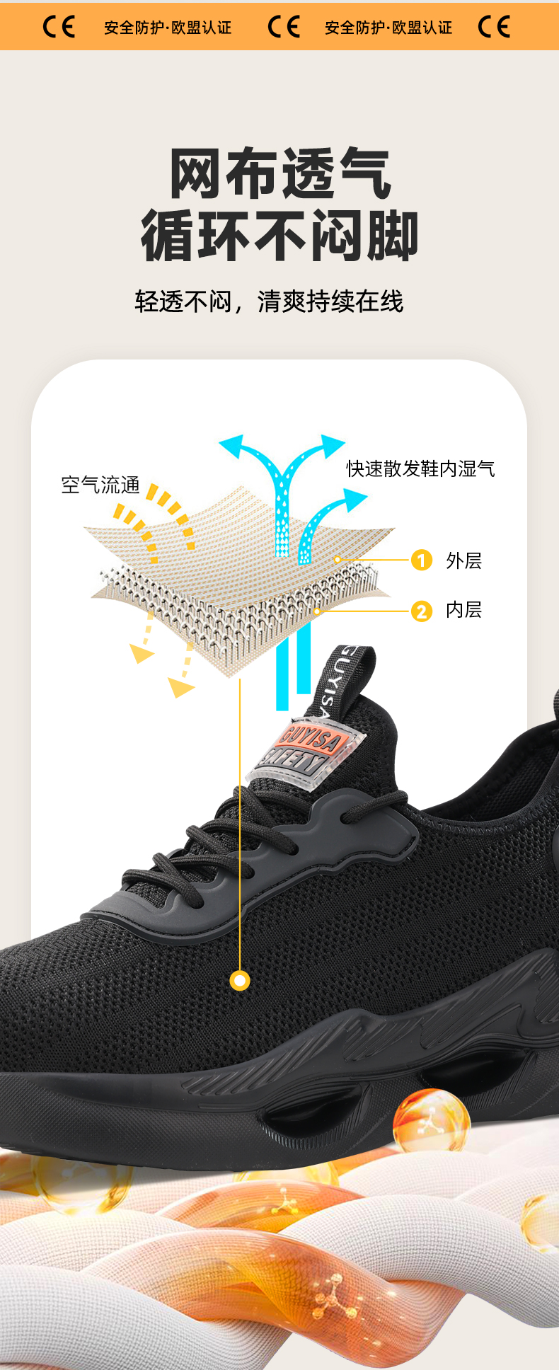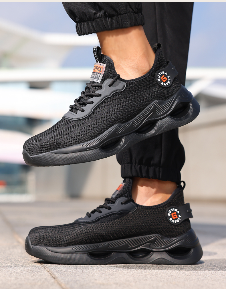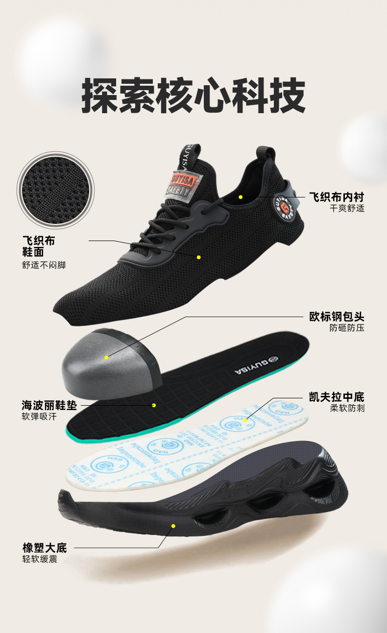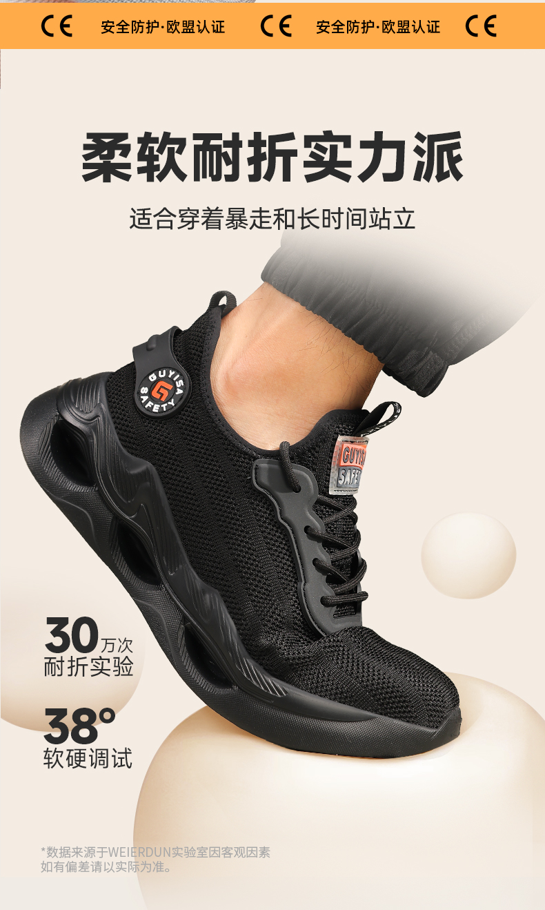 新品四季透气劳保鞋欧标钢头防砸防刺穿实心橡塑底舒适轻底