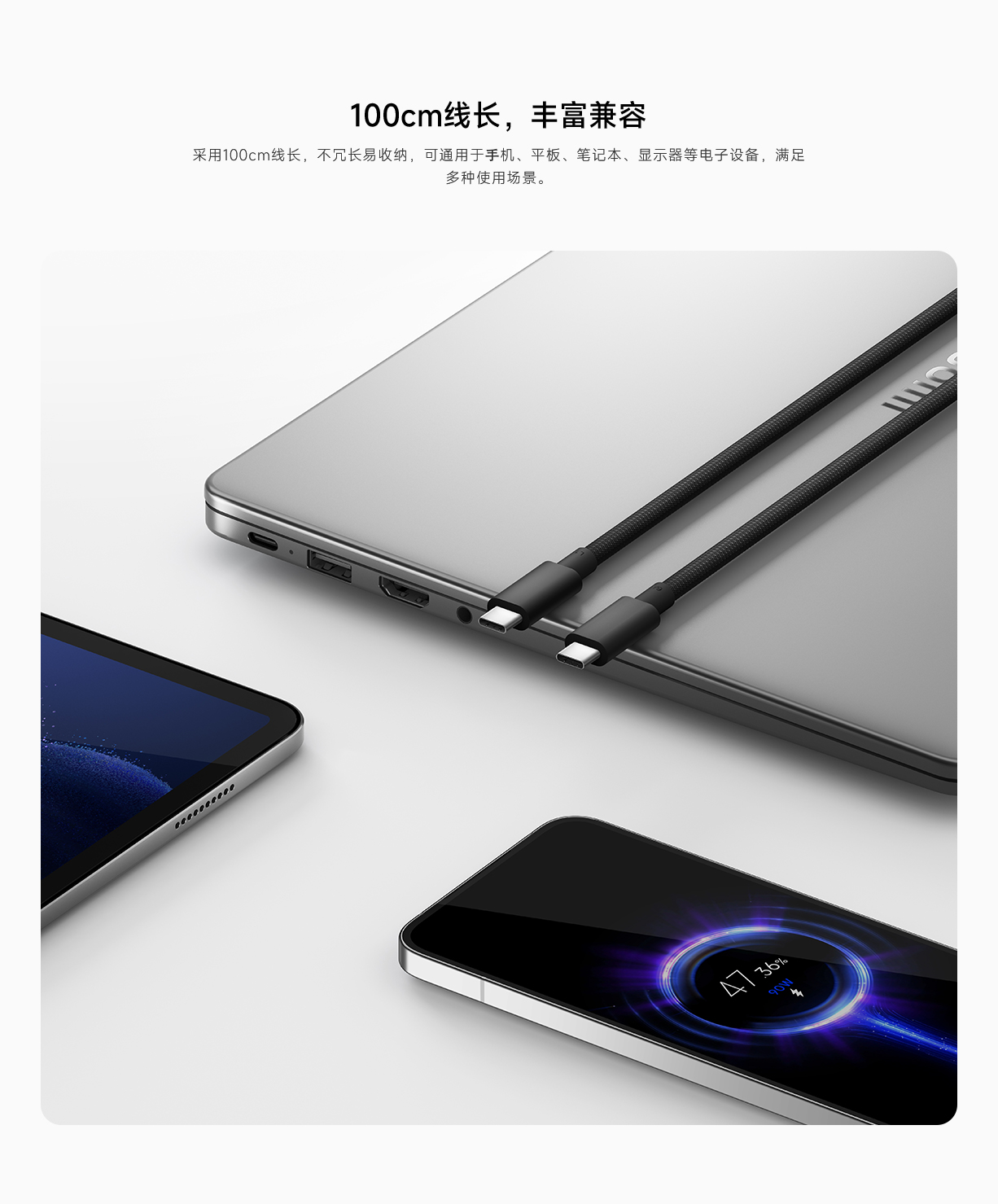 【京东退回/9成新】小米原装 6A USB4 编织高速数据线 1m(C to C)