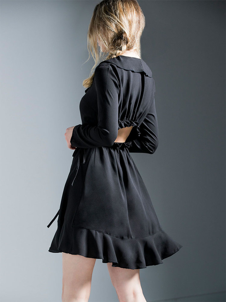 荷叶边绑带连衣裙 / Ruffled Wrap Mini Dress