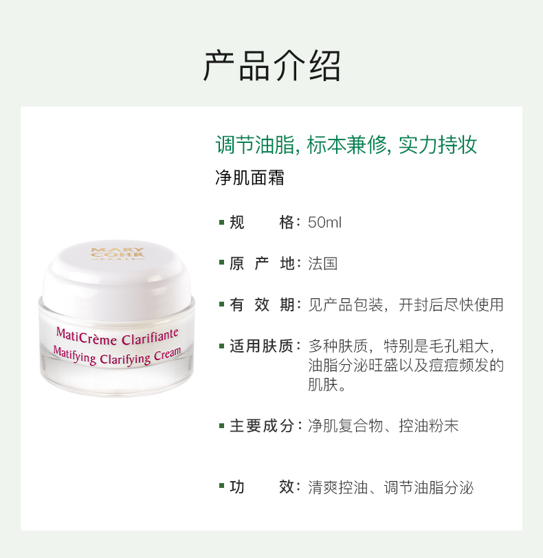 【品牌直邮】MARY COHR/玛莉格净肌面霜保湿补水控油清爽修缮面霜油皮痘肌乳霜男女