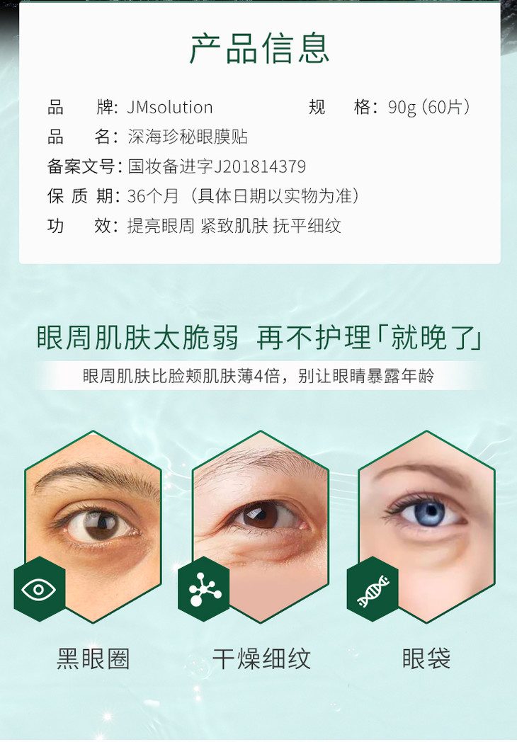 🍀 韓國JM全新產品 海洋珍珠眼膜🐚補水美白"還能淡化痘印,這款眼膜含有江原道珍珠,和純淨大海莞島產鮑魚珍珠萃取的珍珠蛋白㊙ 添加20多種氨基酸和礦物質,美白,保濕,潤滑緊致皮膚~☁️,這款是抗老化改善細紋還能修復損傷。一盒30對‼️