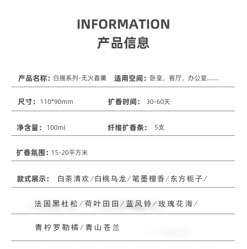 【买一赠一】级简白描系列无火香薰,进口原料植物精油自然芳香除异味