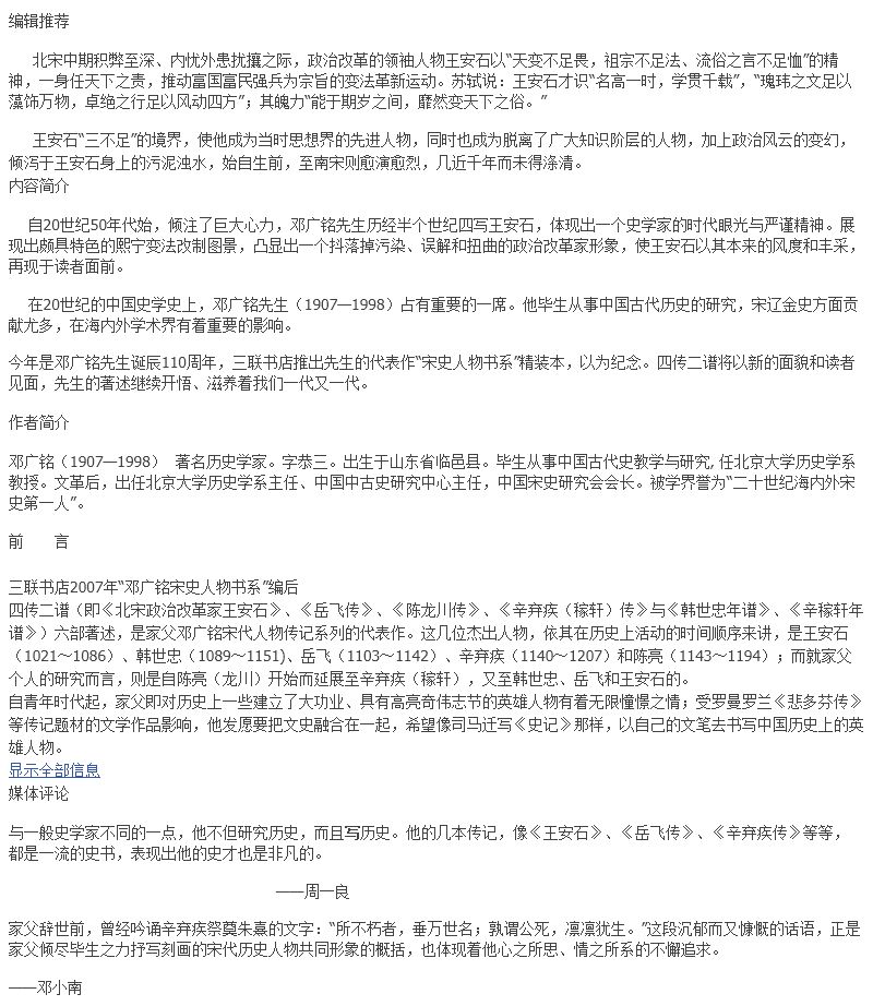 生活•读书•新知三联书店是一家具有悠久历史和光荣传统的出版机构。建店八十余年来,始终秉承“竭诚为读者服务”的宗旨,坚持“一流、新锐”的标准,被誉为“中国知识分子的精神家园”。