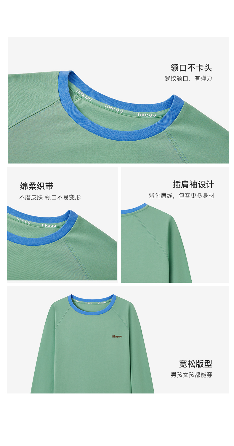ubras旗下likeuu男女童圆领立领款保暖内衣套装美利奴棉羊秋冬ZY