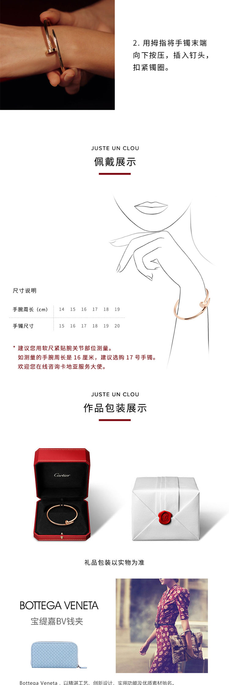 "Cartier卡地亚Juste un Clou钉子系列 玫瑰金 经典款手镯 宝缇嘉BV钱夹114076 V001N 4713"