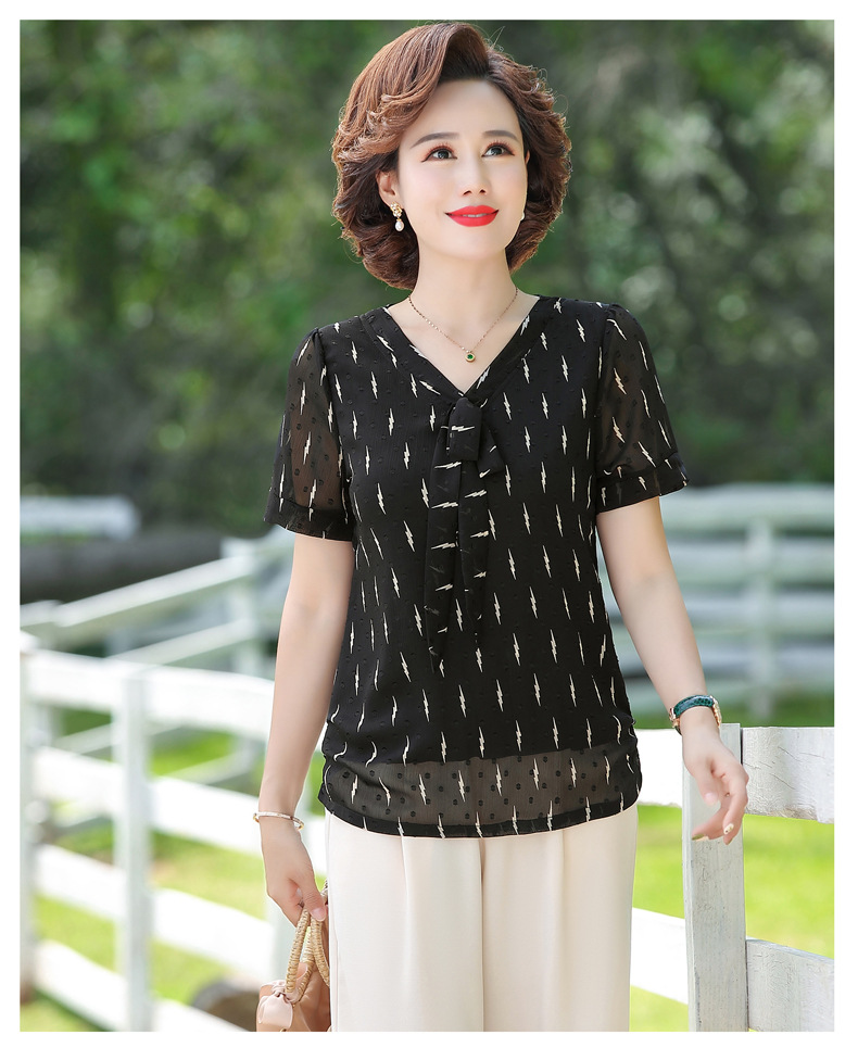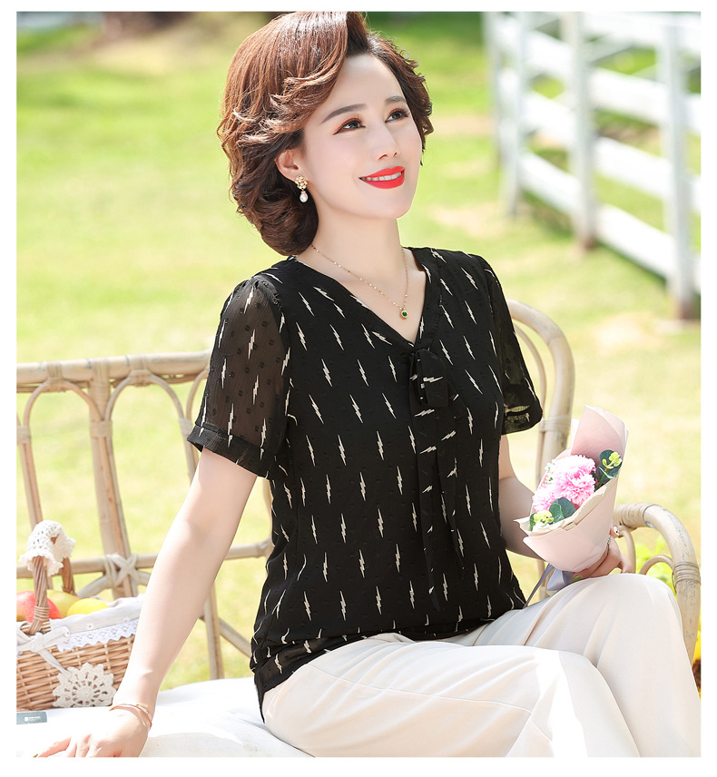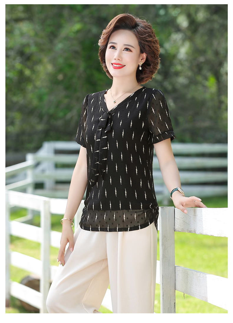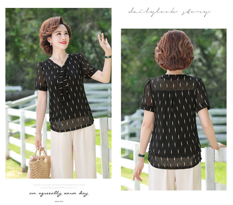 MQ-LX062夏装新款洋气蕾丝短袖雪纺衫YY