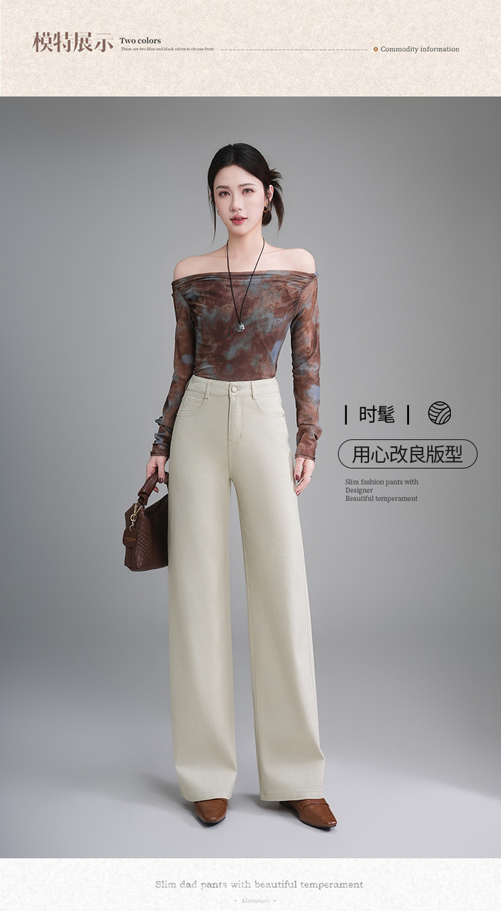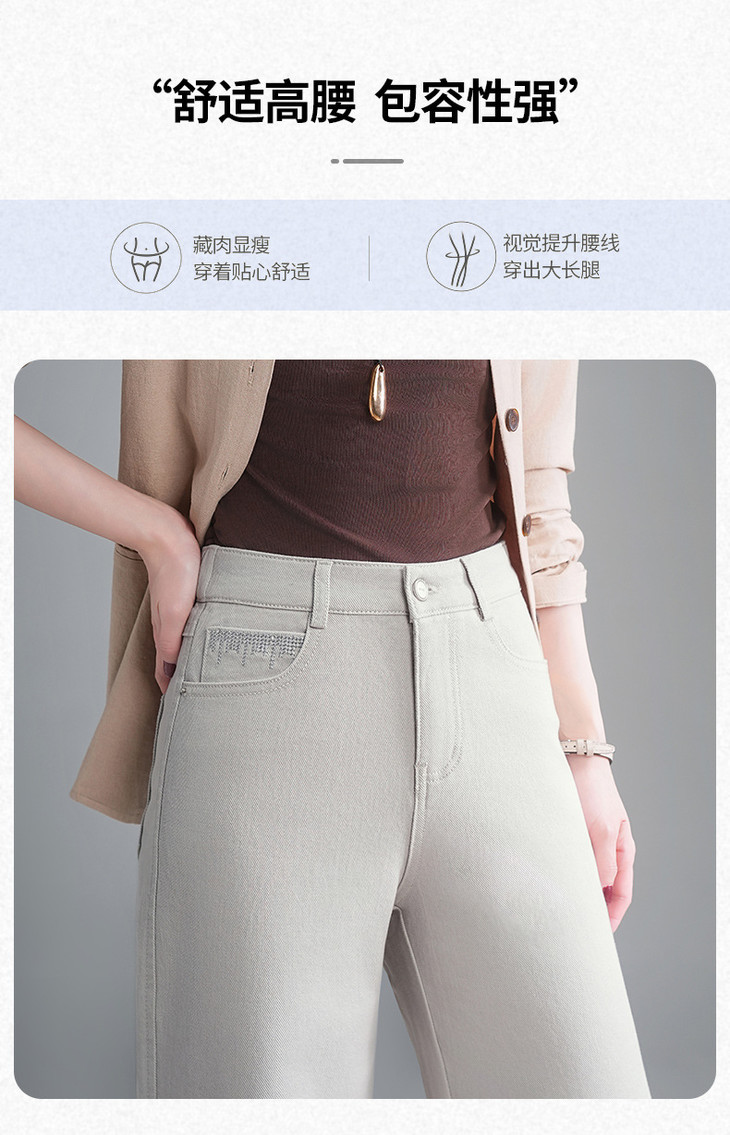 牛仔棉面料阔腿裤2026年新款高腰直筒裤QYM2608 商品图2