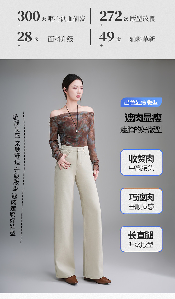 牛仔棉面料阔腿裤2026年新款高腰直筒裤QYM2608 商品图0