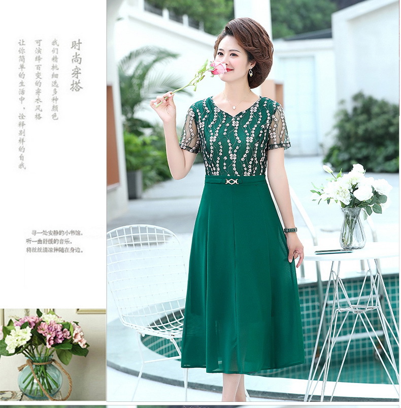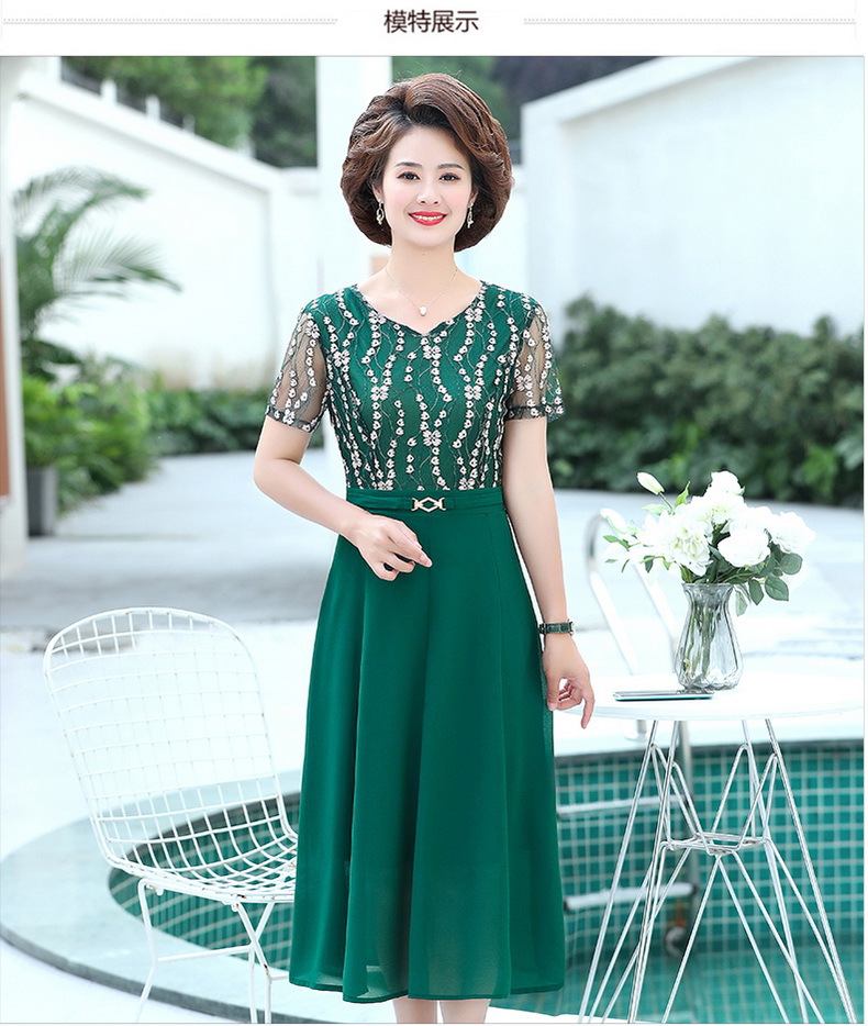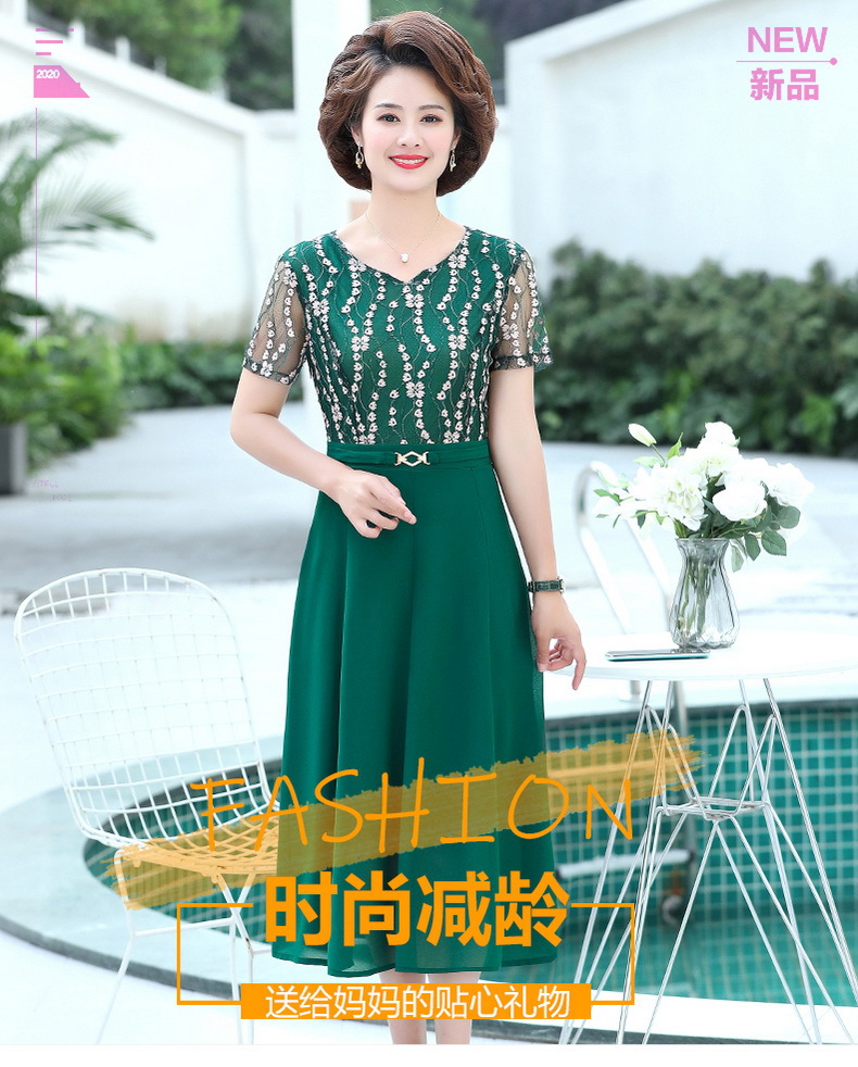 MQ-3650-552夏装新款气质高贵洋气蕾丝过膝连衣裙YY