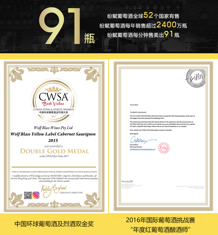 纷赋酒庄澳洲原瓶进口黄牌葡萄酒(1箱6瓶装)