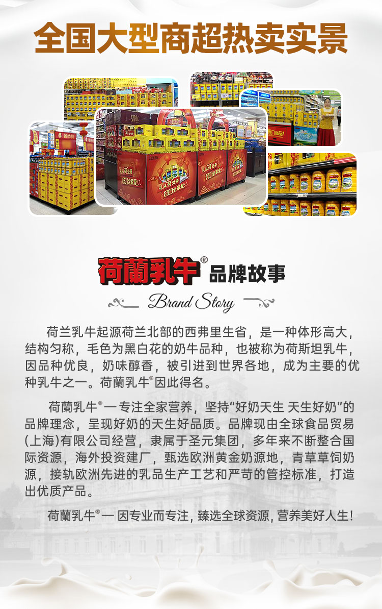 - 荷兰乳牛品牌于1990年进入中国,相伴31年始终致力于为更多家庭奉上优种荷兰乳牛带来的营养与美味。秉承“珍选至纯营养,传承经典醇香”的理念,打造一个覆盖全人群、多品类、高品质的国际化品牌。