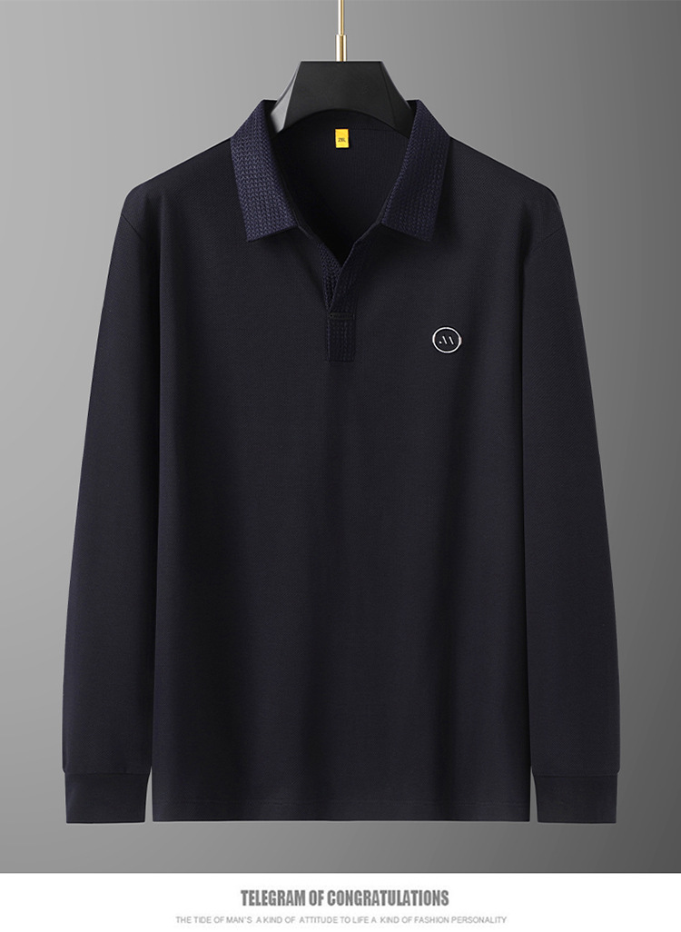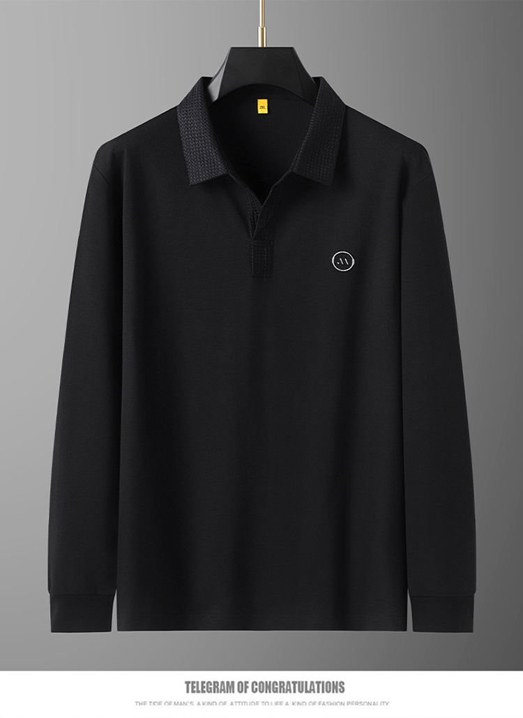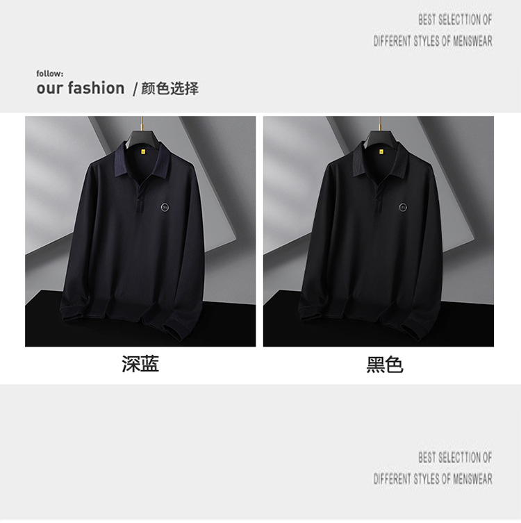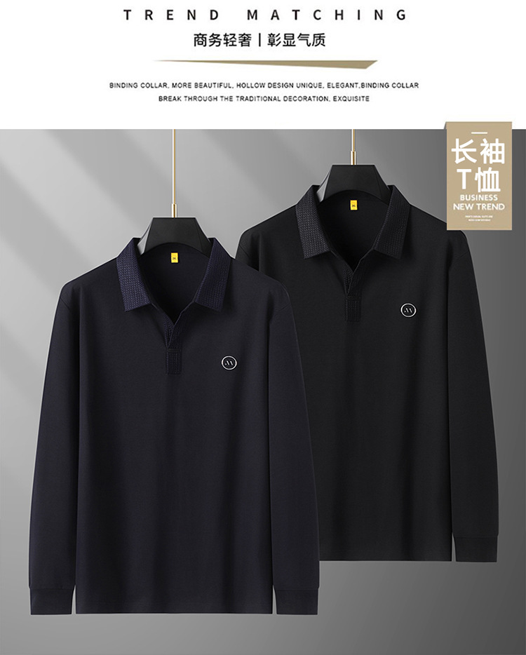 【丝光棉】【DG】大依优型300斤男士POLO衫翻领长袖T恤V领商务轻奢气质新款加肥加大码时尚休闲翻领丝光棉打底衫