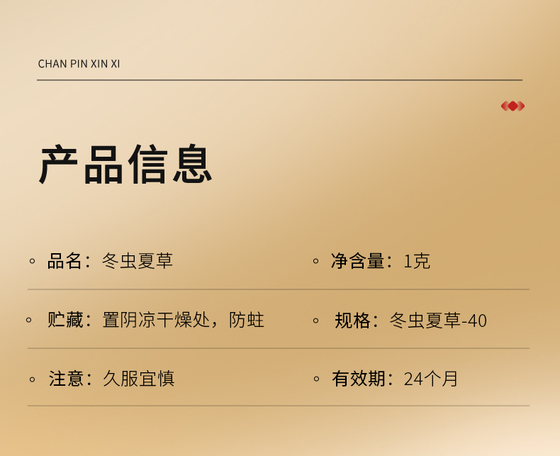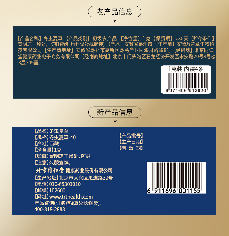 【正宗同仁堂品牌】北京同仁堂 青源堂 冬虫夏草 4条/g 1克装 拒绝断草 多次净制 根根精选 人工剥泥SY