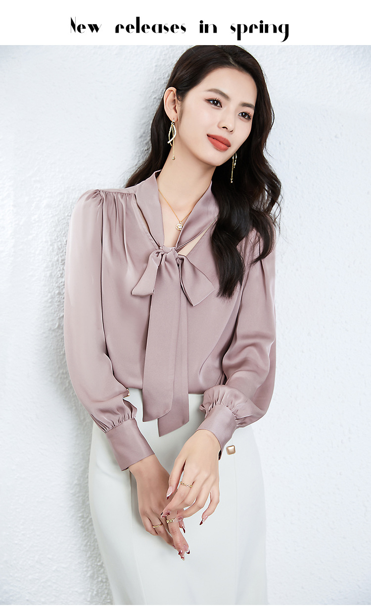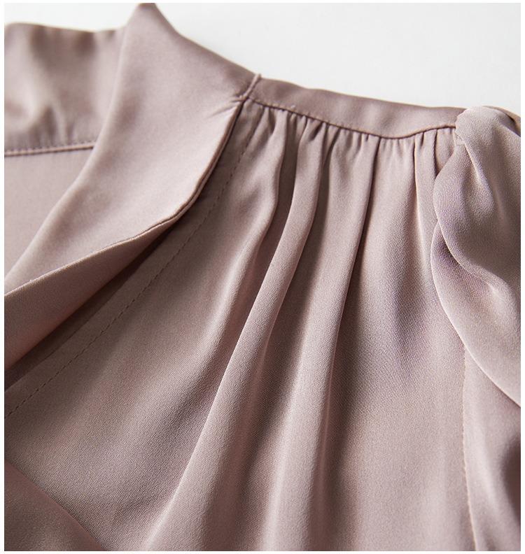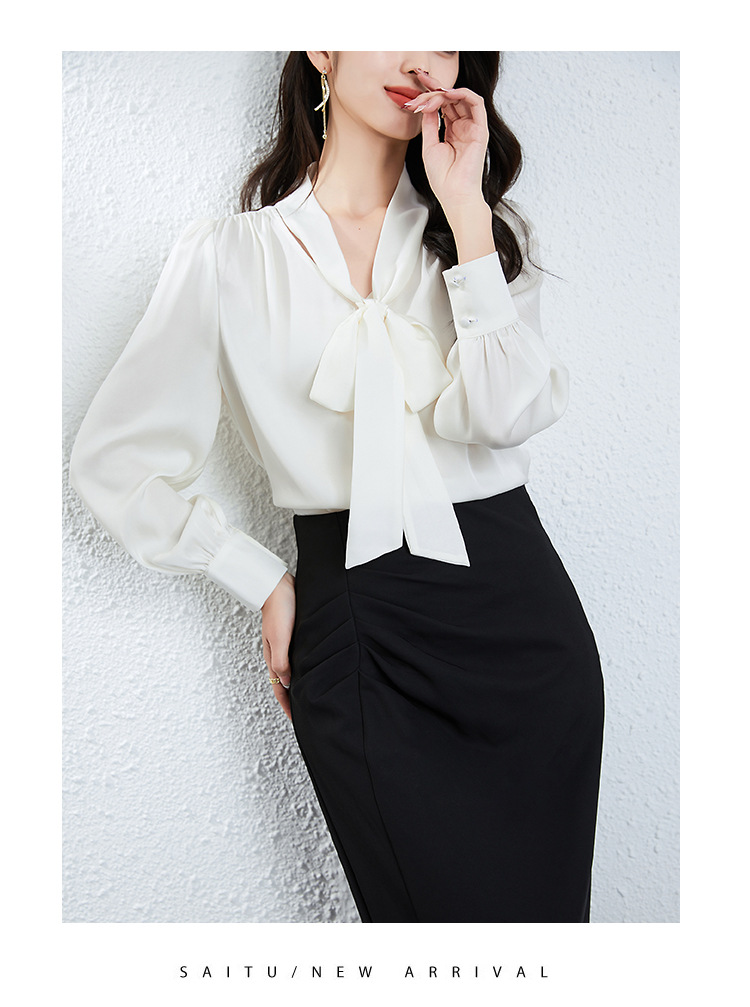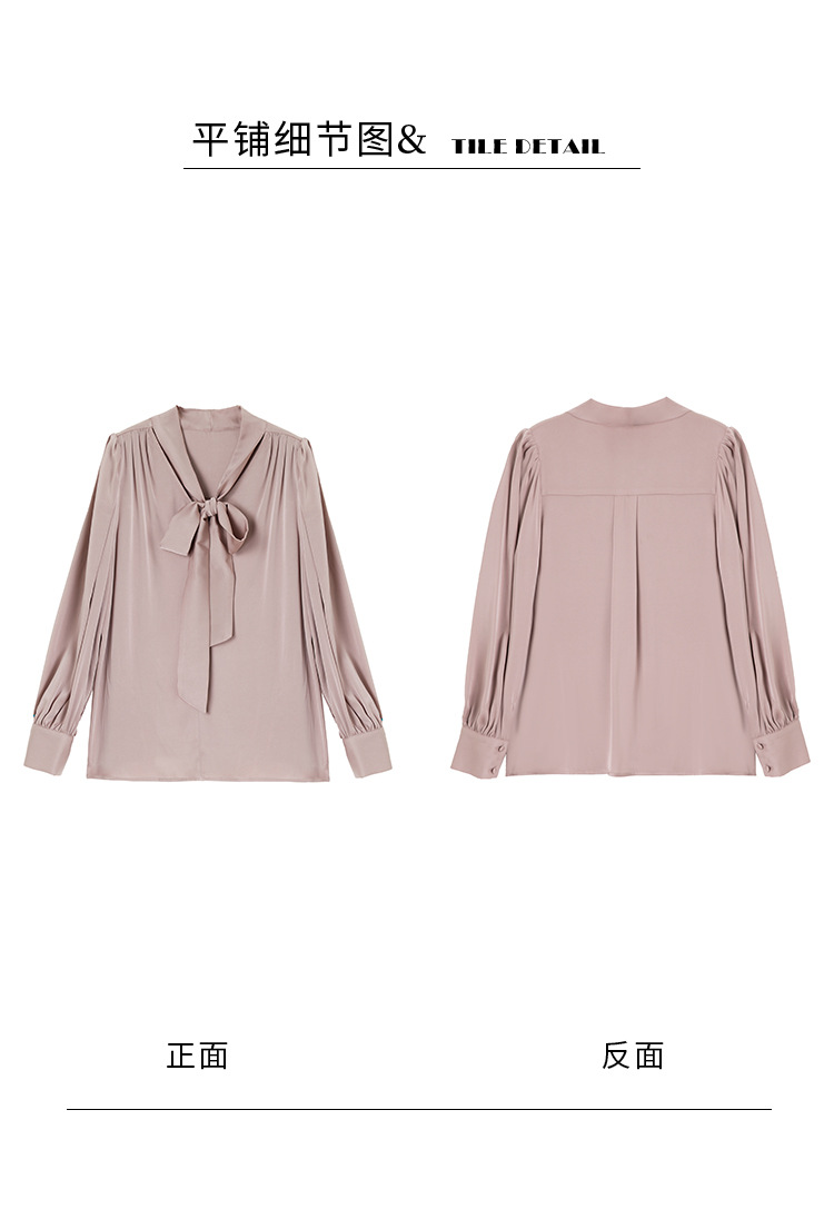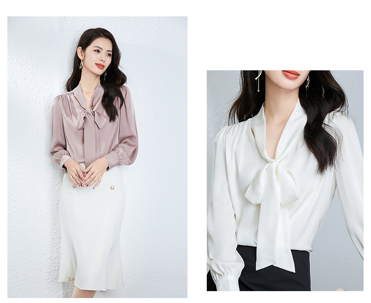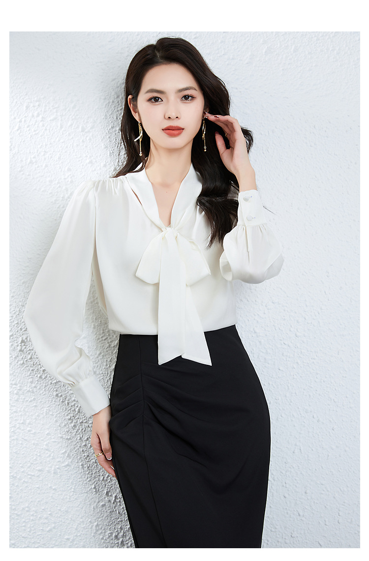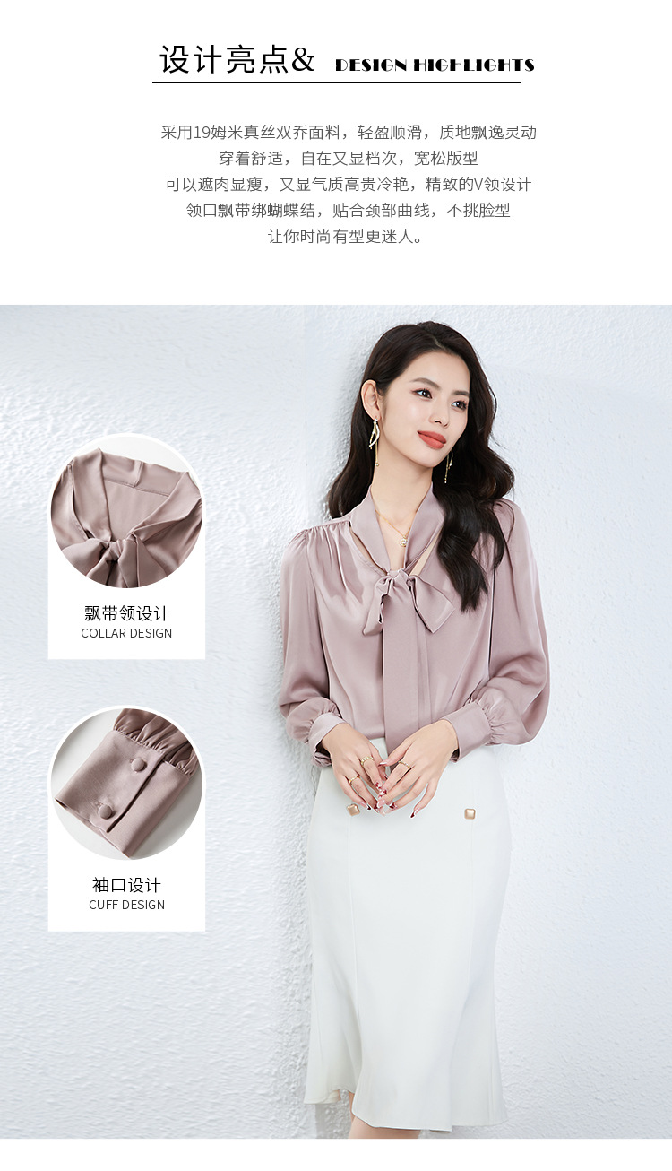 丁摩桑蚕丝衬衣女春季新款重磅真丝双乔法式V领蝴蝶结衬衫高级感上衣AL25013