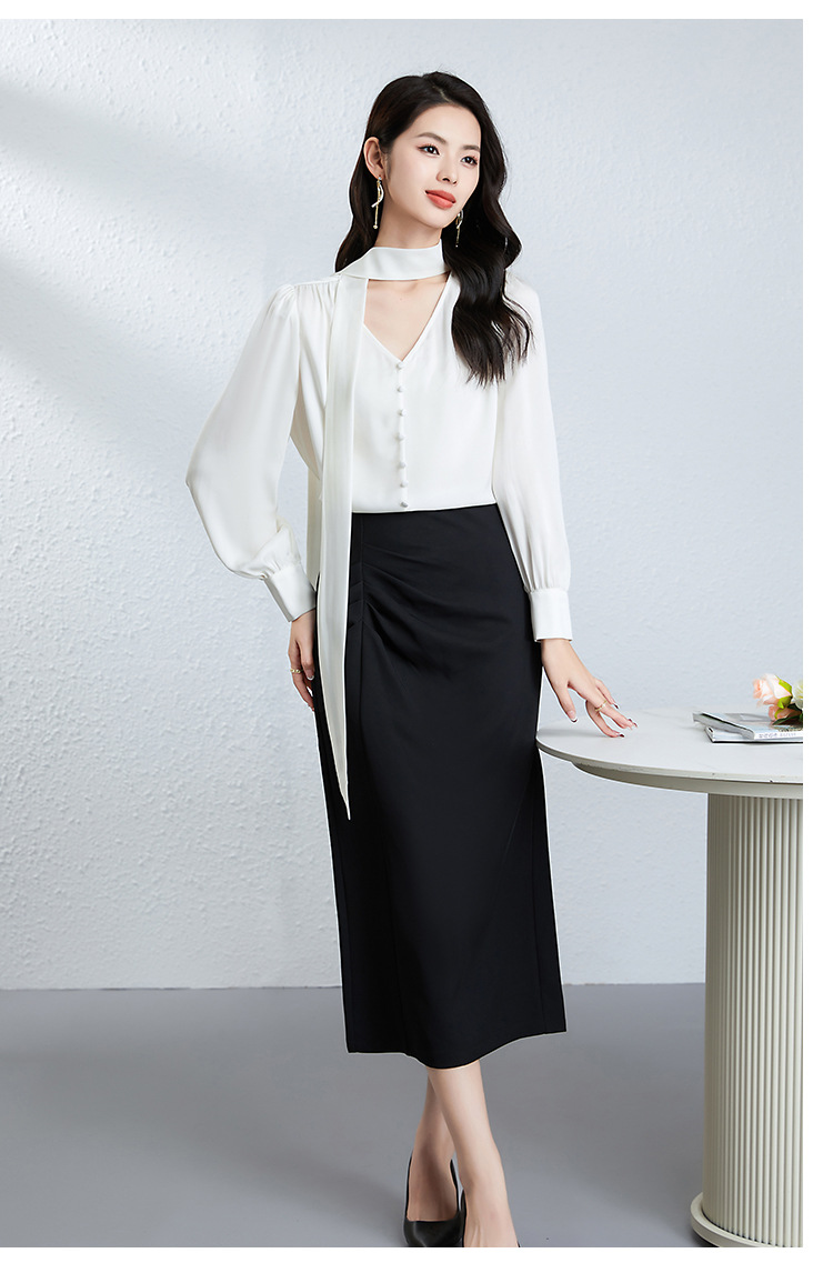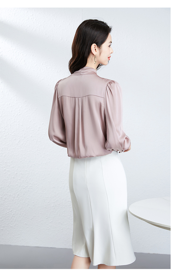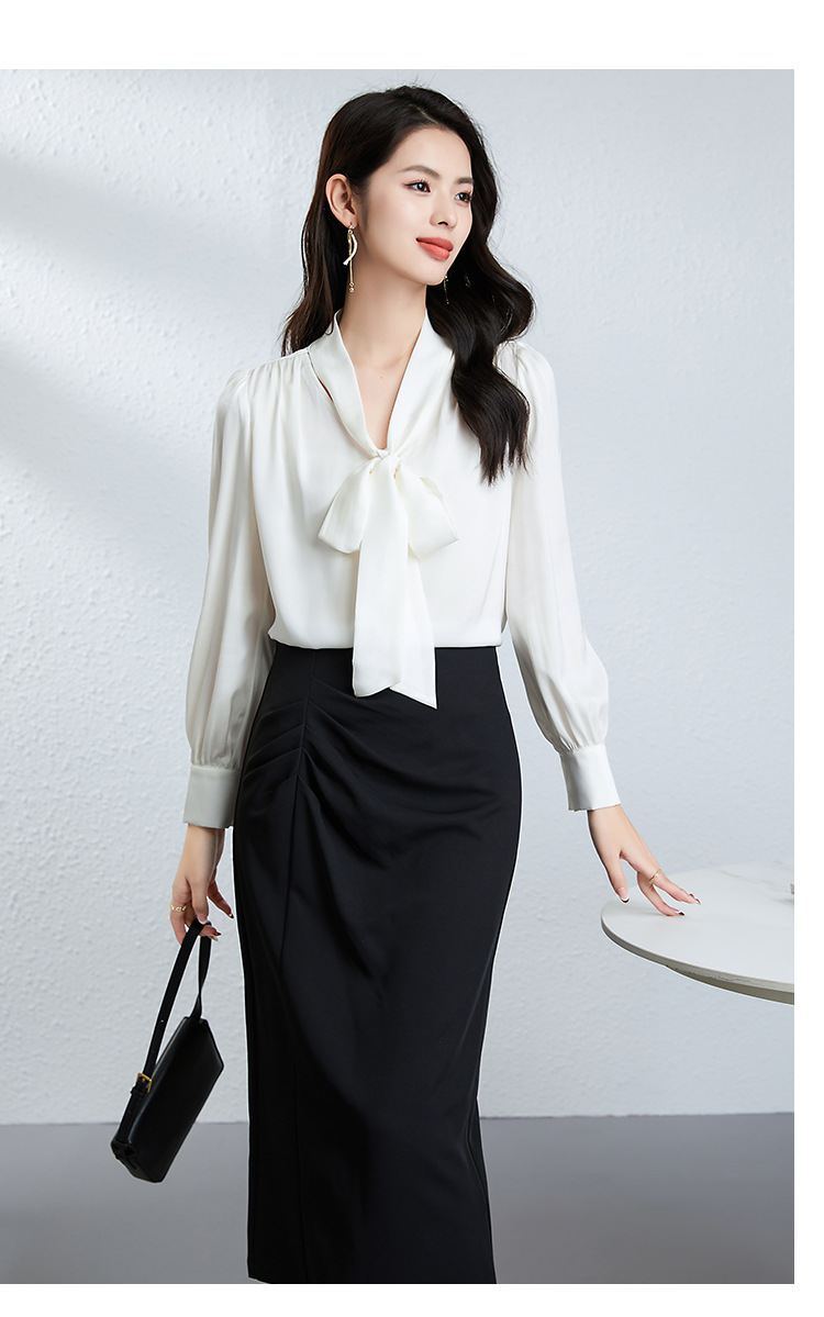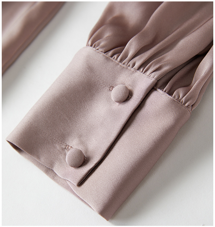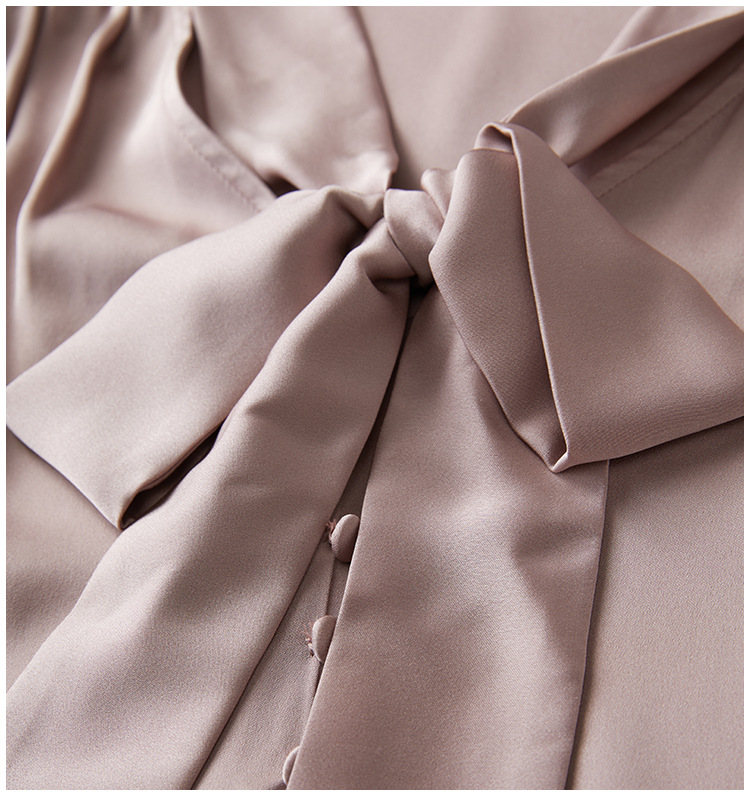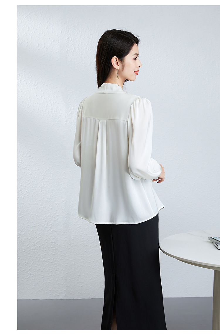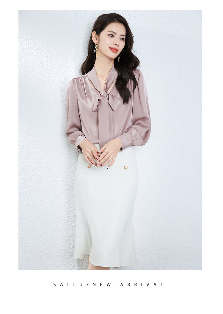 丁摩桑蚕丝衬衣女春季新款重磅真丝双乔法式V领蝴蝶结衬衫高级感上衣AL25013
