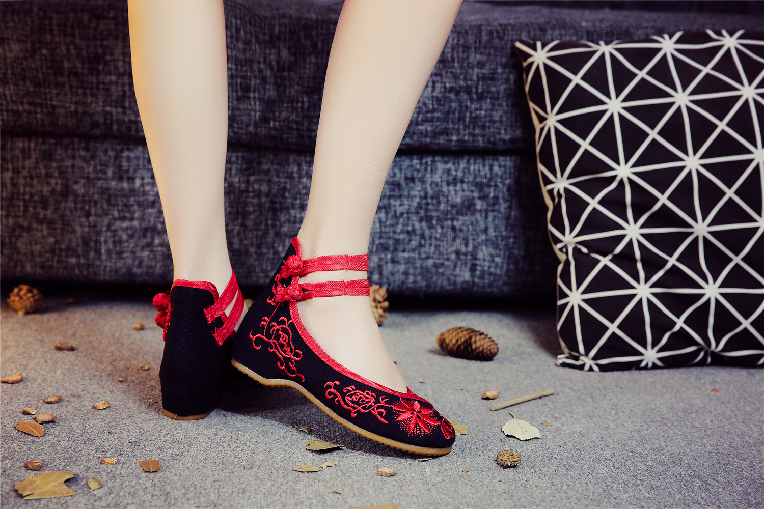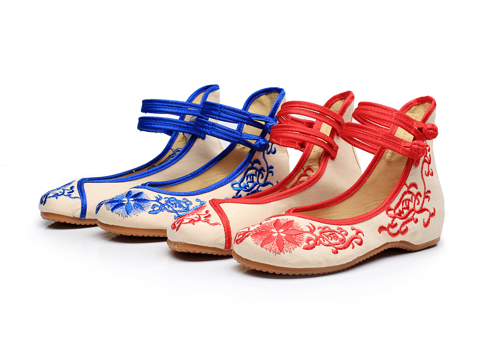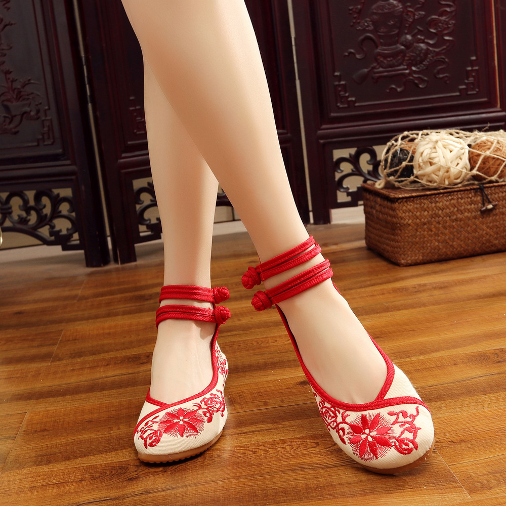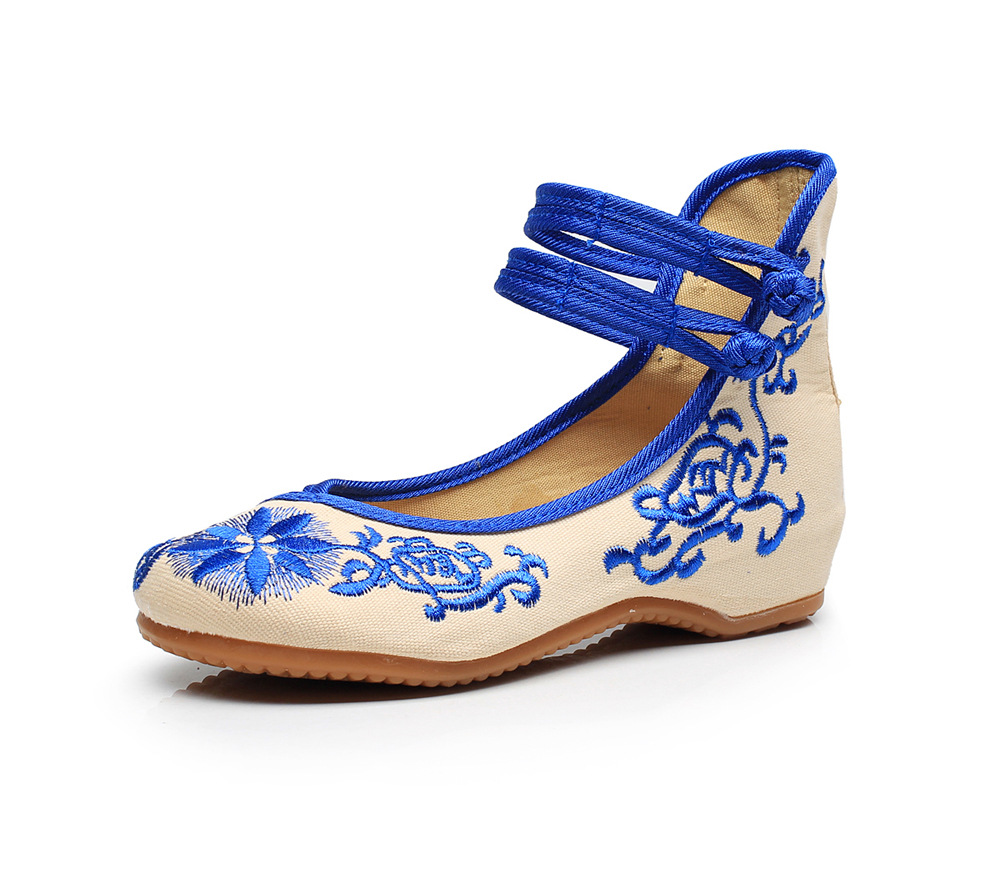 XQ-夏民族风青花瓷绣花布鞋内增高舞蹈鞋