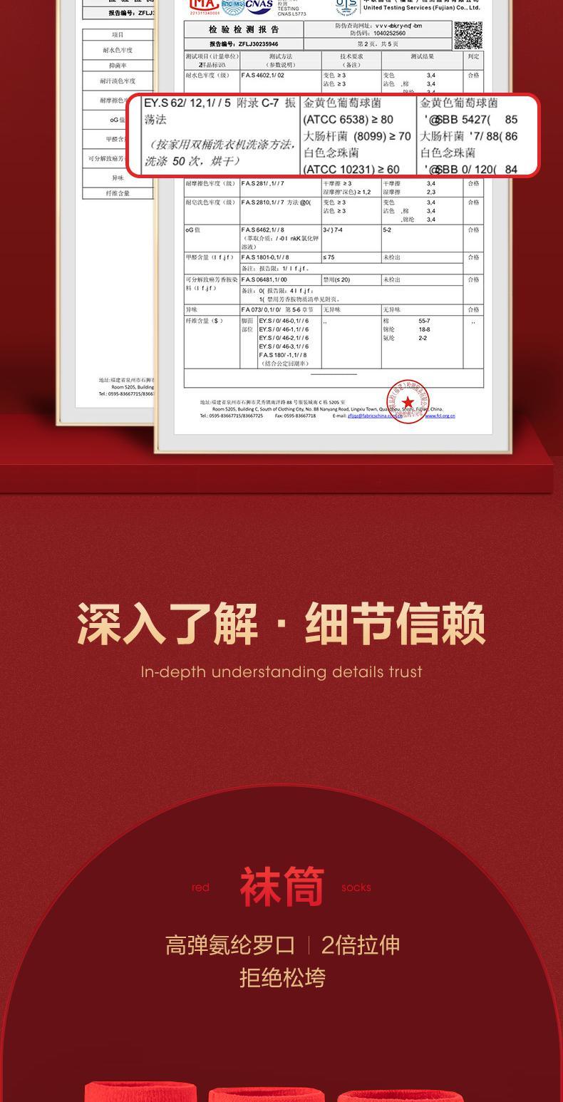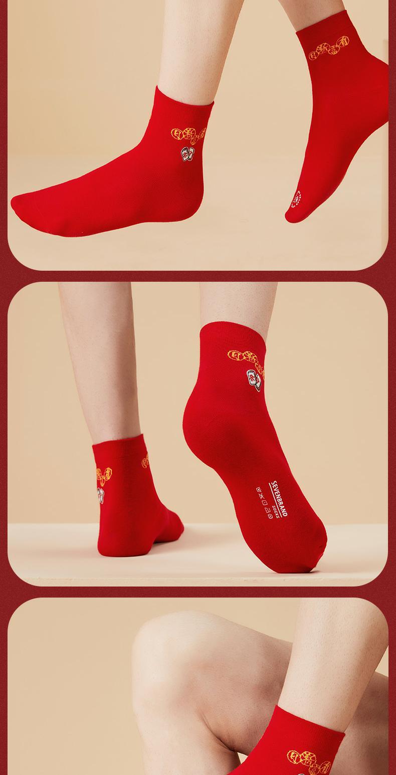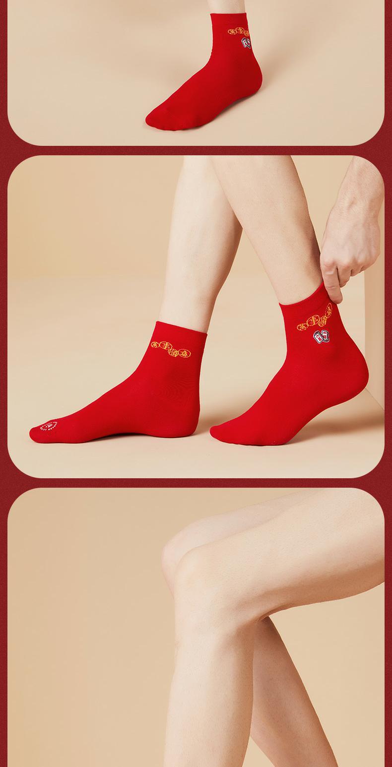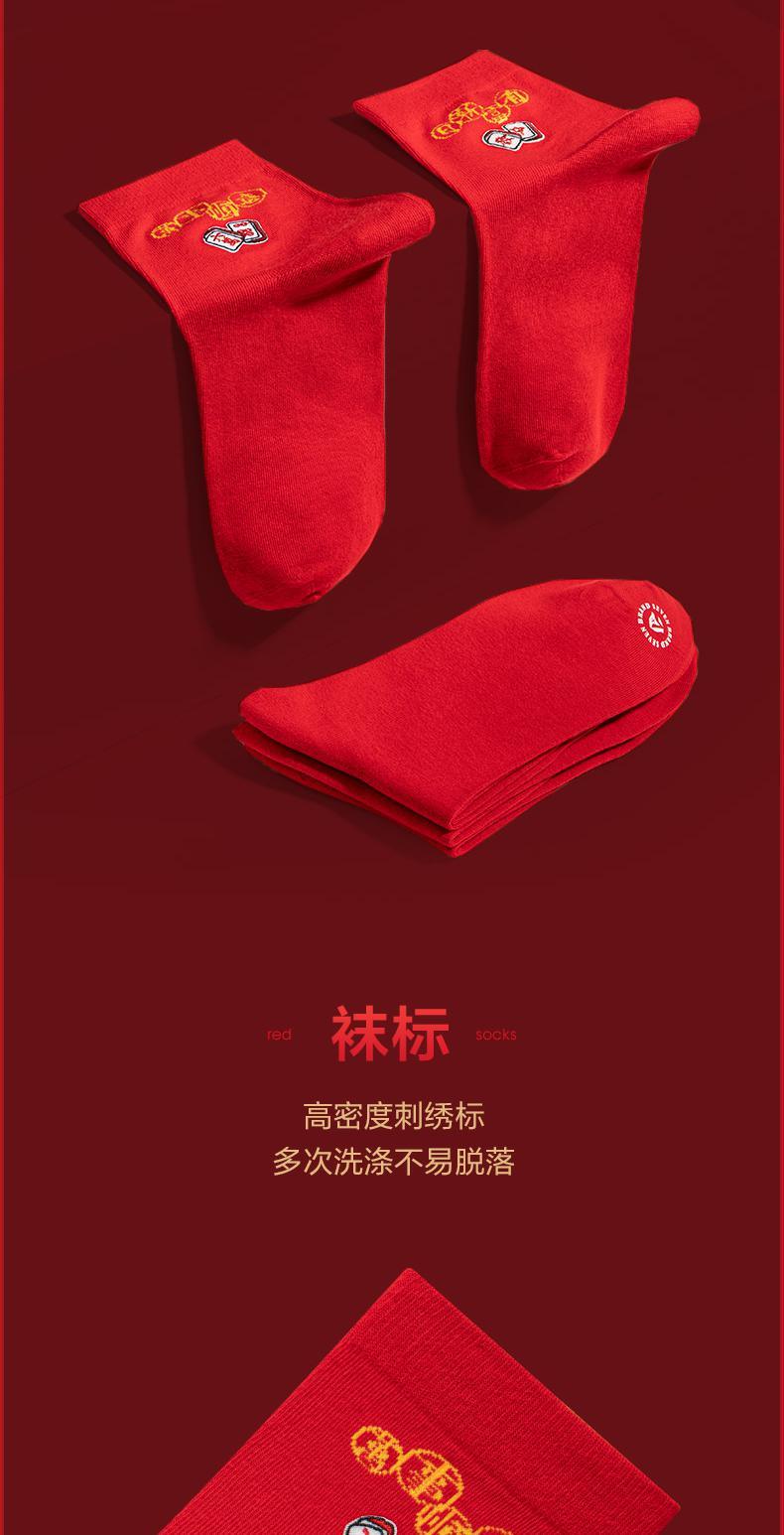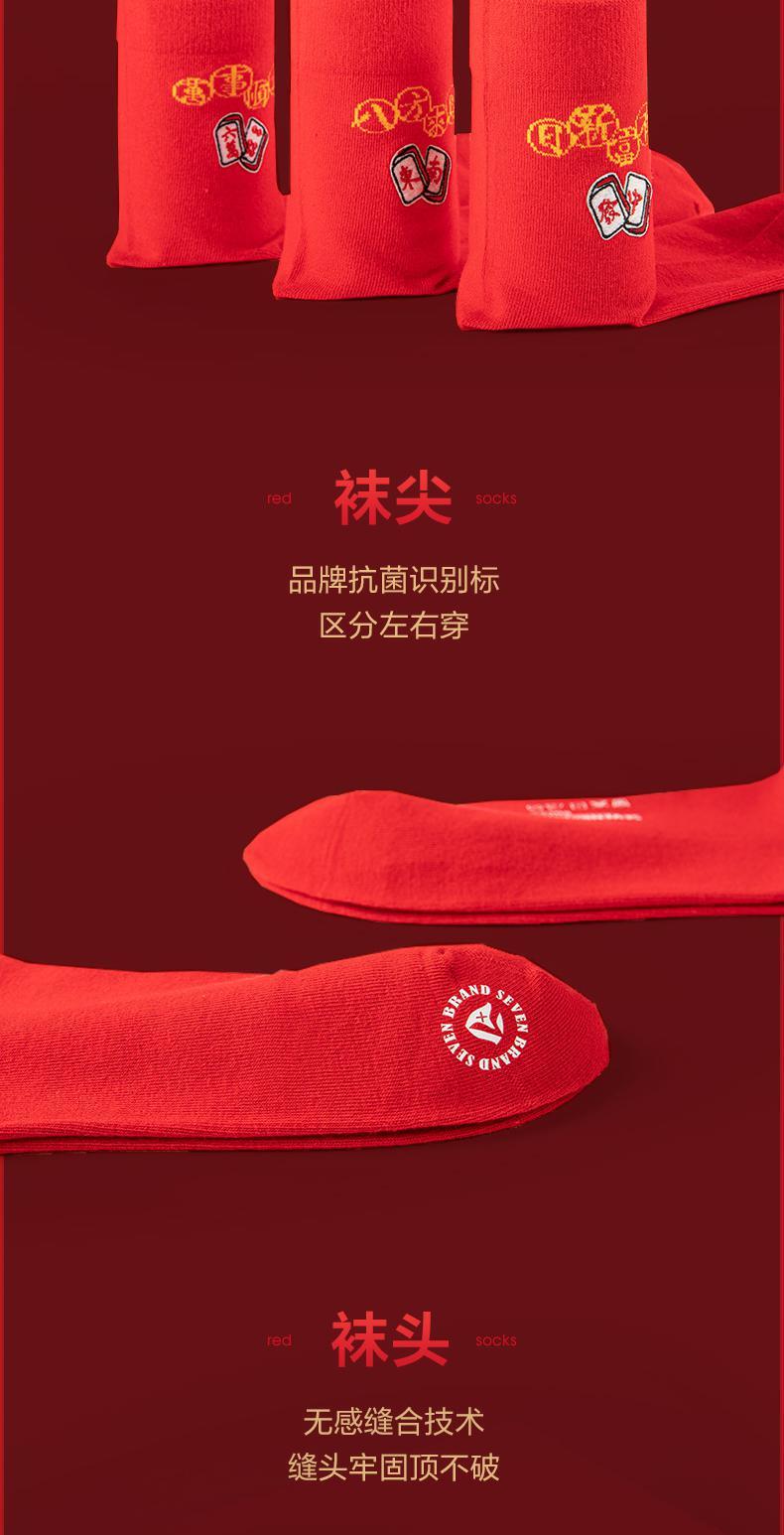 柒牌红色麻将袜秋冬季透气抗菌男女款鸿运中长筒红袜子舒适三双装 123F70710