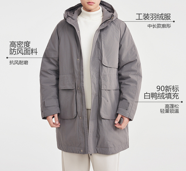 墨麦客中长款工装羽绒服男2025冬季新款立体贴袋羽绒外套男88937
