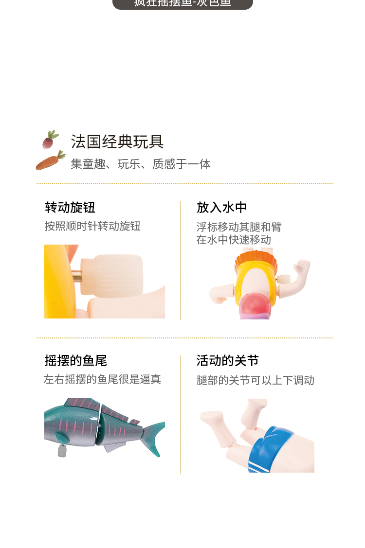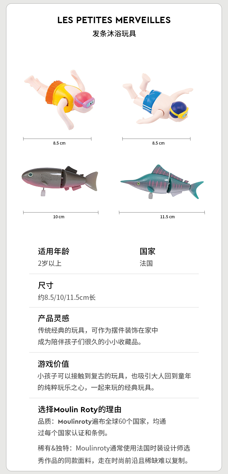 Moulin Roty 蓝色-疯狂摇摆鱼 发条玩具 适合3岁+ 能在水里畅游的搞笑玩具 小小奇迹系列 法国品牌-711151