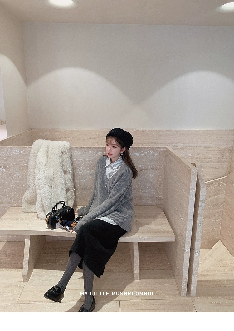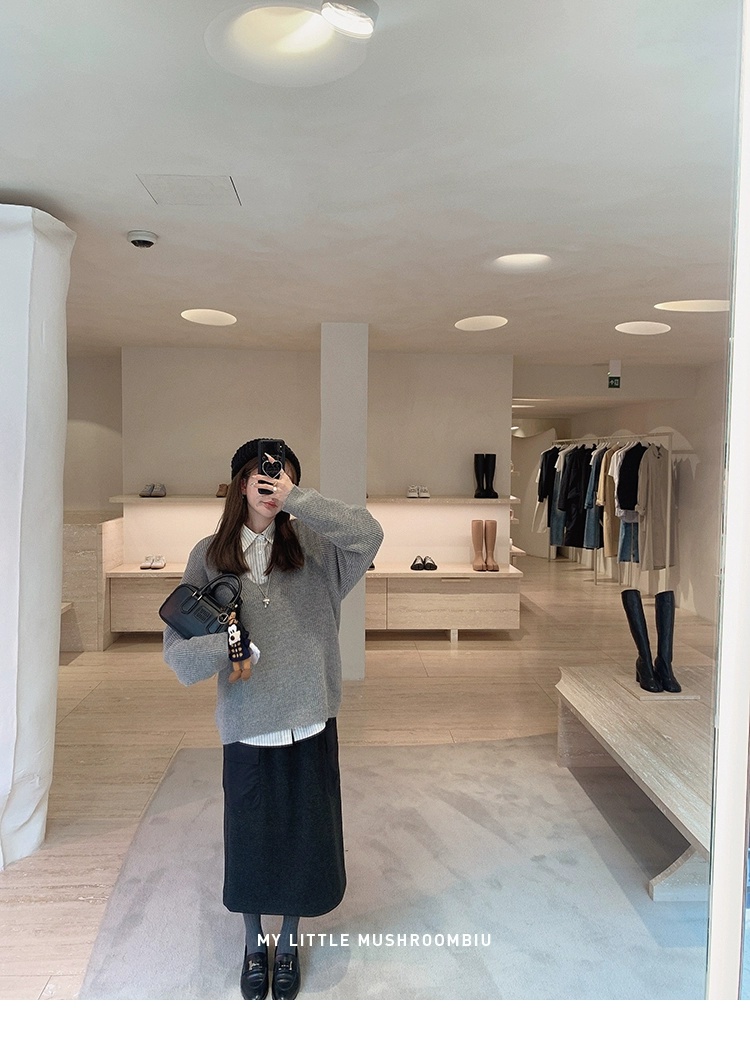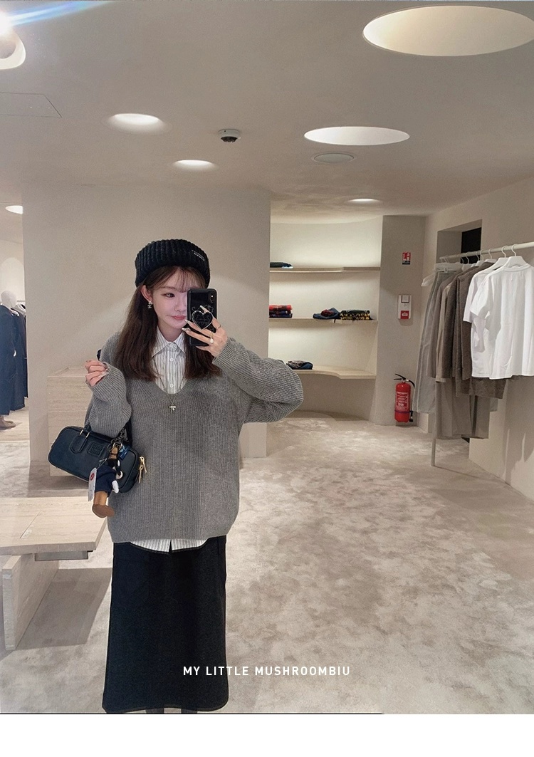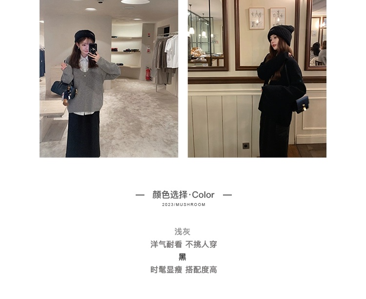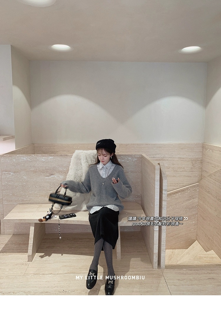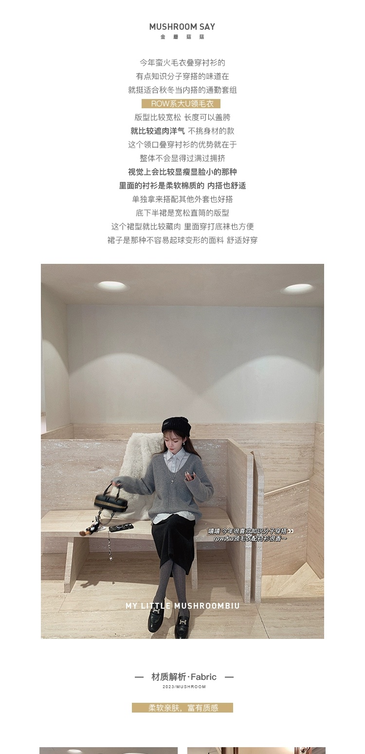 金蘑菇菇 Parallele日落威尔顿 衬衫套组/ 知性风u领毛衣叠穿衬衫
