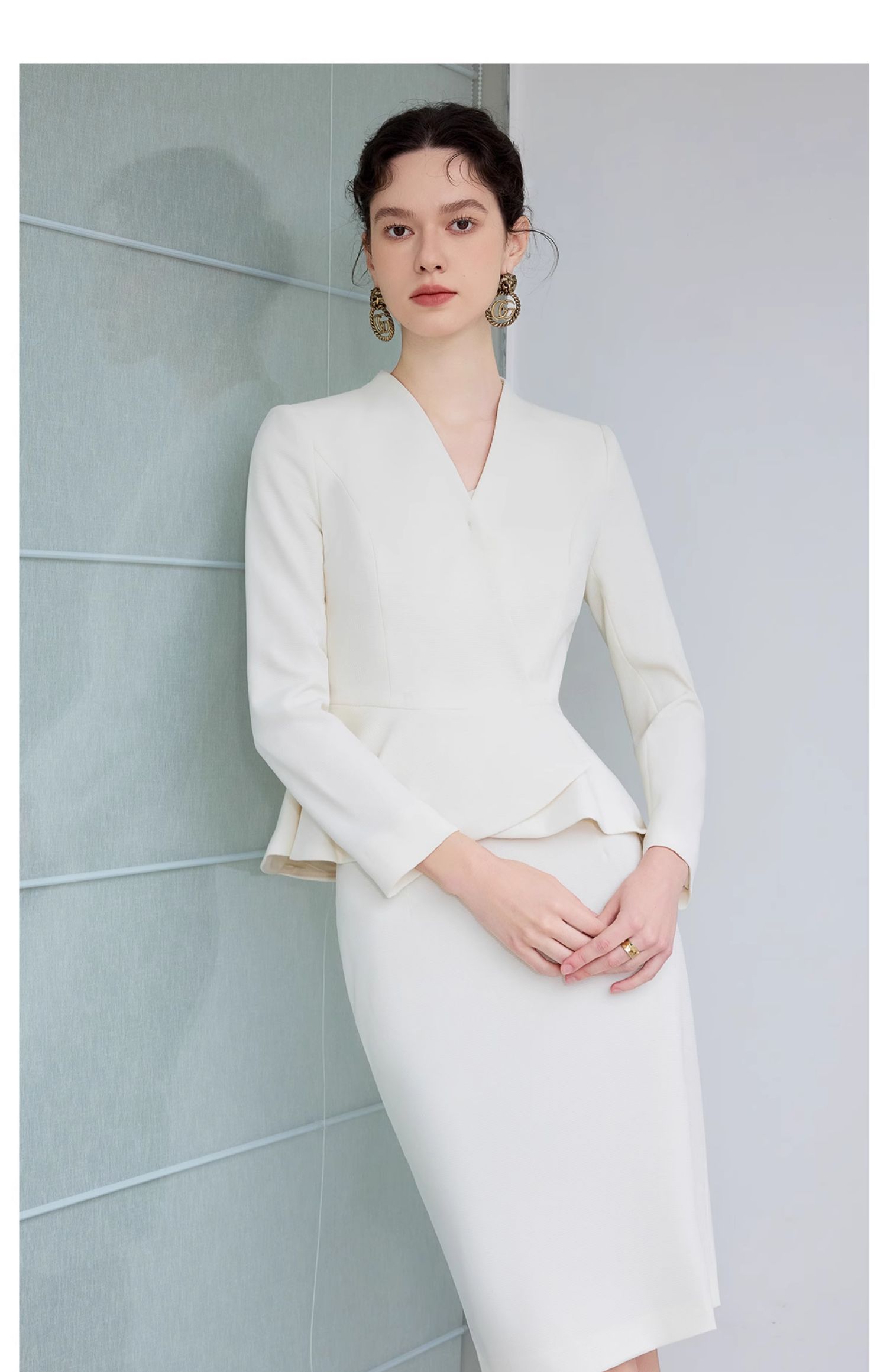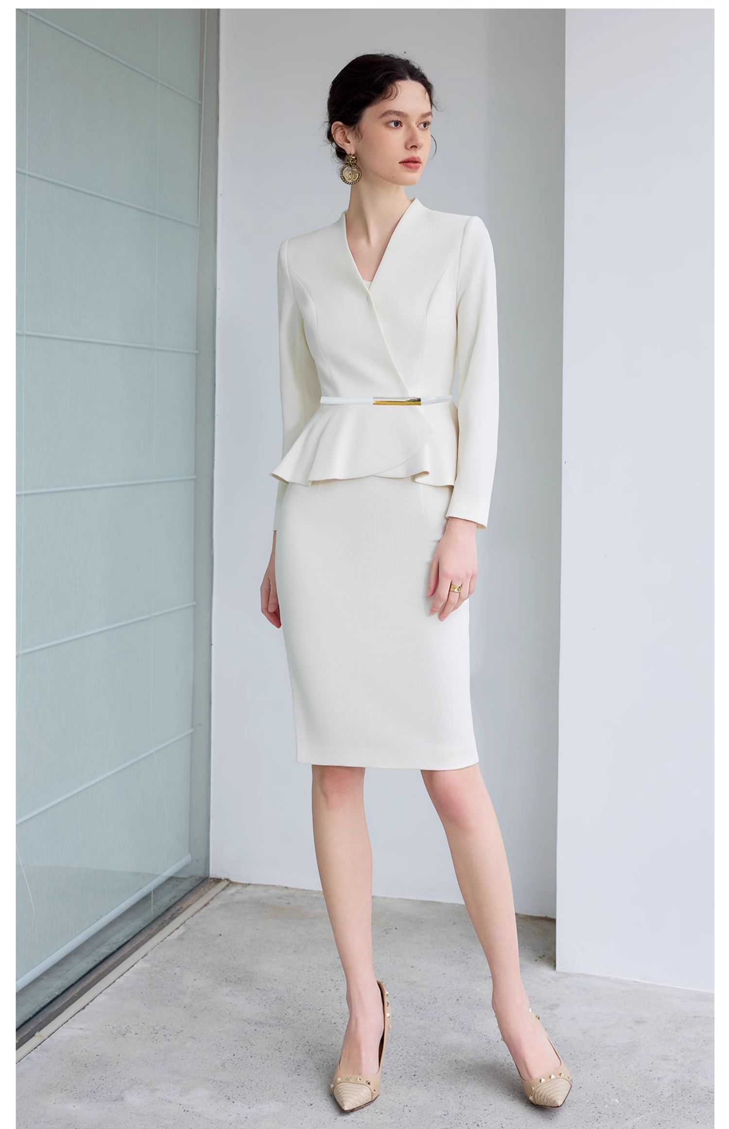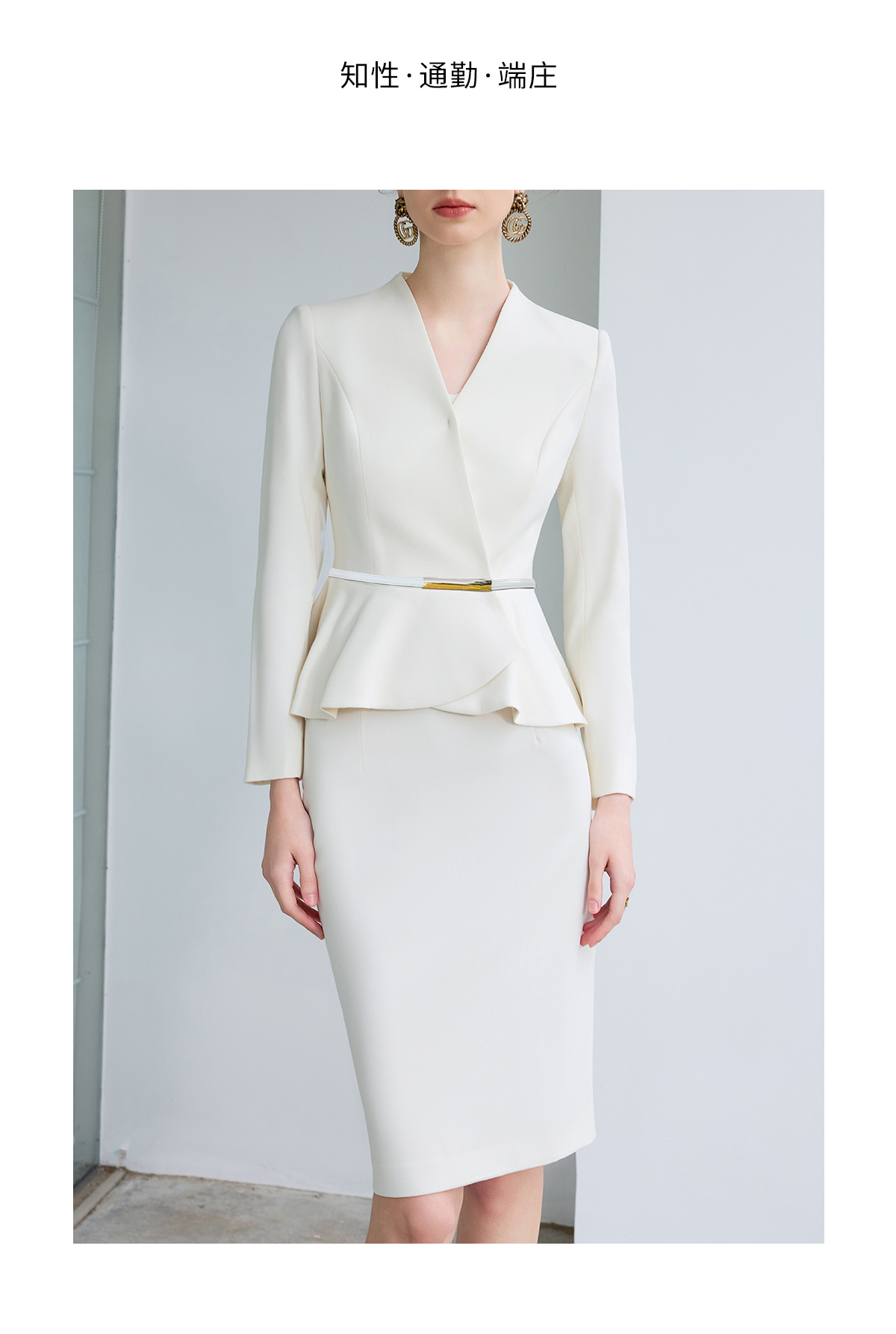 IWY/气质小香风西装套裙女春季长袖播音上镜职业装美容院工作服CS1864
