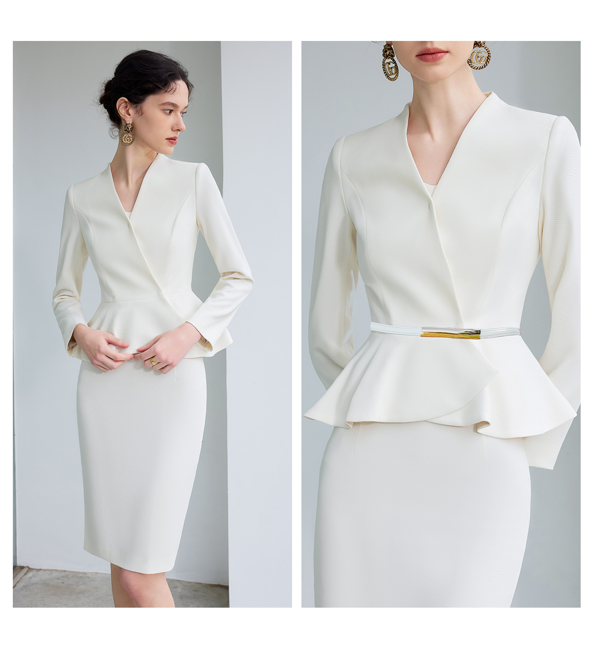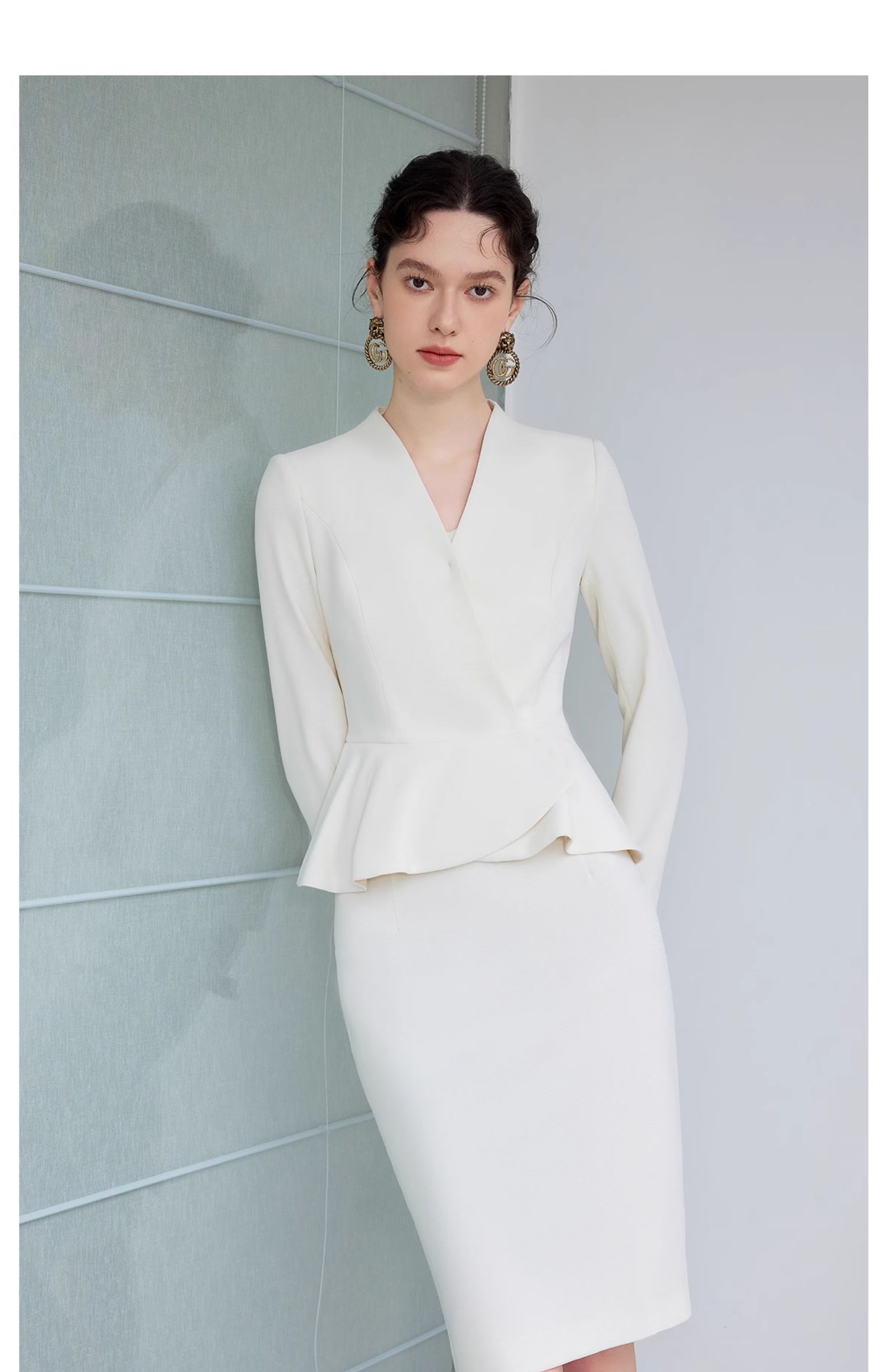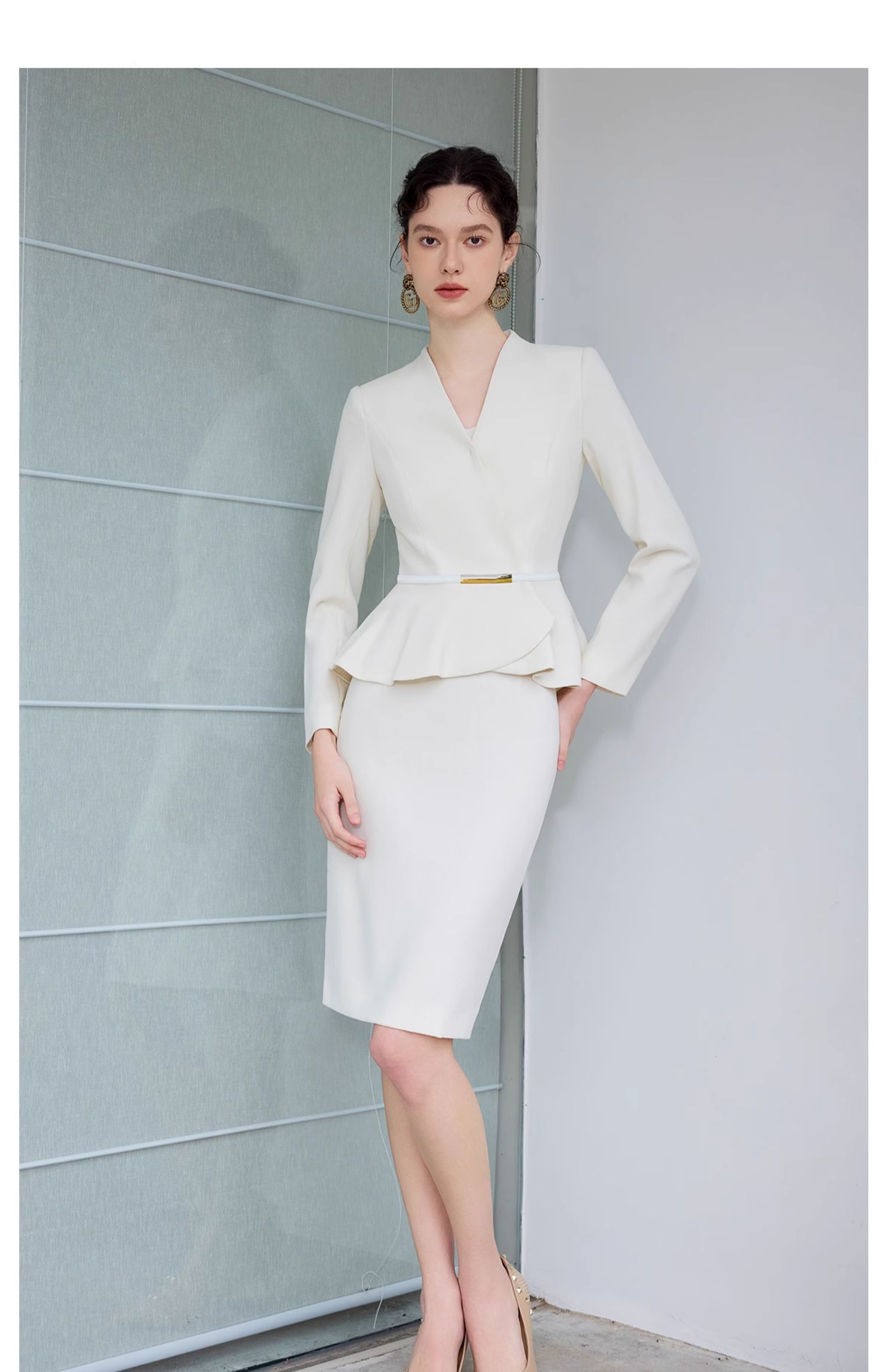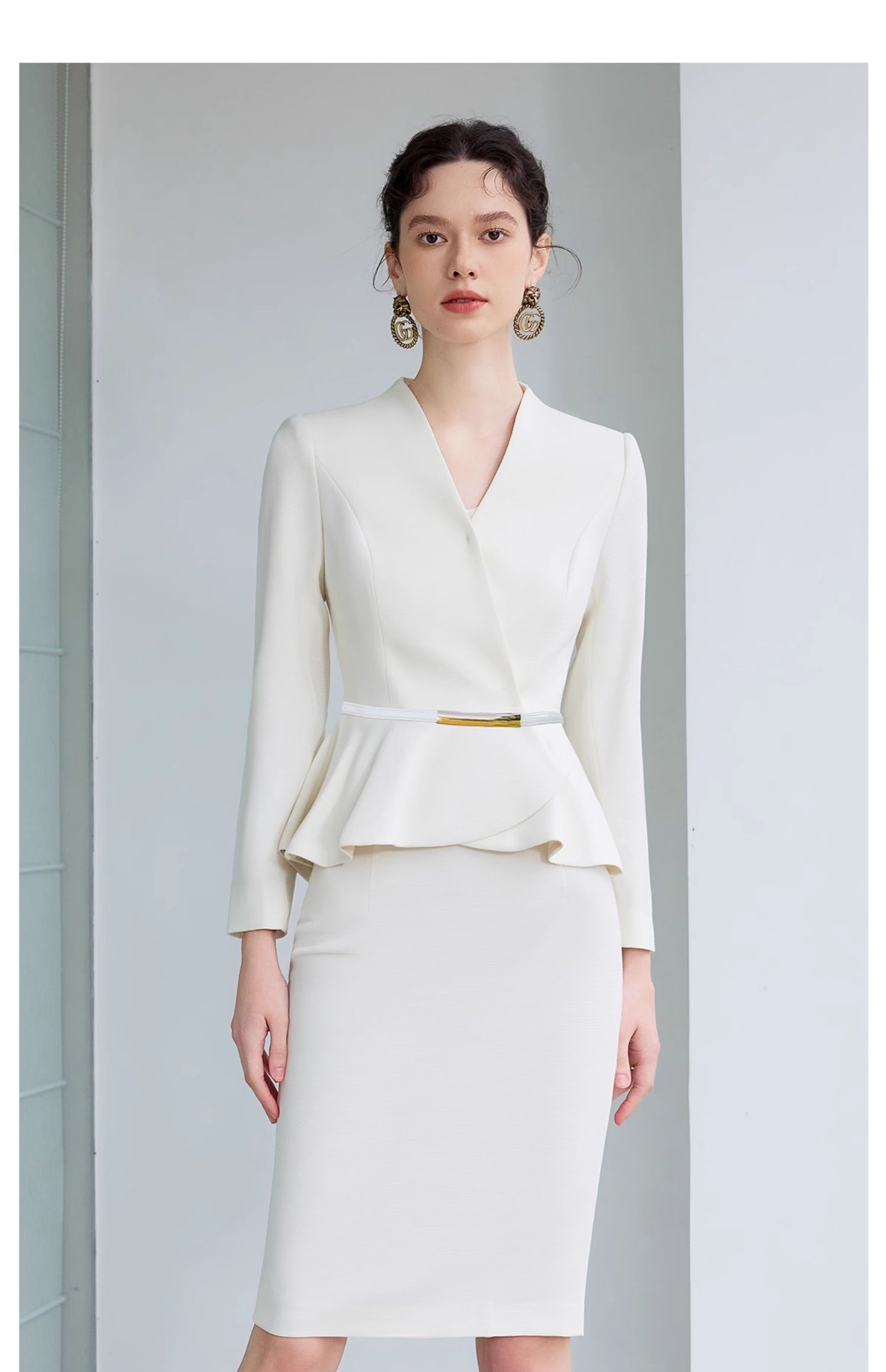 IWY/气质小香风西装套裙女春季长袖播音上镜职业装美容院工作服CS1864