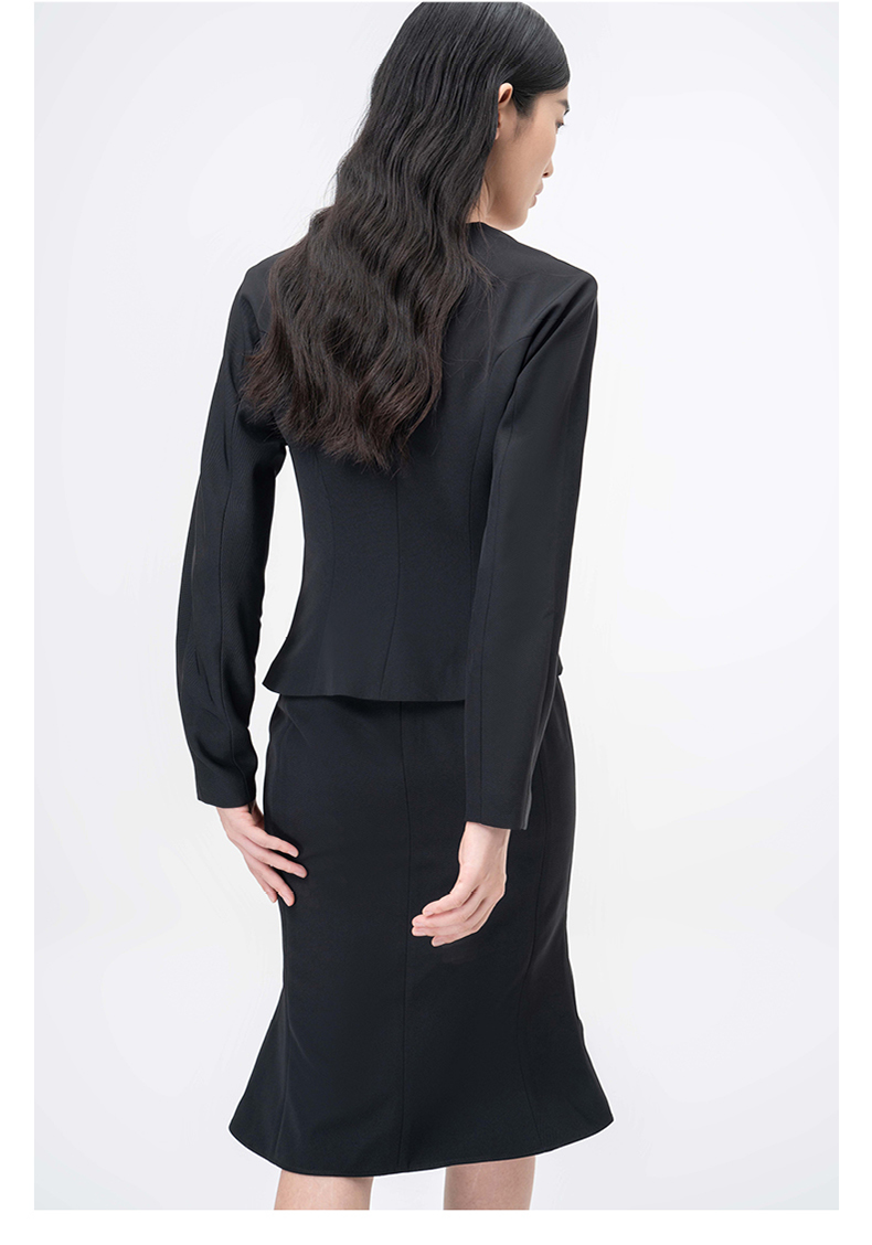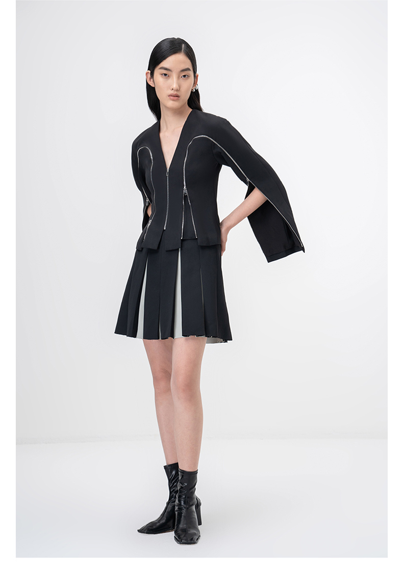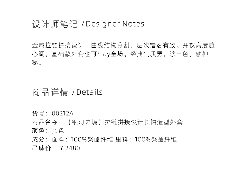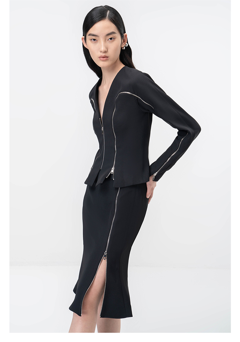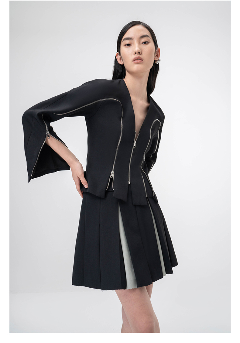 【银河之境】流畅曲线拉链拼接设计黑色长袖造型外套/00212A