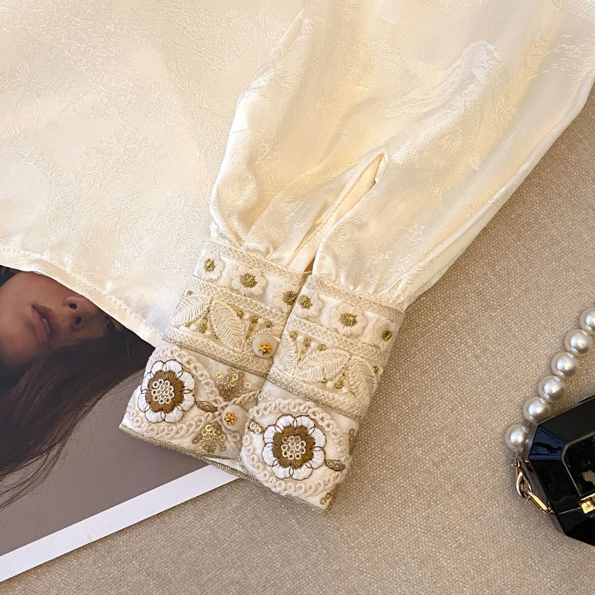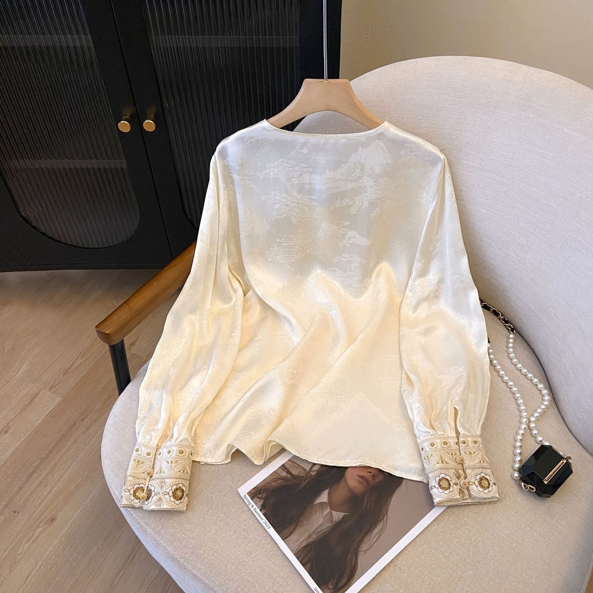 国风打底衫内搭衬衫 长袖刺绣衬衣 春夏设计感新中式上衣