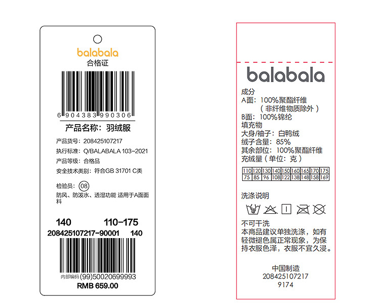巴拉巴拉balaOne儿童羽绒服男女童户外防护保暖冬2025新款两面穿