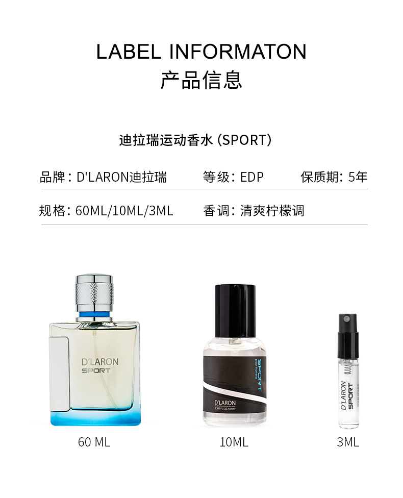 D'LARON 迪拉瑞 原装进口高品质淡香水 持久留香 SPORT运动男香水