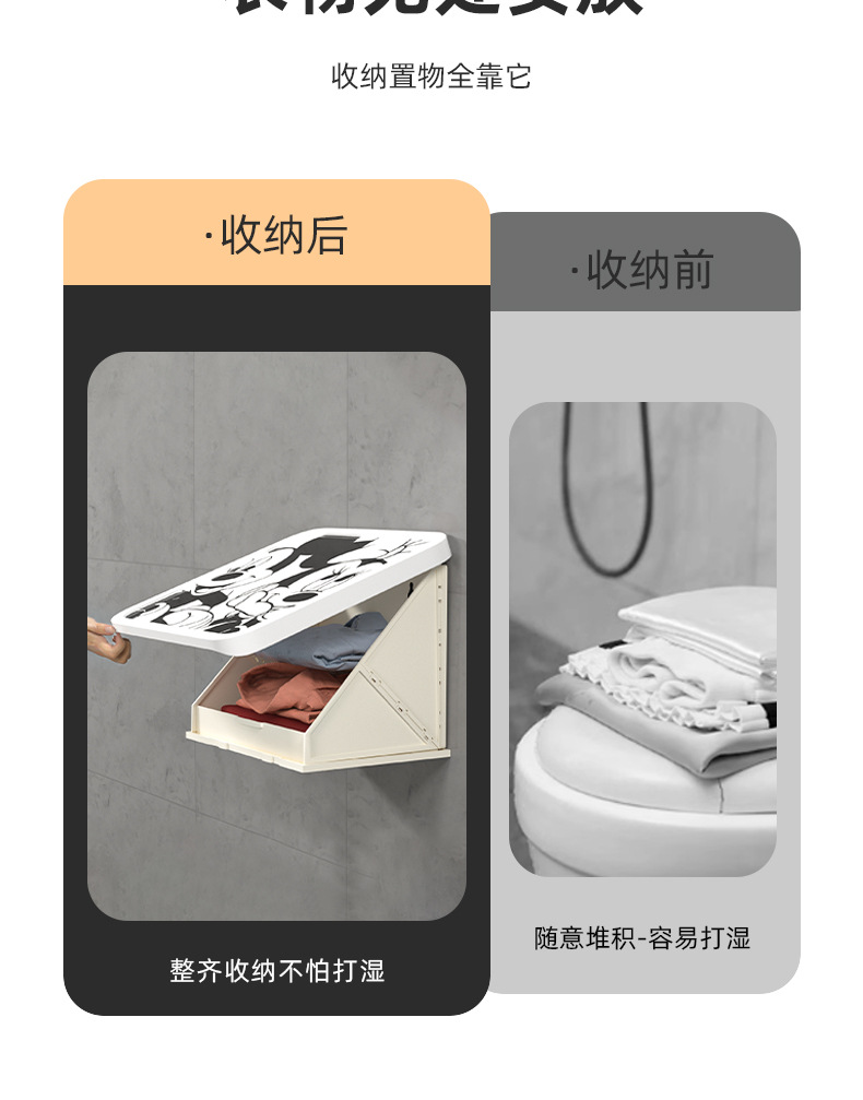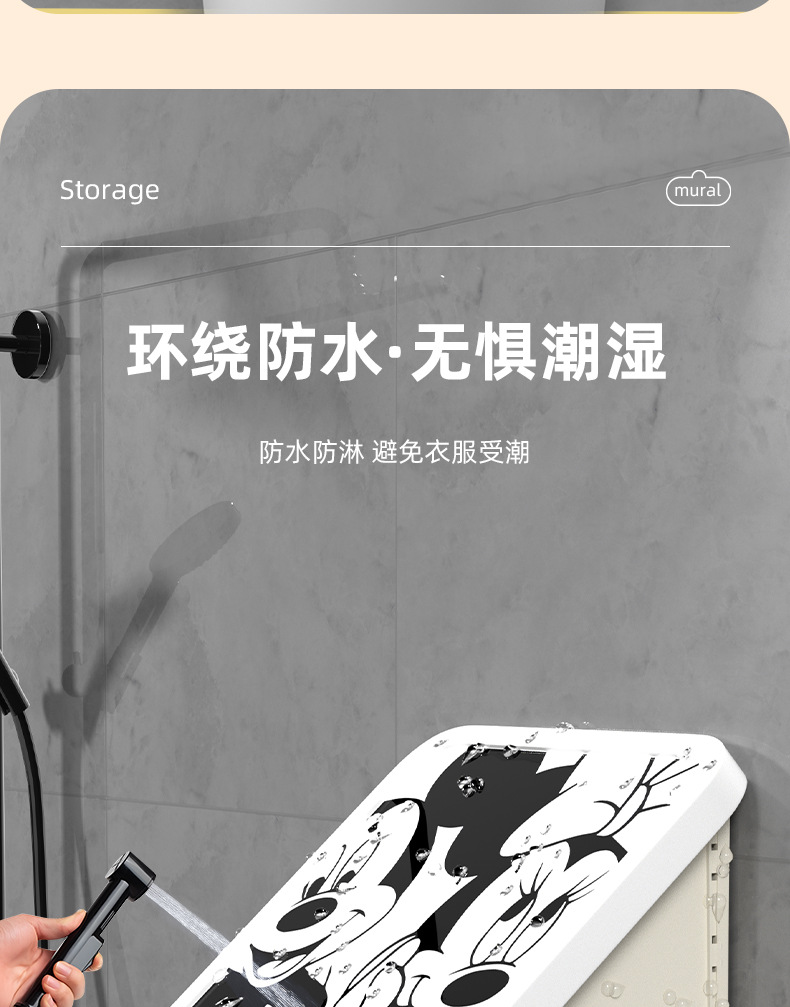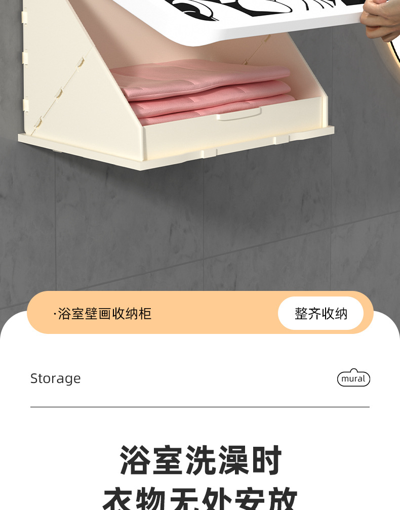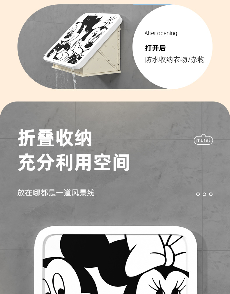 网红卡通黑白ins风浴室壁画折叠收纳柜免打孔壁挂式卫生间放衣服神器防 水置物架(其他图案可咨询客服)