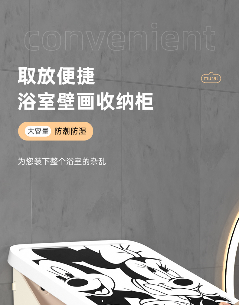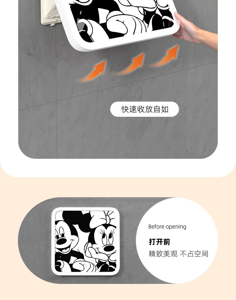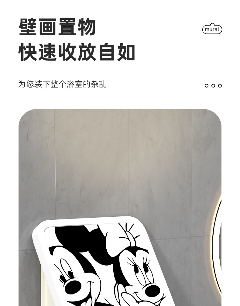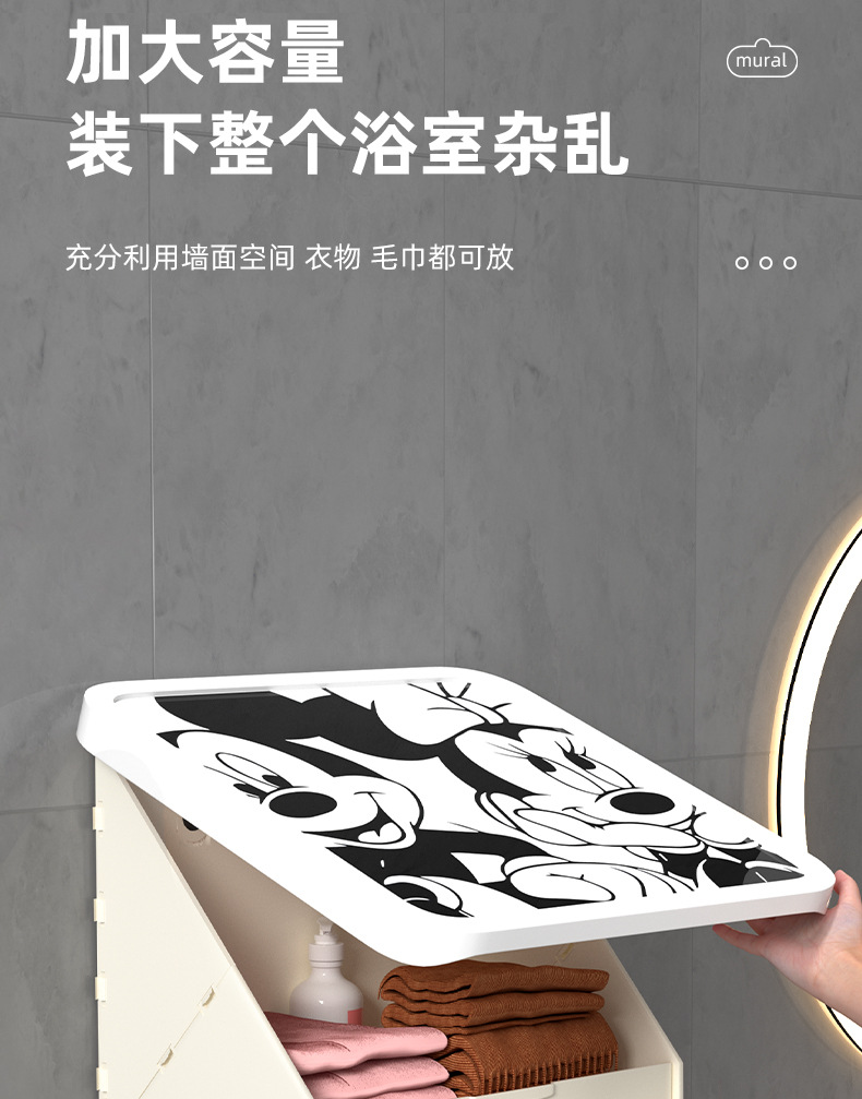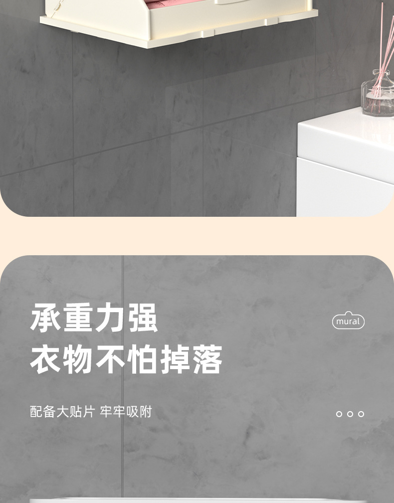 网红卡通黑白ins风浴室壁画折叠收纳柜免打孔壁挂式卫生间放衣服神器防 水置物架(其他图案可咨询客服)