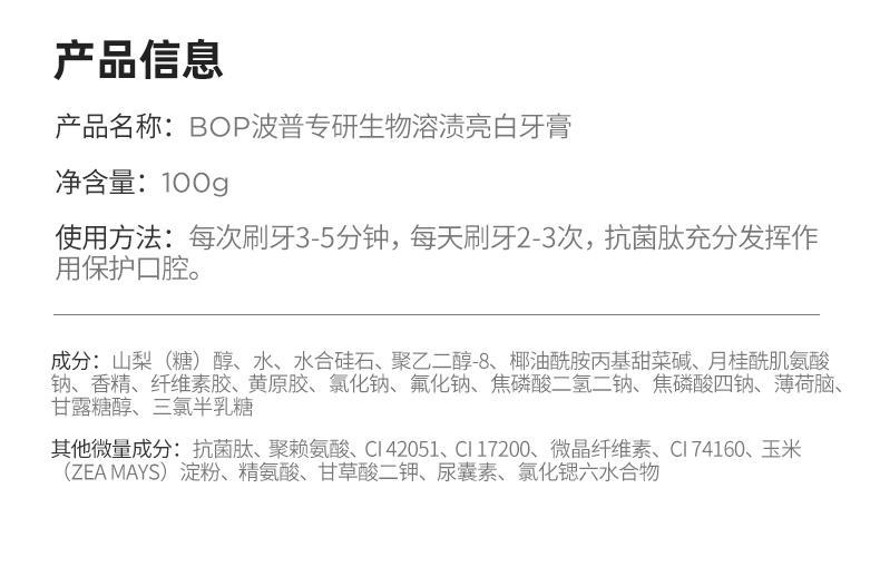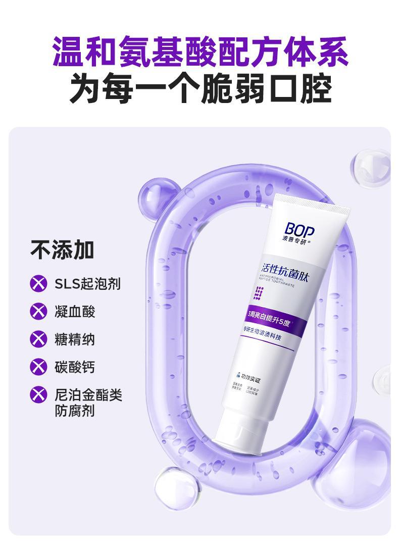 【绵密氨基酸泡沫❗️】bop波普专研色修美白牙膏去黄去黑溶渍亮白黄牙抗菌肽清新口气ko。ya