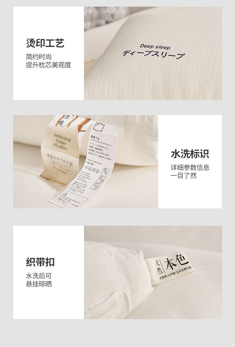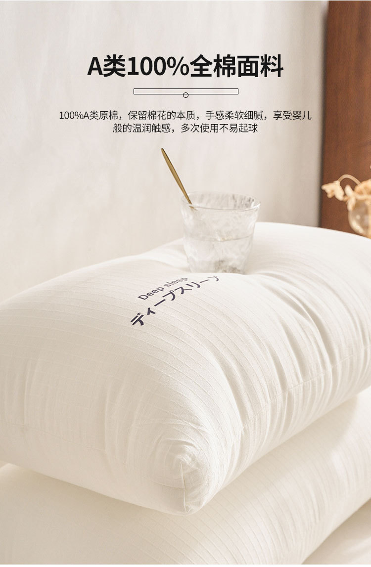 【快速回弹❗柔软蓬松】A类母婴级全棉枕芯日式原棉深睡眠枕头芯家用民宿酒店枕头一对装。rh