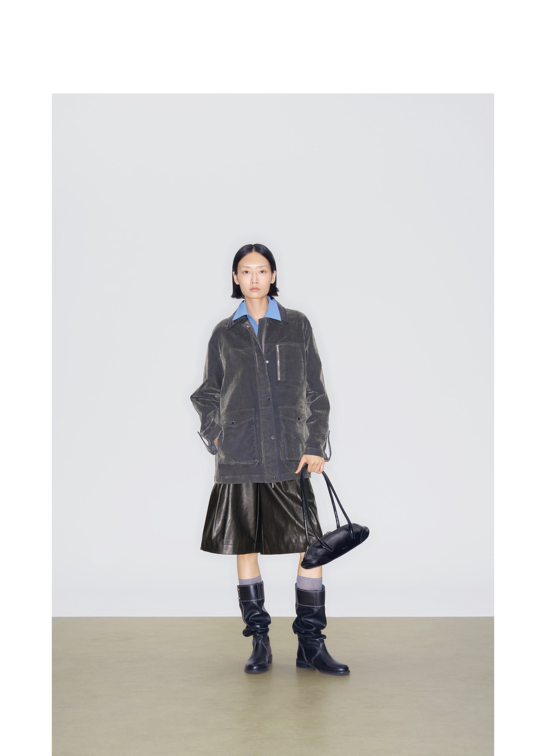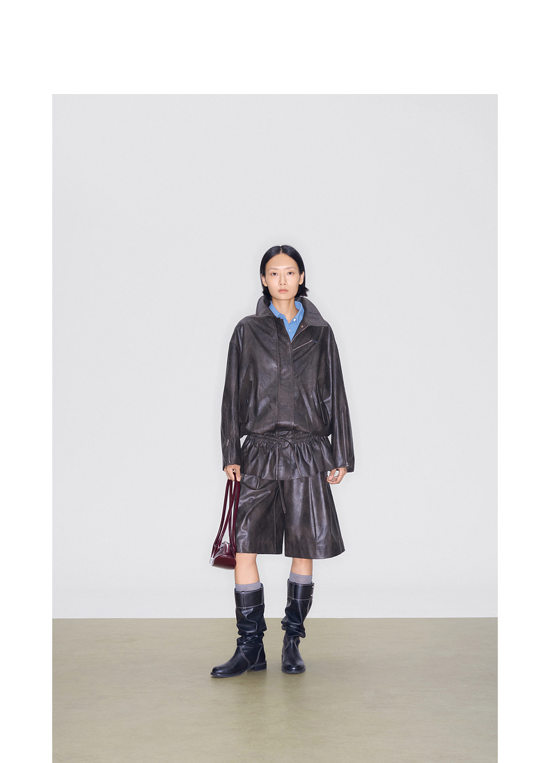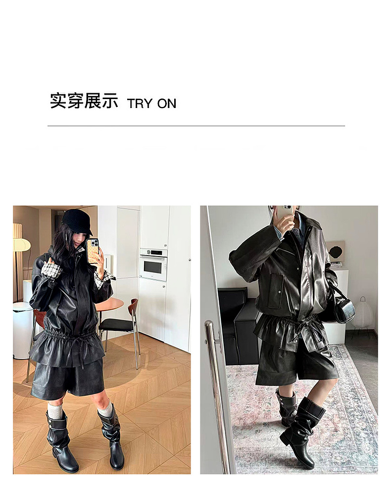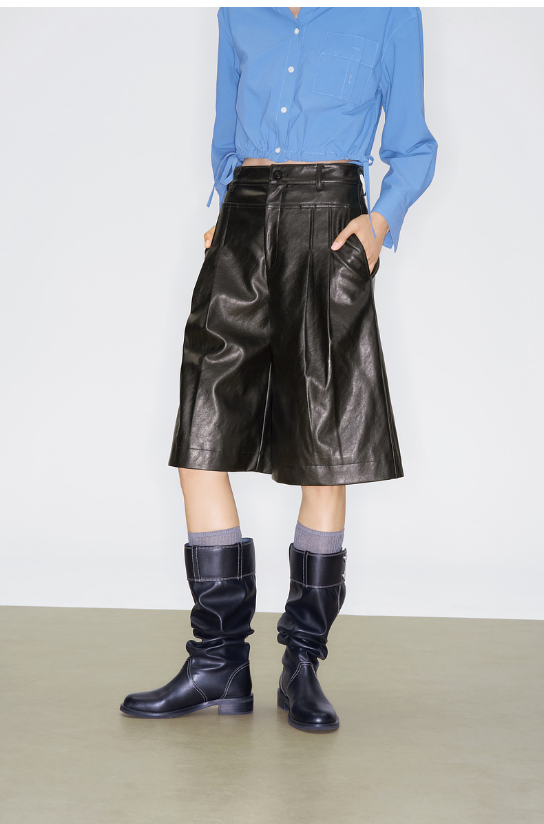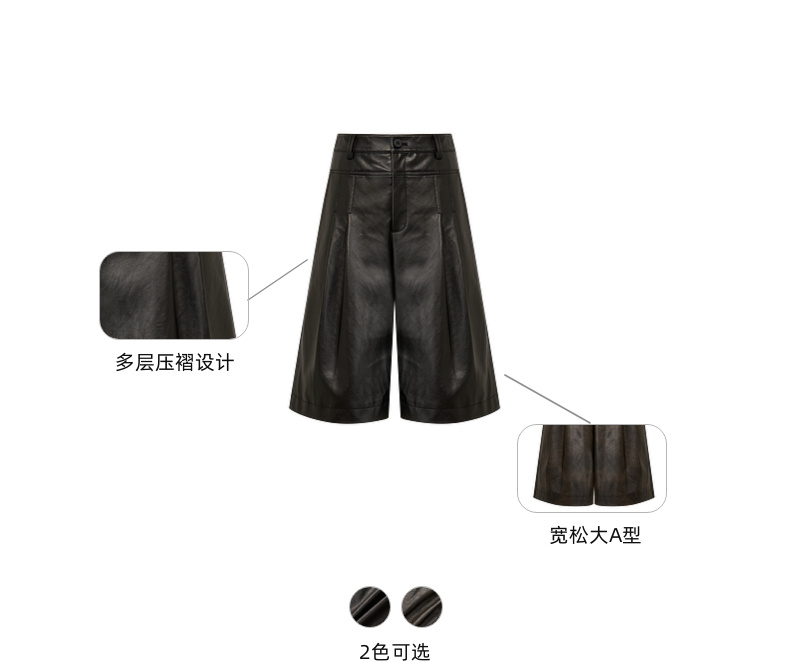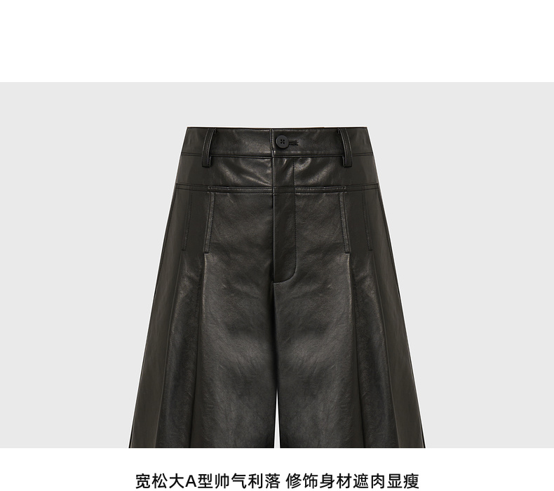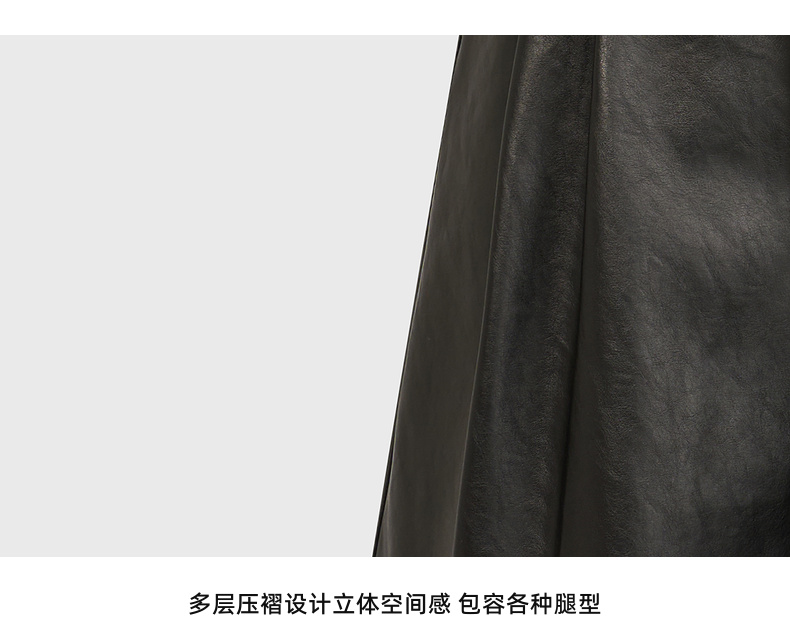 马君妍同款lost in echo2025早秋新款帅气宽松显瘦压褶A型宽松中长PU裤子女